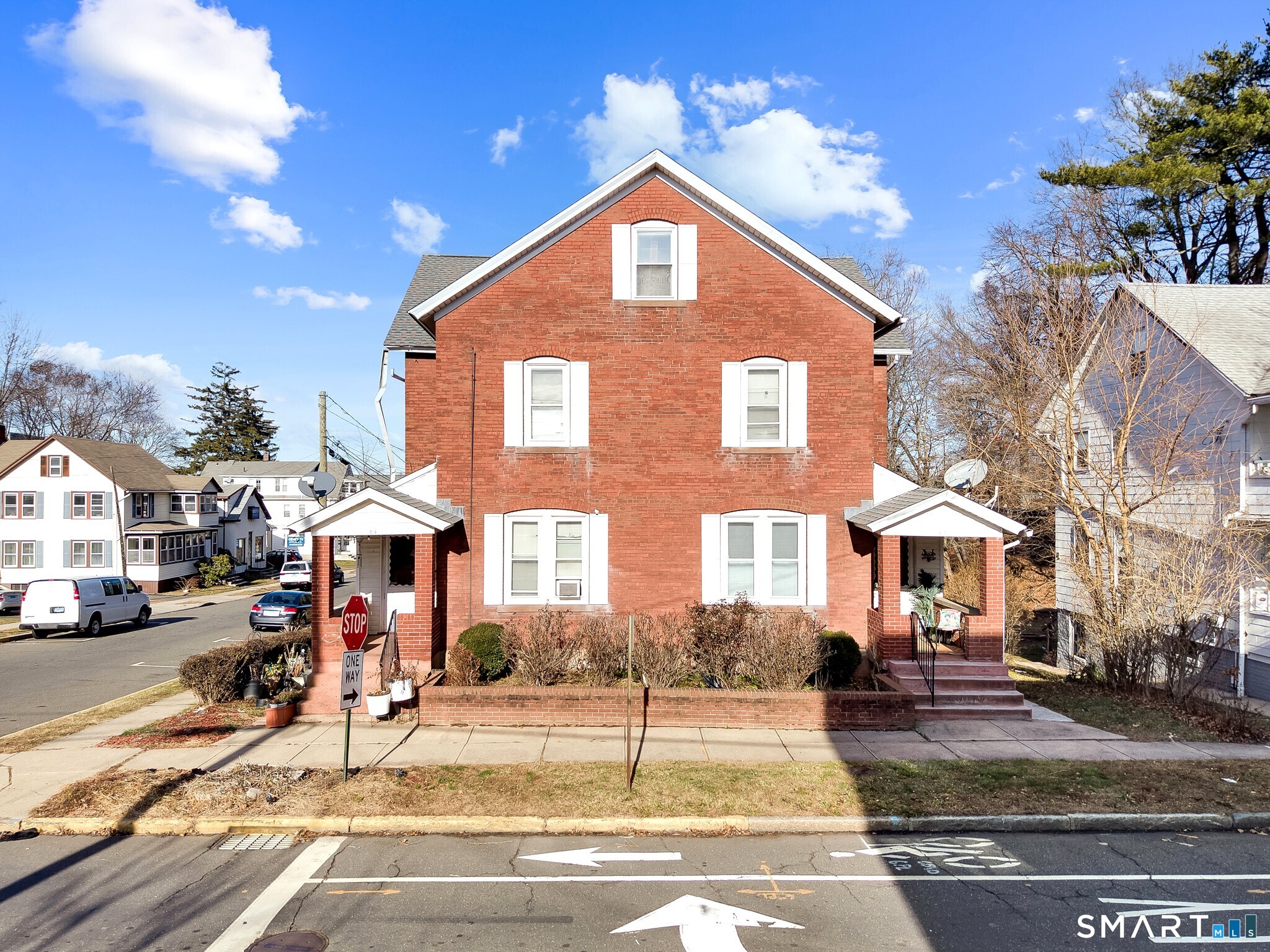 Located on the edge of downtown Middletown, Spring Street is a quiet one-way street with a dedicated bike lane. Positioned on the corner of Spring Street and Rome Avenue, 32-34 Spring Street is a classic brick duplex with symmetrical front porches and timeless curb appeal. Each unit features a private front entrance that leads into a spacious living room, accented by an elegant central staircase. The second floor features three bedrooms, while the staircase continues to a third floor providing approximately 714 square feet of partially finished space, ideal for additional bedrooms, office space, or family rooms. The main level of each unit includes a rear kitchen with access to an enclosed porch and a dining room facing Spring Street, creating a functional and comfortable layout. Unit 34 Spring Street features a newly renovated kitchen and a finished lower level with a half bath and walkout access to a patio. Unit 32 Spring Street is unoccupied and unfinished, offering an excellent opportunity for customization. The property allows flexibility to create a large single residence or explore conversion into multiple units, subject to approvals. Also included in the sale is 12 Rome Avenue, which offers a renovated one-bedroom apartment with an enclosed porch situated above an oversized two-car garage. The garage presents potential for additional use or future expansion. Property being sold "AS IS".