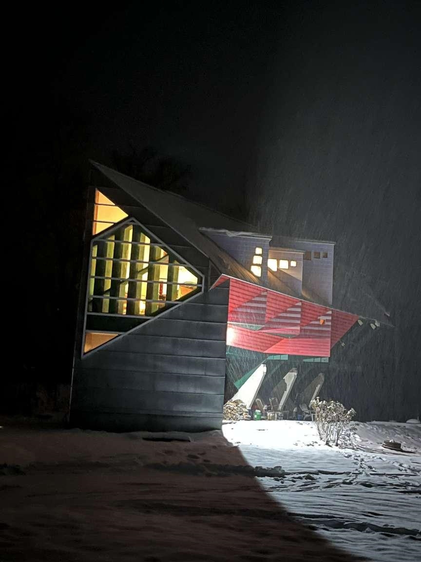 Riverfront architectural icon. Open plan 2 BR, 1. 5 Baths in a 9 unit Housing development, ski areas nearby. Featured in Prickly Mountain documentary film. This house is part of a homeowner association with bylaws. It is not a co-housing community but it is a community of mainly permanent residents. Owners are permitted to rent their homes for terms of one month or greater, making it possible to attract seasonal renters. “Seller willing to give concessions to Buyer at Closing. ".