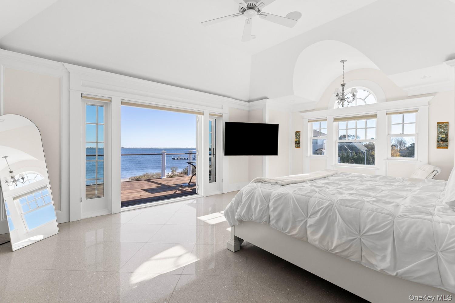 Set on 175 feet of private sandy beachfront with a 136' dock, this Shinnecock Bay residence offers a rare opportunity to enjoy direct waterfront living in a modern, spacious setting. Designed to highlight its panoramic bay views, the home features multiple elevations and extensive glasswork that capture natural light from morning through evening and create a smooth transition between indoor and outdoor spaces. The main level includes an open-concept living area and a chef's kitchen with Wolf appliances, pantry, and a wall of glass doors leading to the full-length mahogany deck. This outdoor area extends the living space toward the bay, infinity-edge pool, and spa. The first-floor waterfront primary suite provides two walk-in closets, a spa bath with jacuzzi, and private deck access. A separate guest suite with its own entrance, powder room, mudroom, and attached two-car garage complete the level. The second floor offers a secondary suite with terrace, a dedicated office, and a secondary living area with direct access to the upper full-length deck. Two additional en-suite bedrooms with walk-in closets, a laundry room, and a second powder room provide flexibility for extended stays and hosting guests. Both levels feature expansive rear decking, enhancing circulation and emphasizing the home's orientation toward the bay. Situated south of the highway, the home is close to marinas, beaches, and local dining, offering convenience only minutes away. With substantial water frontage, docking capability, and modern construction, the home presents a rare rental option in a highly desirable waterfront setting. Its versatile layout, multiple outdoor living areas, and direct bay access provide an environment well suited for relaxation, entertaining, and time spent along the Hamptons coastline. September $40k | Off Season $35k/month.