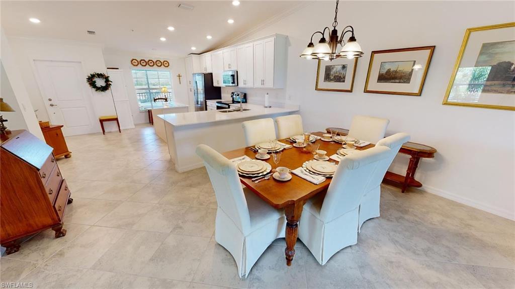 The National Golf & CC at Ave Maria Florida – Veranda Condominium Series “Arabella II” Model. Corner Unit and Largest in the Series at 1569 Sq. Ft. 2022 Build, Like New. This Unit Boast One of the Only Truly Unobstructed Corner Units with Views Wrapping Literally Around from the Front of the Unit Around the Side and Around to the Back to Stunning Views of the 14th Hole. 2 Bedrooms, 2 Full Baths, Detached 1 Car Garage w/Paved Driveway for Vehicle Parking, Garage Can Accommodate a 2nd Vehicle, Storage or Golf Cart, Large Enclosed Front & Rear Lanai. Options Include; Tile on Diagonal Through Most, Carpet in Bedrooms, SS Appliances, Quartz Tops, 42” Cabinets, Crown Molding. Property Complemented by Gordon Lewis 18-Hole Championship Golf Course, and Tennis/Pickleball Center with Pro on Hand. Resort Style Amenities, Such as Resort Style Pool, Restaurants, Fitness Center, Clubhouse, etc. are well Underway, These Amenities will Truly Create the Perfect Southwest Florida Resort Style Community Lifestyle. Come Witness the Beauty that is Ave Maria Florida.