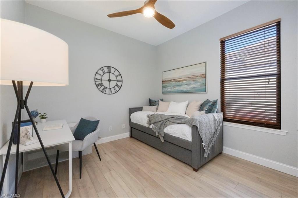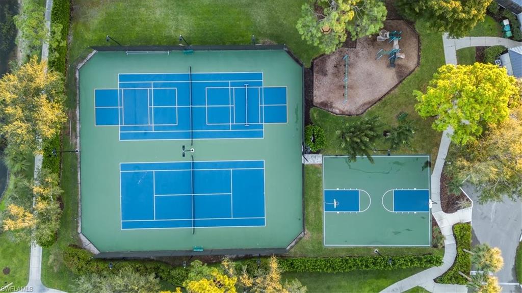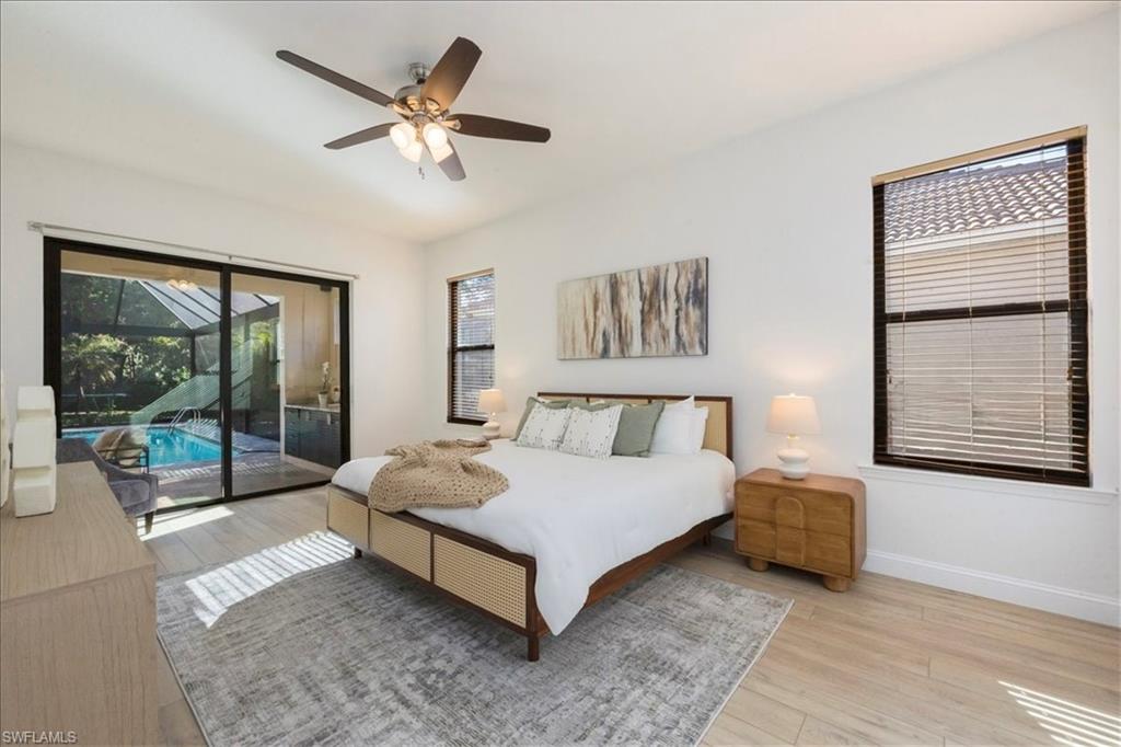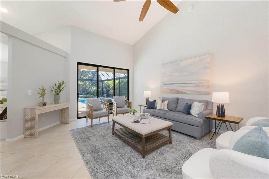 This highly desirable and rarely available Magnolia floor plan delivers a versatile, well-designed layout ideal for a wide range of lifestyles. This thoughtfully designed split floor plan offers four bedrooms and three full bathrooms, blending comfort, functionality, and effortless indoor-outdoor living. At the heart of the home, the beautiful kitchen features granite countertops, stainless steel appliances, a prep island with elegant gold accents, and a cozy breakfast nook ideal for casual mornings. Formal living and dining rooms flow seamlessly into the kitchen and family room, all overlooking the pool and expansive outdoor living area, creating a perfect setting for both everyday living and entertaining. The primary suite serves as a private retreat with a generous walk-in closet and a spa-like bathroom complete with a dual-sink vanity, soaking tub, and walk-in shower. Three additional guest bedrooms are spacious and well appointed with ample closet space, offering flexibility for guests, a home office, or a hobby room. Outdoor living is truly exceptional, highlighted by a beautifully resurfaced pool and spa, elegant travertine decking, and a fully equipped outdoor kitchen complete with a flat-top grill, dishwasher, custom cabinetry, and bar seating. An extended picture window screen enclosure enhances the space, featuring an insulated roof over the grill area for year-round enjoyment. Beyond the lanai, an expansive private green space provides endless possibilities for play, gardening, or simply relaxing in a serene setting. Major updates add significant peace of mind and value, including a new flat tile roof installed in 2019, hurricane-impact windows and sliders added in 2024, a new AC system in 2022, and a paver stone driveway, making this home as practical as it is inviting. Located within the gated community of Autumn Woods, residents enjoy access to a clubhouse, fitness center, resort-style pool, pickleball and tennis courts, basketball, playground, and moreāall just minutes from top-rated schools, Gulf beaches, and premier shopping and dining at Mercato and Waterside Shops.