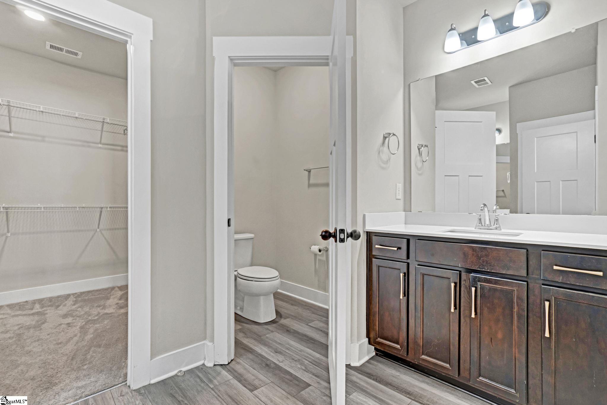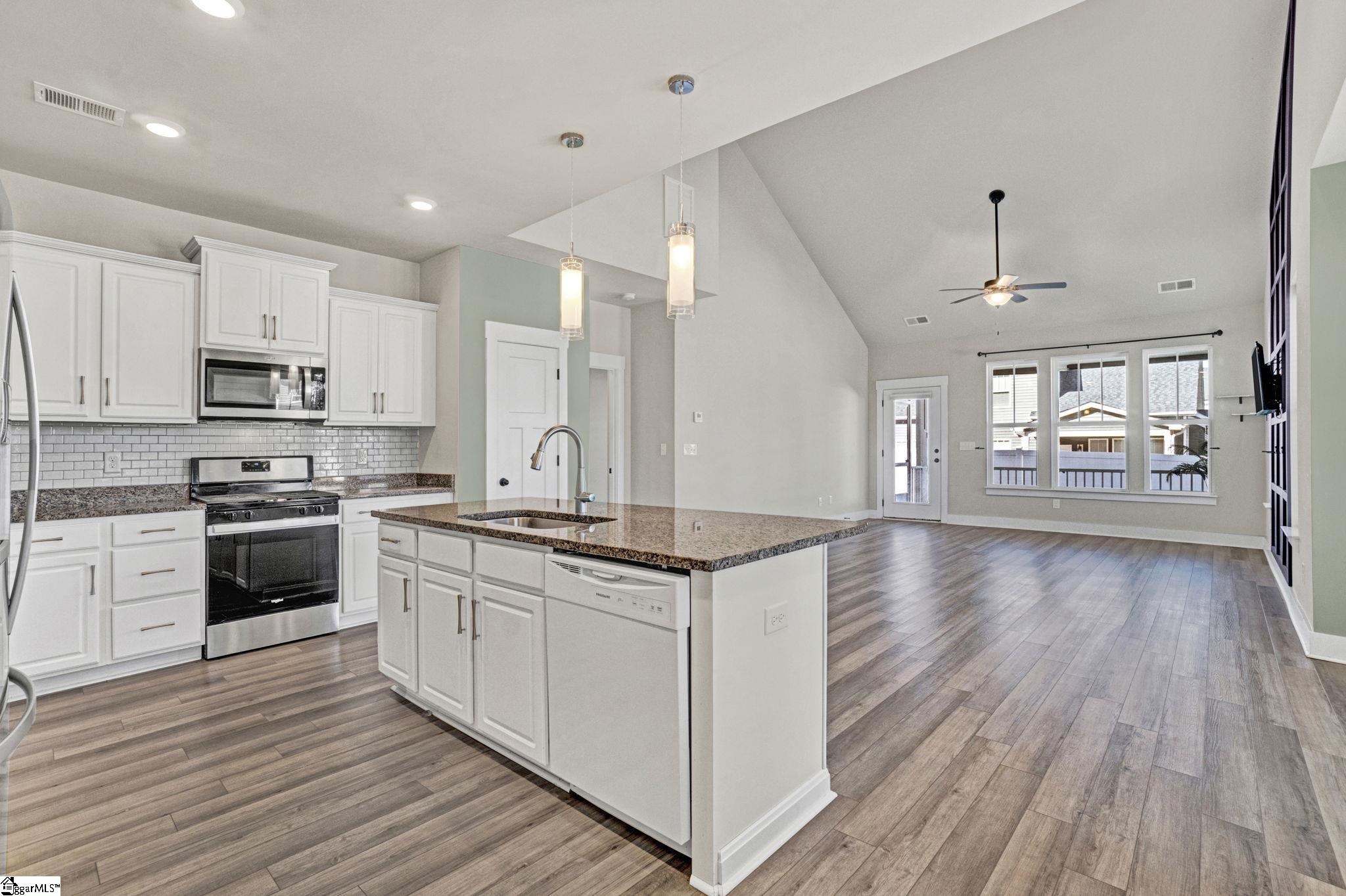 The first time I walked into 100 Greensdale Lane in Easley, South Carolina, I immediately felt how thoughtfully this townhome was put together. It has been hardly lived in, and it truly shows. The seller believed this would be their forever home and completed it with care, intention, and comfort in mind. I love that the primary bedroom is on the main floor, making everyday living easy and practical. The open floor plan feels airy and welcoming, with beautiful flooring that runs through the main living spaces and gives the home a clean, cohesive look. Added wainscoting brings just the right amount of character and warmth, making the space feel finished and inviting rather than builder basic. The kitchen flows seamlessly into the living area, perfect for entertaining or quiet evenings at home. Just off the main living space, you will step onto the private screened porch, a peaceful place for morning coffee or winding down at the end of the day. Beyond that, additional patio pavers have been added, creating an ideal grilling area. The fenced backyard is perfect for pets and adds a rare level of privacy for townhome living. The primary suite is generously sized, with a private bath and a walk in closet that offers plenty of storage. Coming in from the garage, there is a well designed drop zone, with a smaller laundry area nearby for daily convenience. Upstairs, I was pleasantly surprised to find a second, larger laundry area, which makes this home incredibly functional, especially for multi generational living or busy households. Upstairs also features a huge loft, a flexible space that works beautifully as a second living area, media room, or home office. Two additional bedrooms and a well sized guest bath complete the upper level, each room thoughtfully designed for comfort and usability. Back downstairs, the two car garage is finished with epoxy flooring, reinforcing just how much pride of ownership is present throughout the home. Every detail feels intentional, and the soft, comfortable color palette makes it easy to move right in without lifting a finger. With low HOA fees of only $115 per month, this townhome offers low maintenance living while still providing space, style, and privacy. Living here also means enjoying everything Easley has to offer. I love how close this home is to downtown Easley favorites like The Silos, 2nd & Main, and West End Supper Club. Weekend mornings could easily start with coffee from The Pint Station, followed by shopping, local events, or a stroll through nearby parks. Easley continues to grow with new restaurants, community events, and convenient access to Greenville, making it a place people truly want to call home. This move in ready Easley townhome combines location, layout, and livability in a way that feels rare. From the primary on the main, to the open floor plan, screened porch, fenced yard, and low HOA, this home checks every box and then some. If I were looking for a place that felt finished, loved, and ready for its next chapter, this would be it.