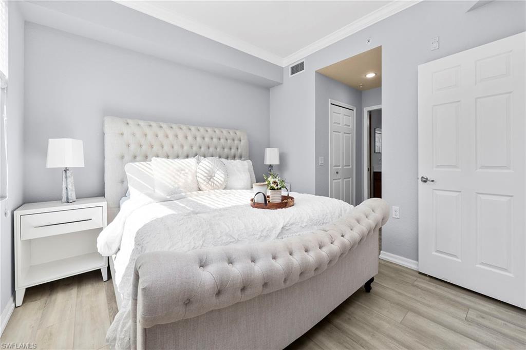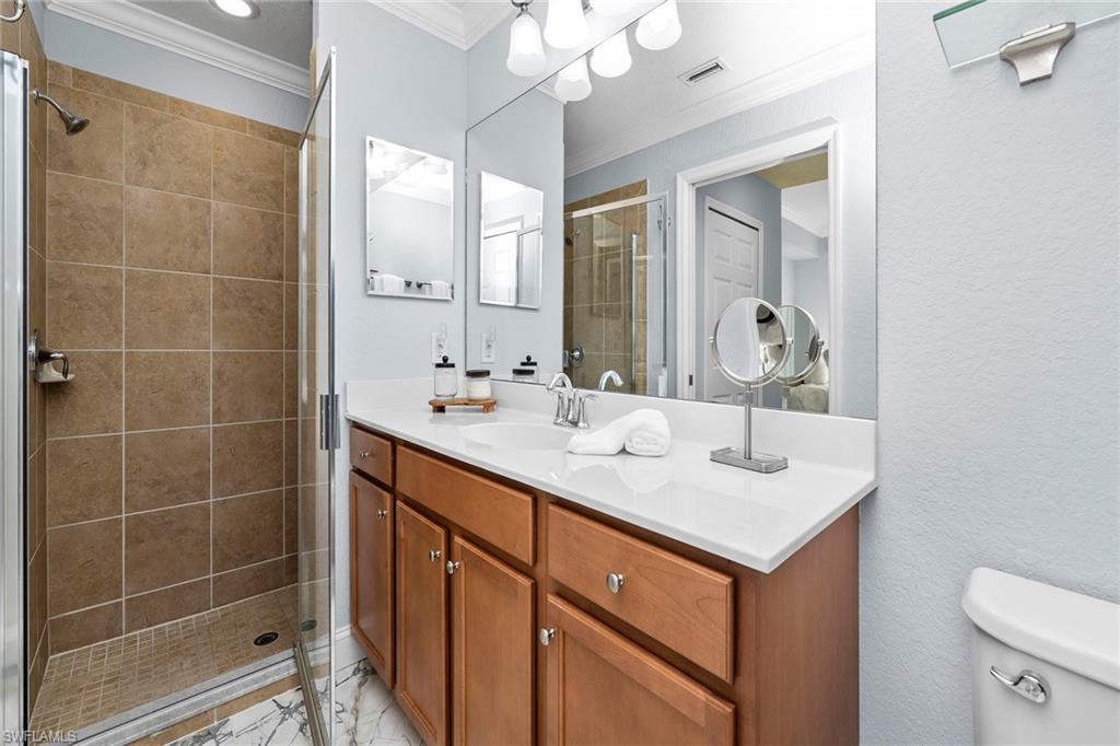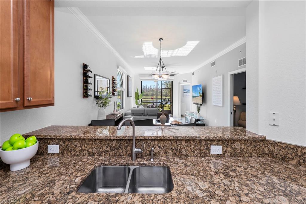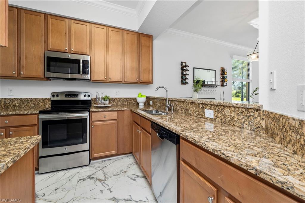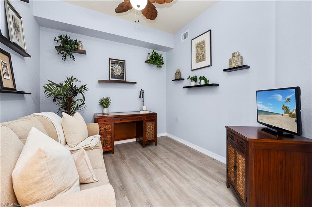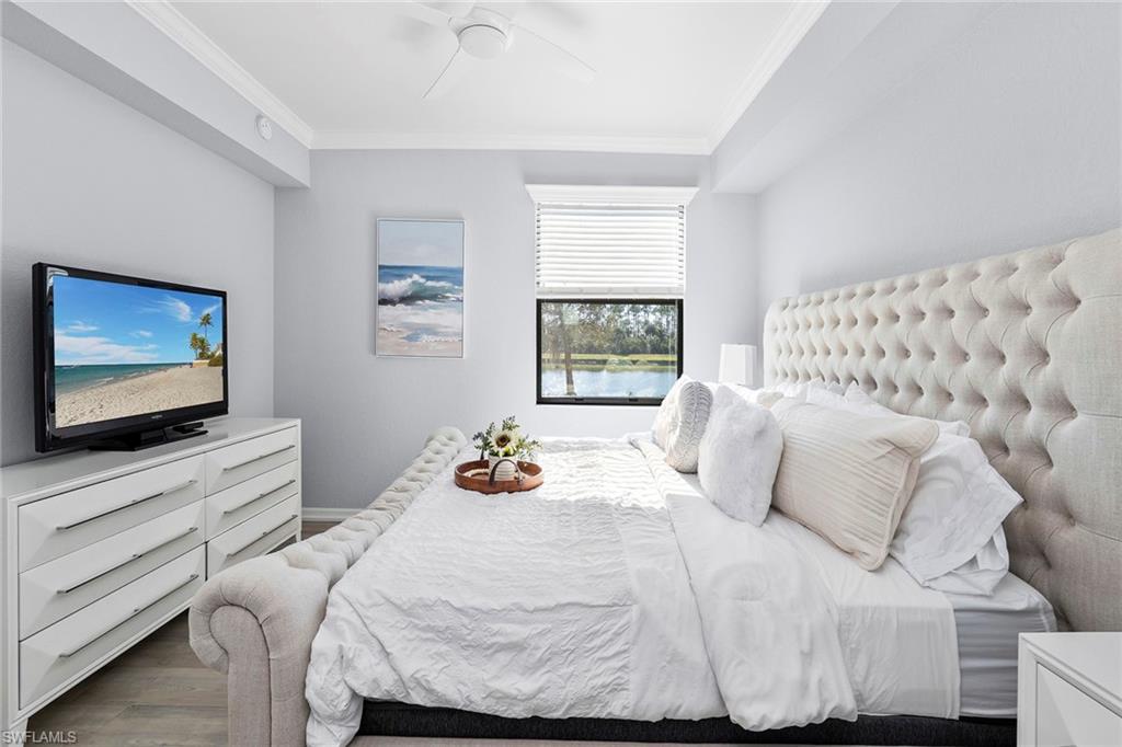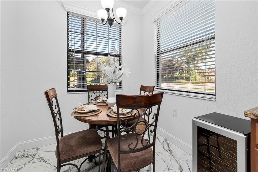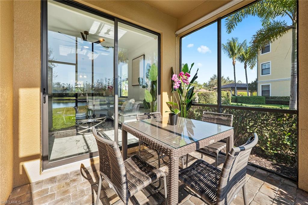 Own a full TPC golf membership with access to Treviso Bay’s renowned 18-hole Arthur Hills–designed championship golf course in this first-floor end unit condominium, in one of Naples desirable golf communities. This sought-after two-bedroom plus den, two-bath residence is in the Acqua subdivision of Treviso Bay and offers effortless, stair-free living with an open, light-filled layout. Recent updates include new flooring in the bedrooms. The open-concept kitchen flows seamlessly into the living and dining areas and is highlighted by a clean white backsplash, stainless steel appliances, and ample cabinetry, while marble flooring enhances the main living spaces. The flexible den is ideal for a home office or guest space. Enjoy peaceful lake and preserve views from the private screened lanai, ideal for relaxing mornings or evenings. Treviso Bay offers a resort-style lifestyle with the Villa Rilassare clubhouse, fitness center with classes, full-service spa and salon, resort-style pool with waterfall and tiki bar, tennis, pickleball, bocce, basketball, on-site dining and more, all within a 24-hour guard-gated community conveniently minutes from downtown Naples, Fifth Avenue South, shopping, dining and world-famous beaches.