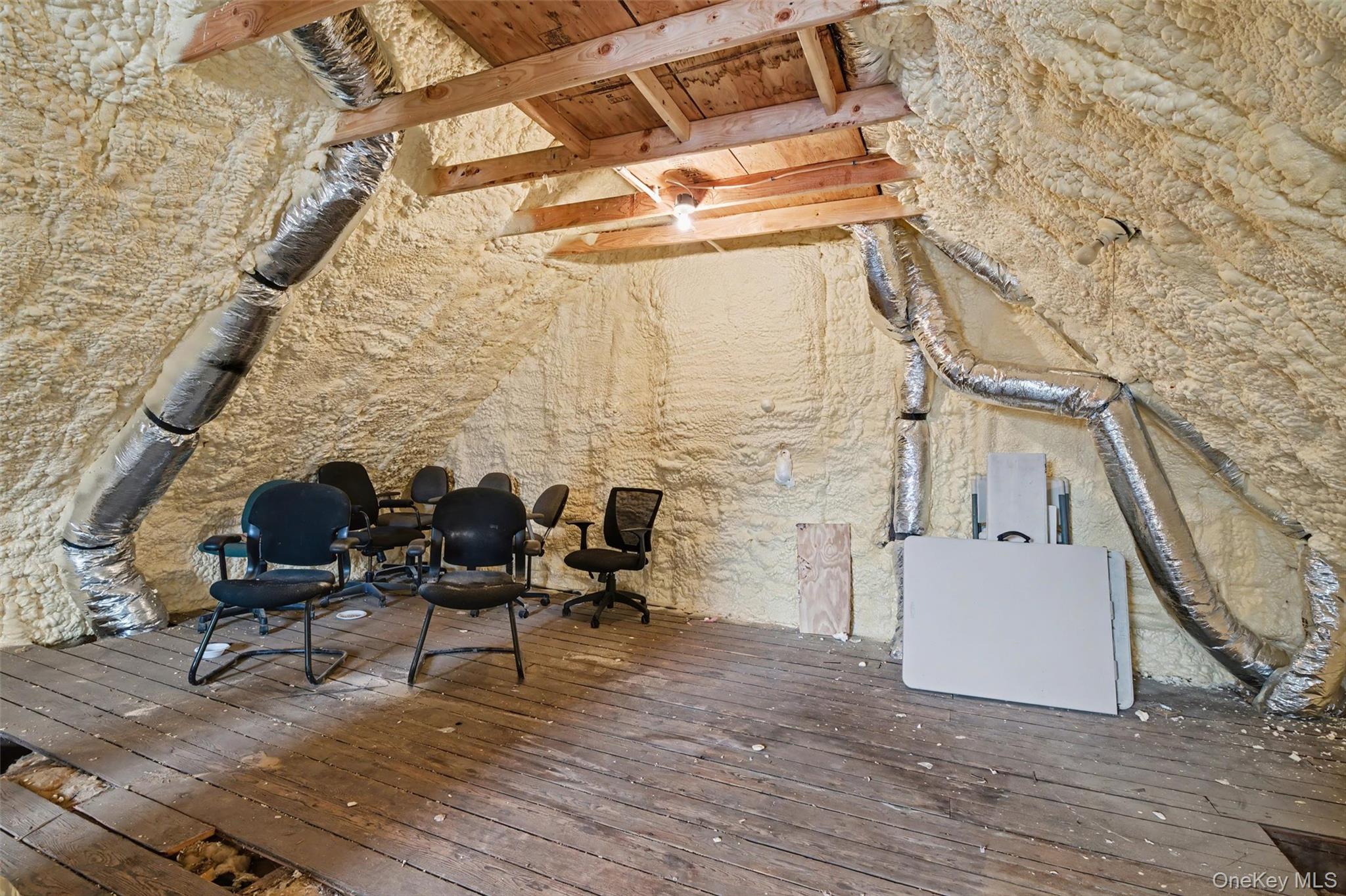 Welcome to a rare opportunity at 522 Route 32, strategically located on the high-traffic Route 32 business HB Zoning district directly across from the UPS store and USPS. This property offers a sign for additional major business visibility on high-traffic Route 32, located just a minute away from the Woodbury Common mall, with convenient access to the Thruway. This versatile mixed-use property offers excellent visibility and strong income potential. The building features a beautifully renovated residential apartment on the first floor and five well-appointed offices on the second floor, providing immediate rental income. Each office has large windows that allow for ample natural light, creating an efficient work environment. The property sits on a flat, paved lot with approximately 20 parking spaces, ideal for both tenants and customers. A well-maintained shed offers additional space for tools, storage, or equipment. This unique opportunity is perfect for owner-users or investors seeking a high-exposure location with multiple income streams—ideal for growing your business while benefiting from steady supplemental income. Don’t miss out on this opportunity!