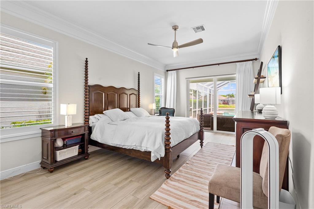 Luxurious wood-look tile flooring creates a seamless, tranquil aesthetic across the entire home. The 2019 renovation also included a $400k+ custom addition by a renowned contractor, expanding the living space, and transforming the 800 sq. ft. lanai with a fully renovated pool, picture screen pool cage and cypress wood ceiling—an ideal setting for relaxing or entertaining.