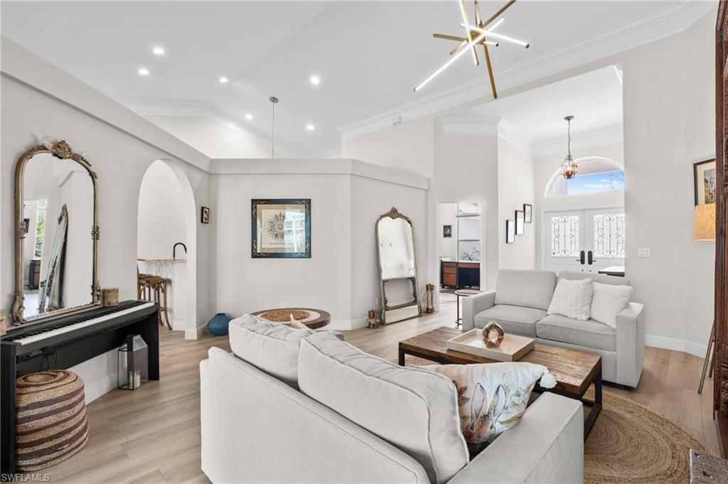 A rare opportunity to own a beautifully upgraded 4+ den / 3-bath lakefront home in the highly sought-after 34109 ZIP code. This spacious 2, 626 sq. ft. residence underwent a complete remodeling in 2019, adding 450 sq. feet of living area, including a reconfigured new metal roof, an additional custom-built room and extensive interior and exterior enhancements. 3rd bathroom added in place of the laundry room, washer and dryer moved to the garage. What used to be a dining room is now an office, but can also be used as additional room or home gym or yoga studio.