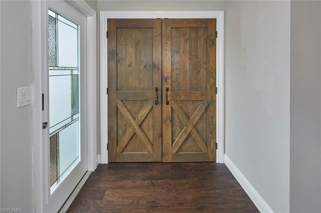 This extremely updated property exudes charm throughout and is conveniently in Lely Villas near all the bustling activities Naples has to offer. Condominium ownership but lives like a detached single-family home with two bedrooms and two baths on a private lot featuring a newer tile roof (2023) and impact-resistant windows and doors (2021) attached one-car garage and large covered screen lanai. Open eat-in kitchen has a wood-top island, white cabinetry, quartz countertops, stainless appliances, a stunning built-in coffee bar and a matching built-in entertainment center both with additional storage. Large primary bedroom has lanai access, a walk-in closet and updated bath. The second bath has also been tastefully renovated. The interior features wood-look plank vinyl flooring, crown molding, French doors, six-panel interior doors, newer lighting and fresh paint in neutral tones. The spacious entry closet has been converted to a private nook with desk and storage space, which can quickly and conveniently be hidden. The huge 26-by-12-foot screened-in lanai is an ideal area for relaxing, dining or entertaining. The reasonable condominium fees include cable, internet, irrigation and lawn maintenance. At this price, this hard-to-find modernized house will move quickly.