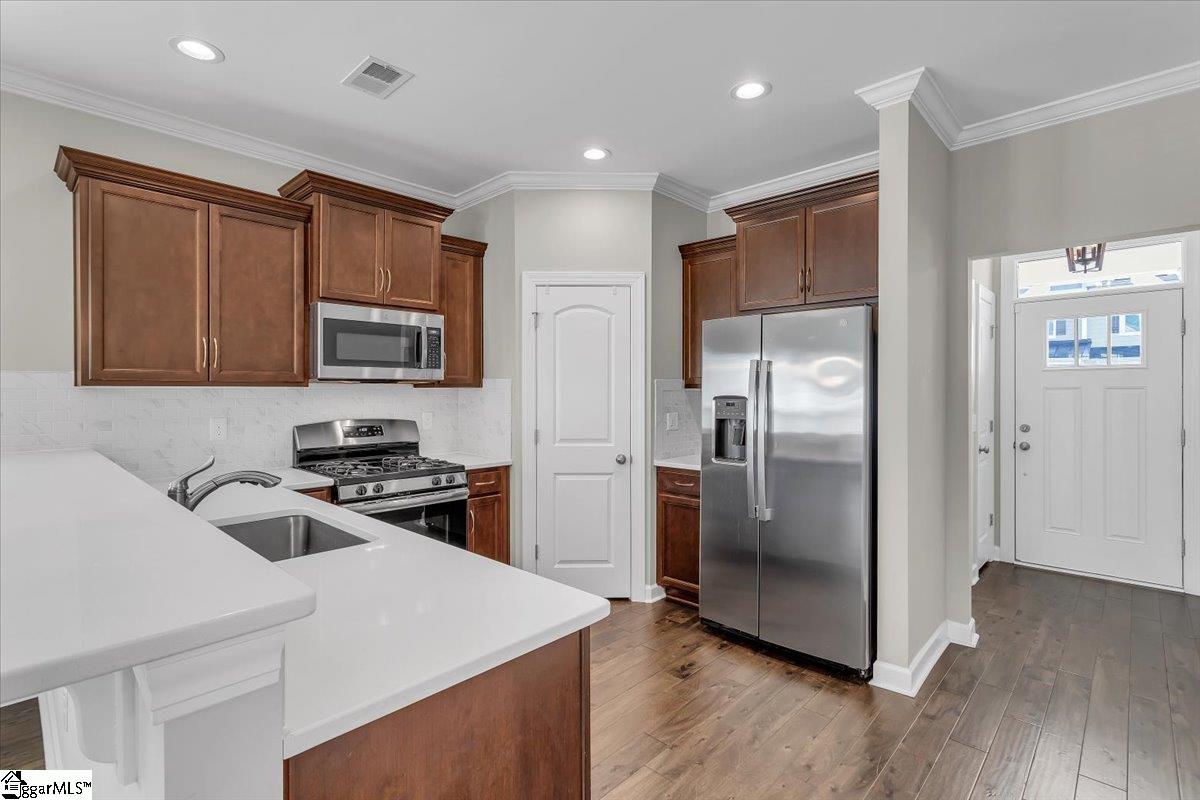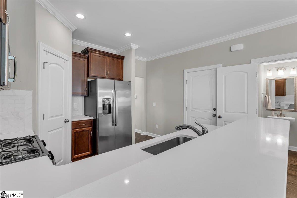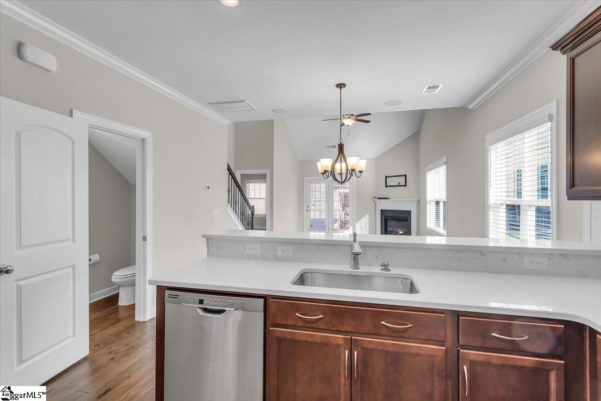"Conveniently Centered" is Smith Mill Landing's corner lot. Once you pull into gated entrance, straight ahead on the corner of Wakeview Way and Nautique Court, it's on your right. The Beth Page Floor plan features a covered front porch, a laundry room with a window, and classic quartz countertops compliment the tiled backsplash with conveying stainless steel appliances in this timeless kitchen. The breakfast bar adjoins the dining area and flows in the corner gas fireplace great room. Coming in from the garage is a quick stop at the guest half bath, and to the back left corner from great room is the tucked-away primary suite. The attached full bath offers dual-sink vanity, a separate garden tub beside an individual shower, and ends at the walk-in closet. Steps from the primary door lead you upstairs. The original owner had a stair chair lift that has been removed. If one may be needed in the future, it would be easy to have one reinstalled. The second floor has two bedrooms facing front, an 8"x17" bonus room and full bath facing the back. The upstairs bath features a dual sink vanity and a separate door to toilet and tub/shower combo. Additional storage space is available in the pull down attic upstairs, possibly in garage and the storage room off the back patio. The heated and cooled living space is calculated at 1, 623 sq. ft. , total property space of 2, 180 sq. ft. , according to the attached floor plan. Monthly HOA fees are just $296 and include common area insurance, exterior maintenance, lawn maintenance, pest control, street lights, trash service, termite contract, gate maintenance and yard irrigation. Smith Mill Landing is a Lake Hartwell gated community located right off of I85 with just 19 miles to Georgia and 30 minutes to Greenville. Only 11 miles to Clemson University, 7. 5 miles to TriCounty Tech, and 12 minutes to Anderson University. Hartsfield-Jackson Atlanta Airport is 2 hours away, Greenville Spartanburg International Airport is 40 minutes away and Anderson Regional Airport is 14 minutes away.