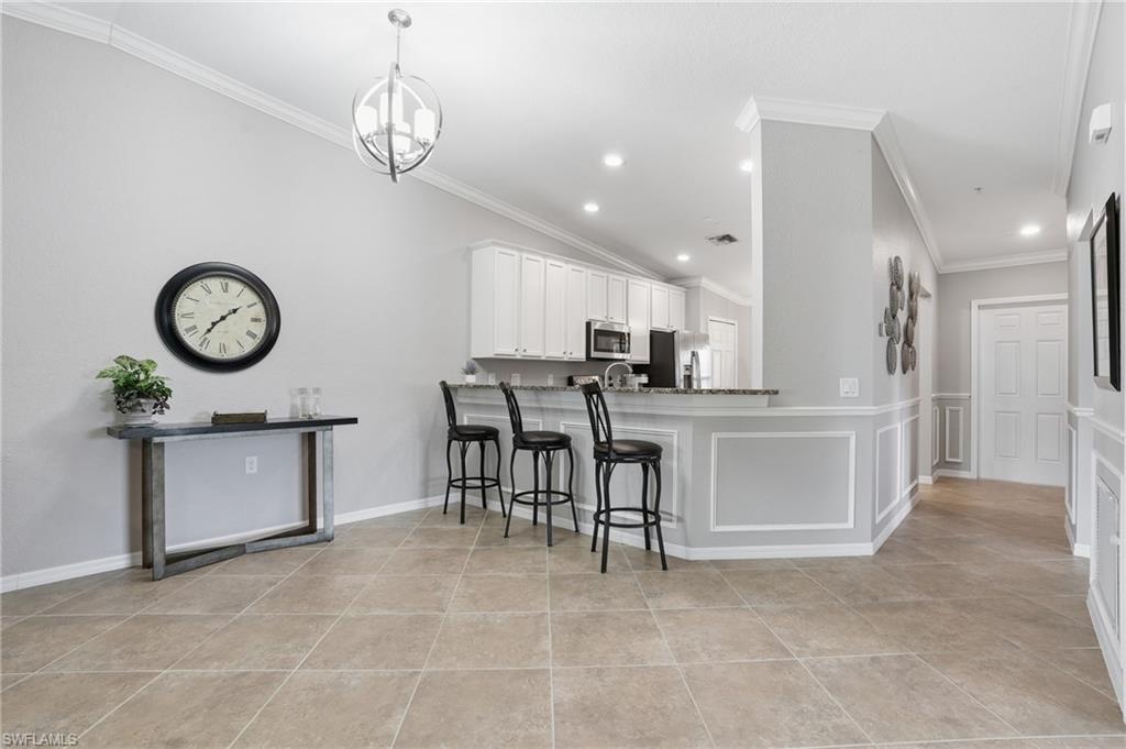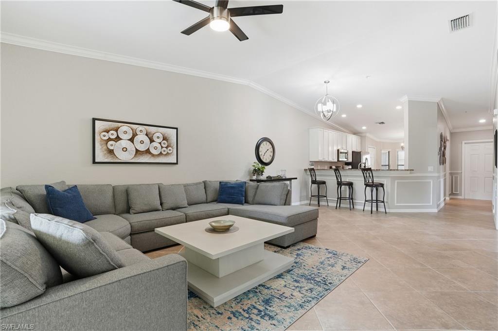 Enjoy resort-style living in the highly sought-after community of Treviso Bay. This light-filled 2-bedroom plus den end unit offers beautiful lake views and includes a one-car detached garage. Interior features include white cabinetry, crown and decorative molding, impact windows and sliders, wine cooler, tile and carpet flooring, AC one year old, and a flexible den ideal for a home office or guest space.