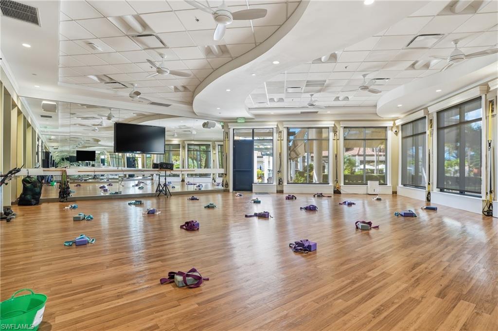 Treviso Bay is known for its exceptional amenities, including a resort-style pool with poolside bar and restaurant, a full-service fitness center with attendant and group fitness classes, an active pickleball program, tennis courts with pro shop, and a full-service spa. The elegant clubhouse features fine dining options and a variety of member-themed social events. Residents also enjoy the new Flagship Bar overlooking the stunning TPC Treviso Bay golf course. Golf membership is not included with this condominium; however, off-season golf is available from May through October for a nominal fee.
