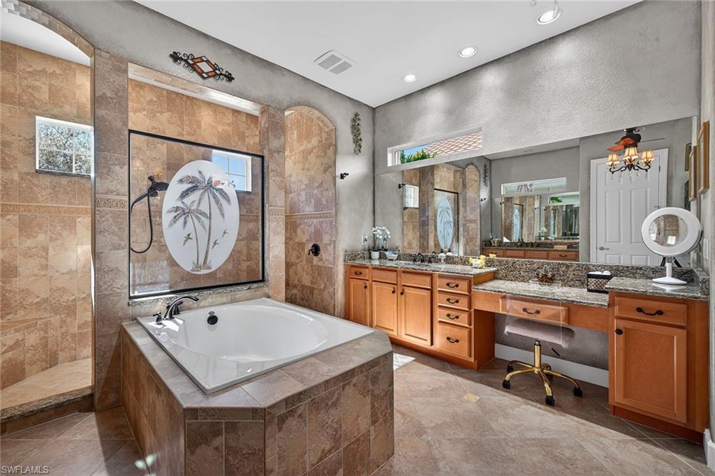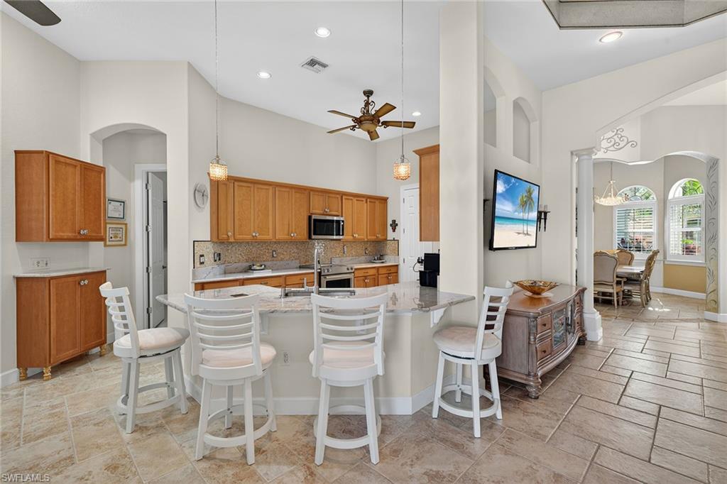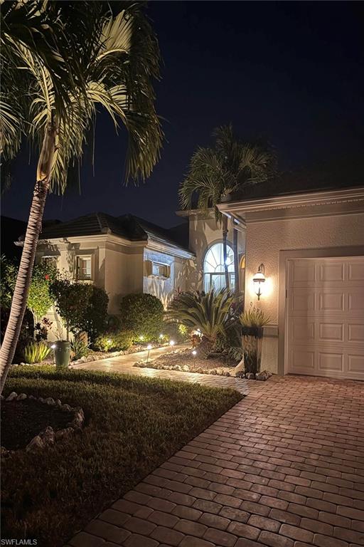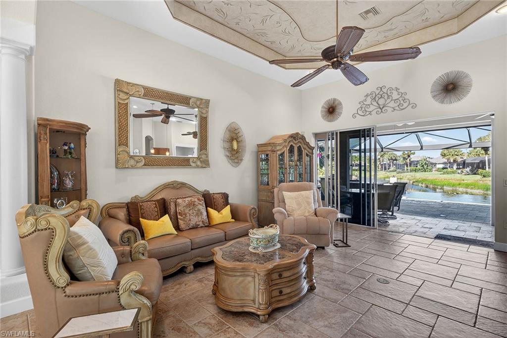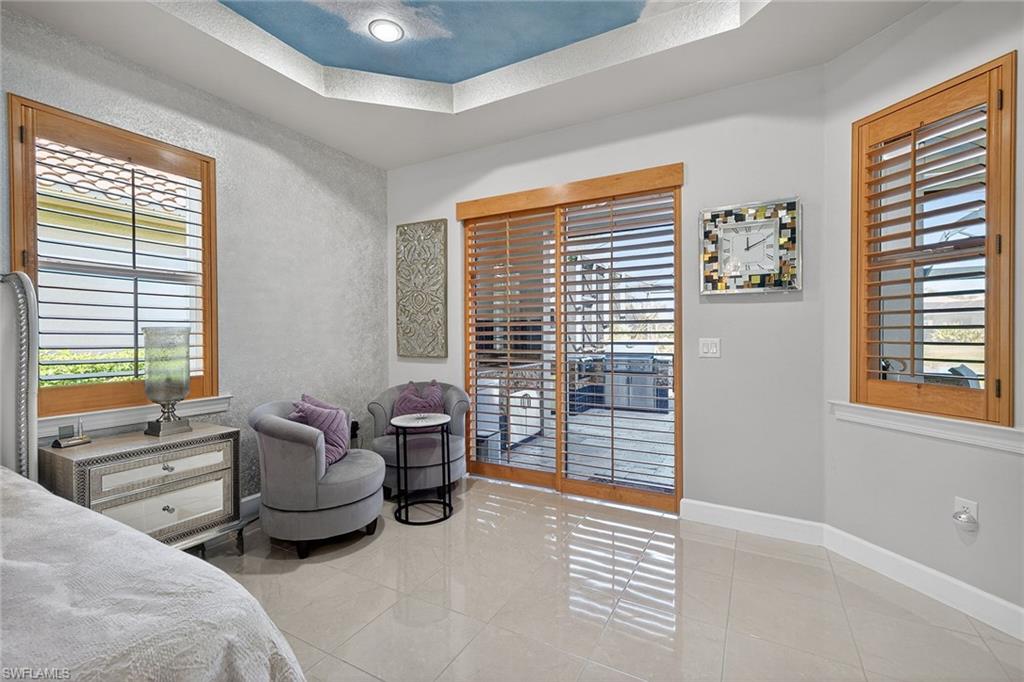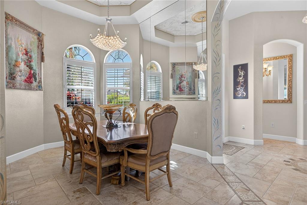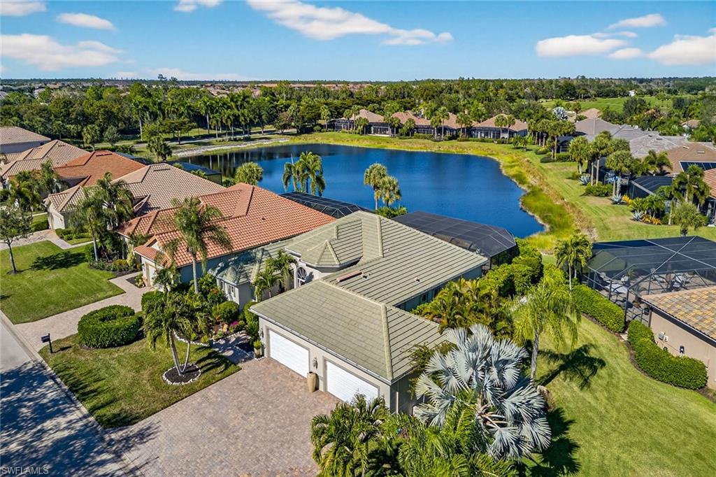Exceptional living starts in a spectacular community. The Quarry Golf & Beach Club sits on a 330-acre lake. Residents enjoy motor boating, championship golf, wellness center, pickleball, tennis and onsite dining at the resort pool and The Golf Club. The oversized lot accommodates a rare four-car temperature-controlled garage equipped to charge your electric vehicle. Features include a saltwater infinity pool and spa, with fire and water features, marble travertine and picture window screen. The custom outdoor kitchen includes an oversized stove, grill, sink, dishwasher, refrigerator, blender and storage, outdoor shower, nebula lighting and custom landscaping. Inside, porcelain tile and real wood flooring accompany custom-painted ceilings, quartz countertops and custom lighting. Recent updates include tile roof (2019), water heater (2024), HVAC (2021), kitchen (2021), electric storm and accordion shutters, and a 500-gallon propane tank for grilling and heating the custom pool and spa. This is a special home in an outstanding social community.
