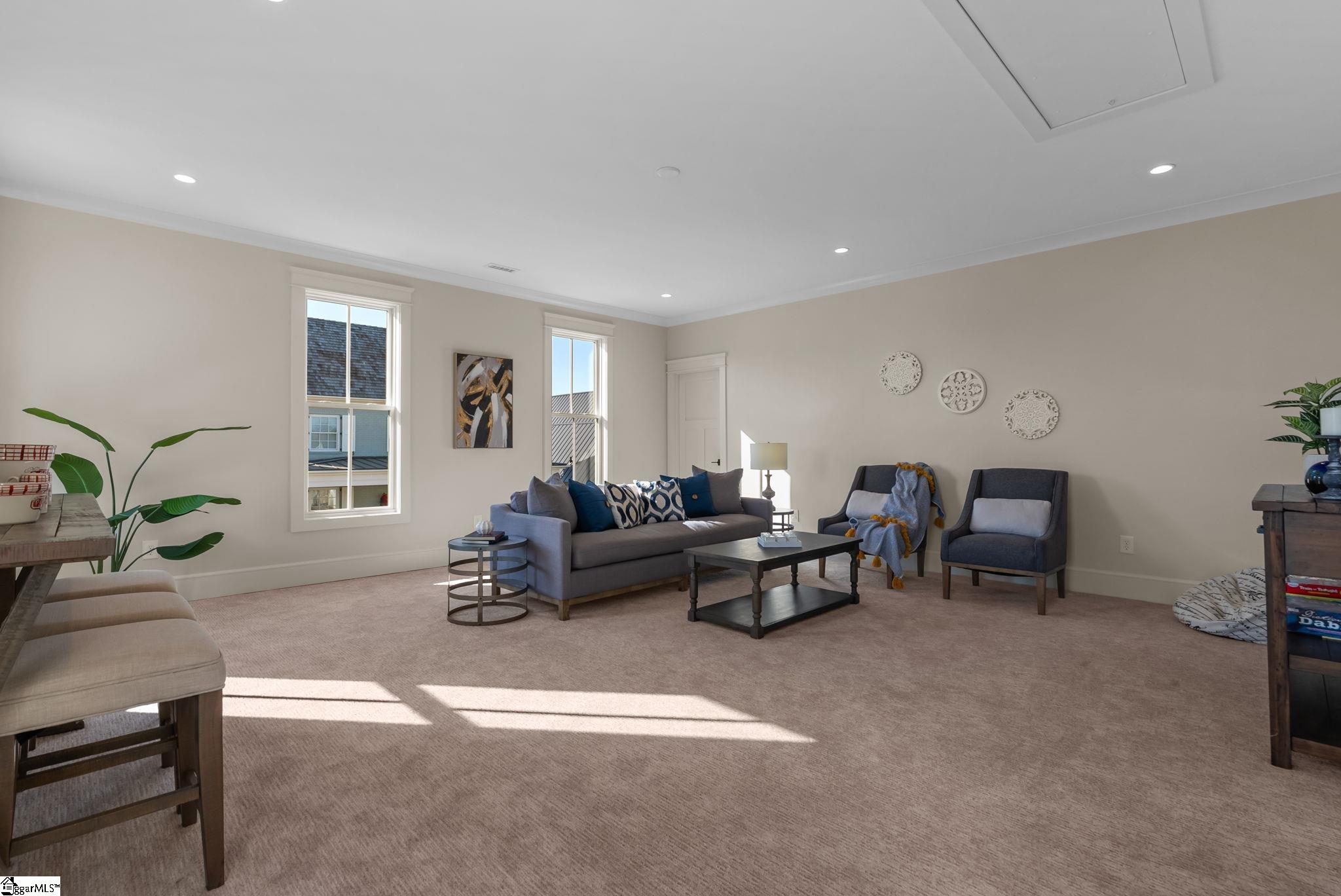 Welcome to the Magnolia, a thoughtfully designed home in the highly desirable Hartness community, where timeless architecture meets modern functionality. This spacious residence offers 3 bedrooms, 3 full baths, and 1 powder room, perfectly suited for comfortable living and elegant entertaining. On the main level, you’ll find a 2-car garage, a convenient mudroom, and a stylish powder room. The walk-in laundry room adds functionality, while the primary suite features a spa-inspired bath with dual vanities, a tiled shower, and an extensive walk-in closet. The gourmet kitchen is equipped with stainless steel appliances, a generous kitchen island with built-in microwave, and a walk-in pantry. It flows seamlessly into the dining room and living room, where a cozy fireplace creates a warm gathering space. Upstairs, the home continues to impress with a large rec room featuring a spacious closet, a versatile flex room, as well as two additional bedrooms and two full baths, providing privacy and comfort for family or guests. Located in Hartness, a master-planned community known for its walkable design, green spaces, and amenities, the Magnolia is more than a home—it’s a lifestyle.
