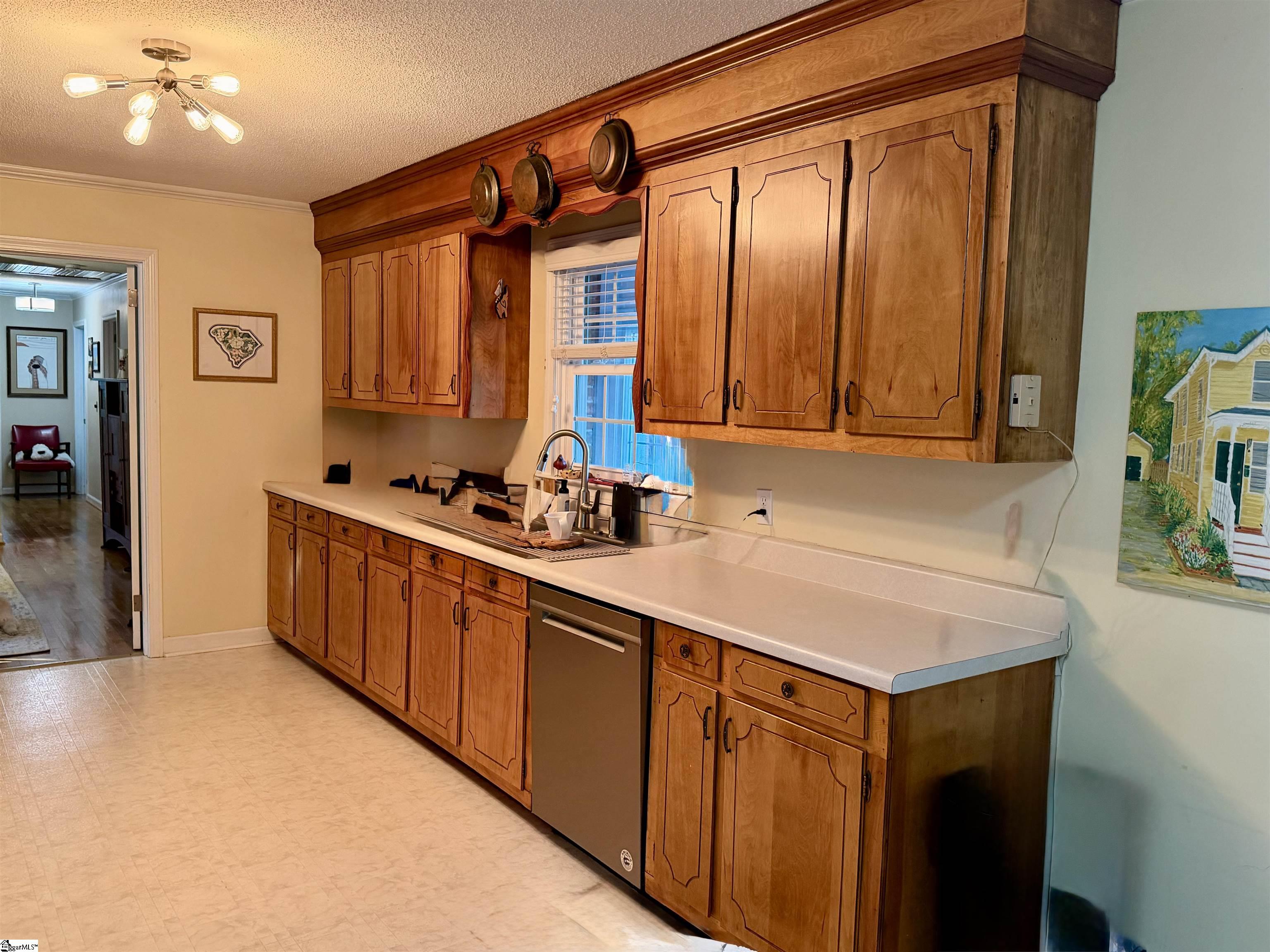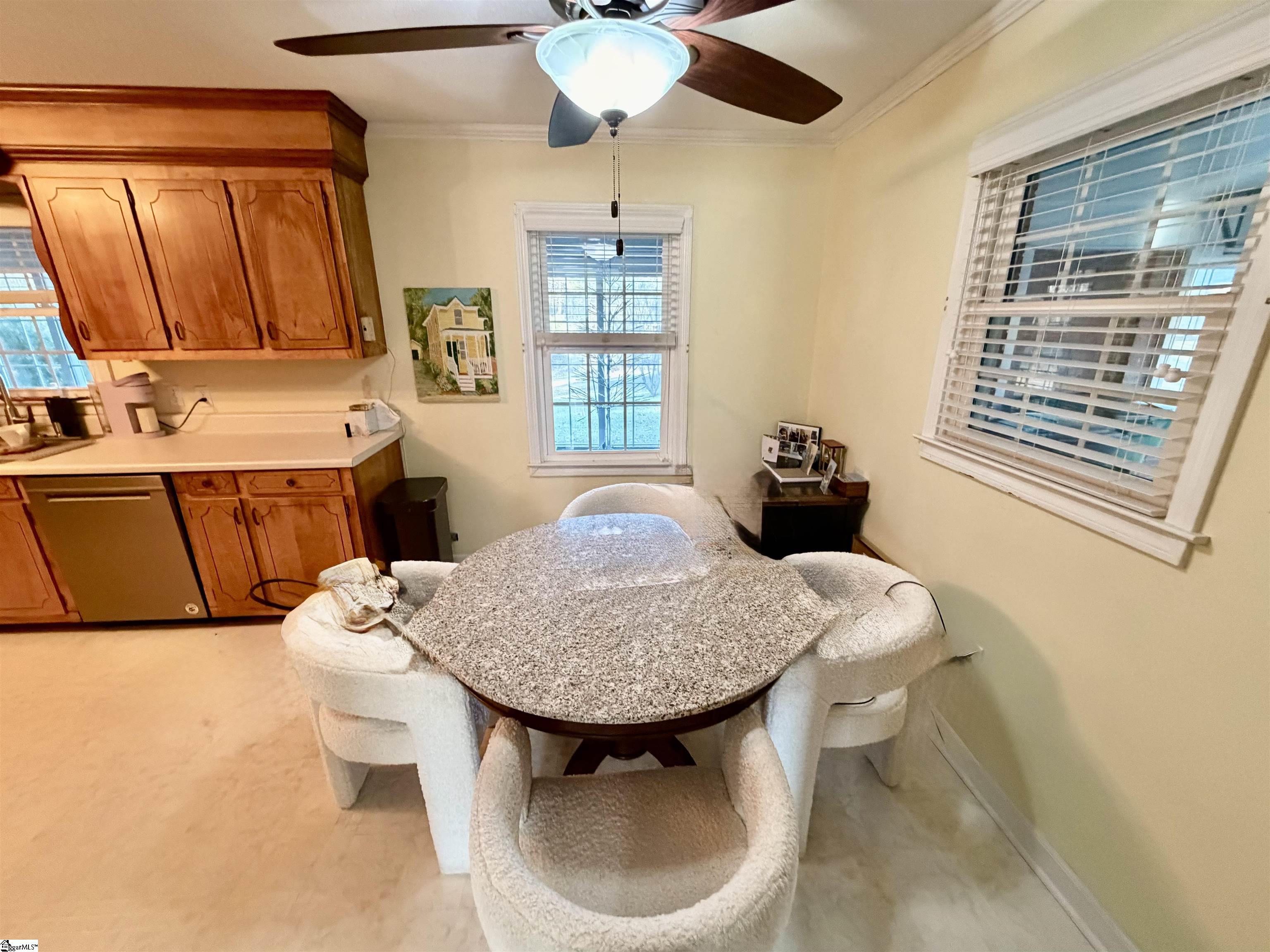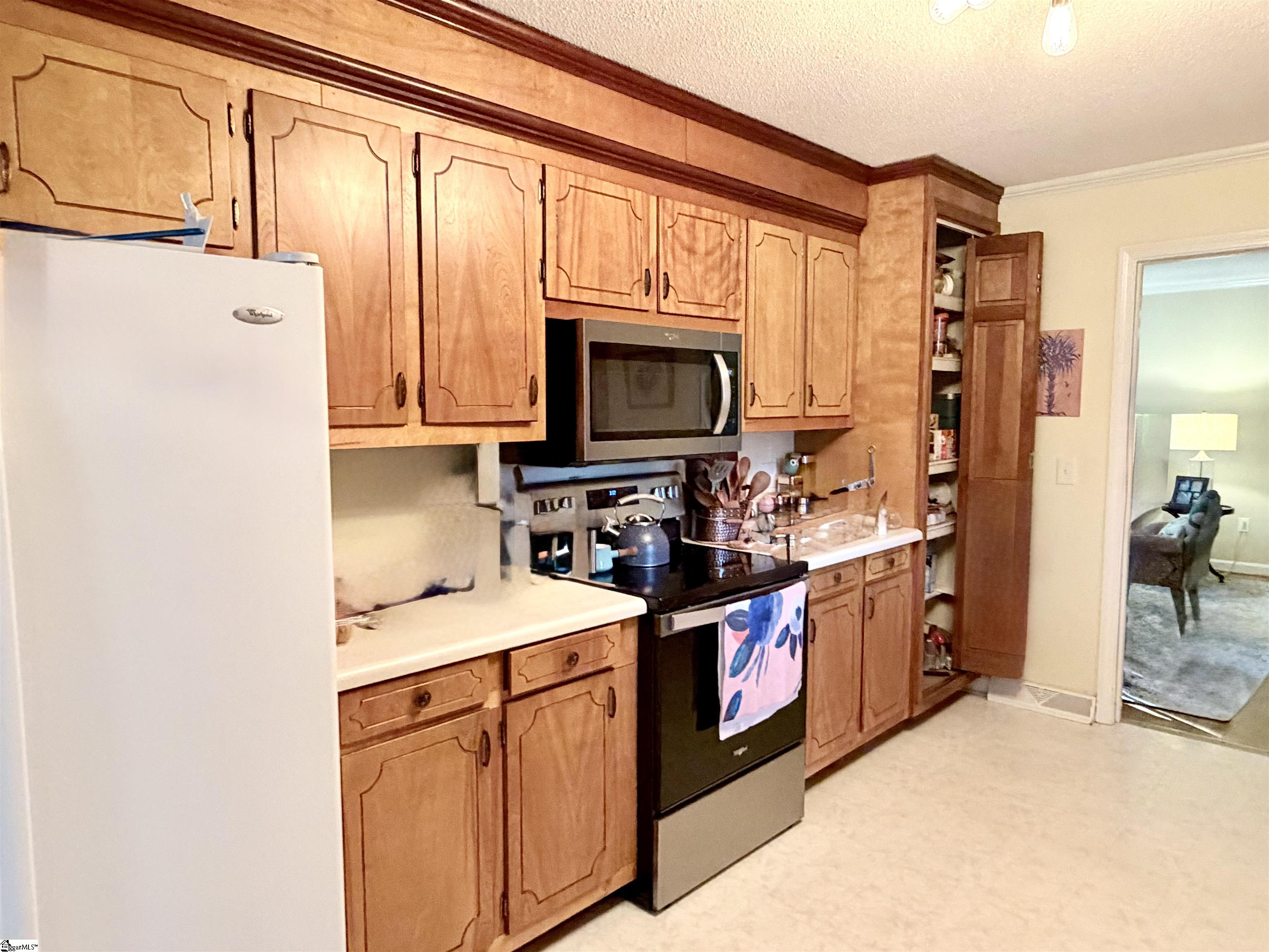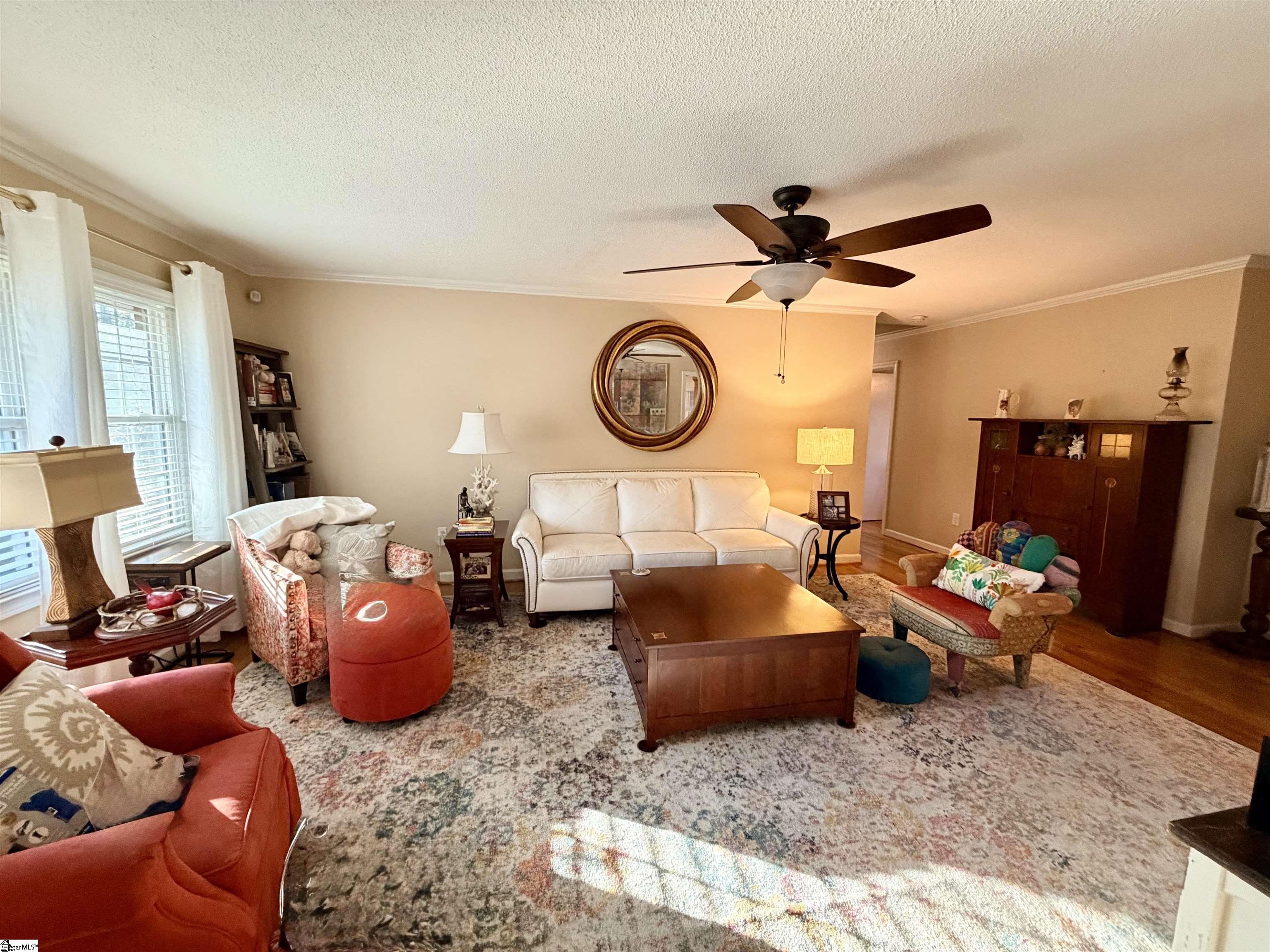 Charming traditional brick ranch located on a spacious . 52-acre corner lot, featuring a newer fenced-in backyard, patio, updated windows, electrical panel box, walk-in laundry room, and modernised bathrooms. This 3-bedroom home boasts a cozy enclosed front porch—ideal for enjoying the local wildlife. The expansive living room, den with brick wood-burning fireplace and beautiful hardwood floors, providing ample space for entertaining. The kitchen offers a delightful eating area, deep cabinetry, and plenty of room for a chef to work comfortably. Down the hallway, you'll find a large full bath with a tub/shower combo, plus two generously-sized bedrooms (12x12), each with built-in storage, hardwood flooring and plenty of natural light. The master bedroom is a standout at 16. 9x11, featuring two closets, including a walk-in, and an en-suite bathroom with shower. The private backyard is fully enclosed with a wooden fence and a patio, making it the perfect space for outdoor gatherings. Enjoy a 2 car garage and storage room, plus roof and HVAC replaced in 2017. This home has been lovingly maintained; however, there is soft flooring in the den, which is why it is being sold AS-IS. Come see this wonderful home in the city limits of Williamston!