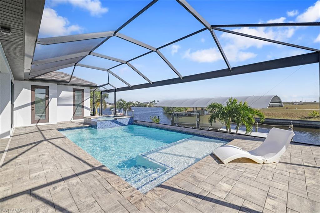 GREAT PRICE IMPROVEMENT for this Dream Waterfront Home! This 2022-built custom Gulf access home in Cape Coral offers 3 bedrooms + den and 3 baths and direct access to Matlacha Pass — perfect for boating, entertaining, and Florida coastal living. Bright and open, the home combines contemporary design with smart, functional spaces. This exceptional residence is a true boater’s paradise, perfectly positioned in the heart of this vibrant coastal community. Built with impeccable craftsmanship and contemporary flair, this newer home blends luxury, smart technology, and everyday comfort seamlessly. Step inside to an open, light-filled floor plan designed for both elegant entertaining and relaxed living. Expansive living spaces flow effortlessly, creating a warm and inviting atmosphere throughout. The gourmet kitchen is a chef’s dream, showcasing sleek countertops, premium high-end appliances including a smooth-top induction cooktop, double microwave ovens, and abundant custom cabinetry for ample storage. Outdoors, your private waterfront oasis awaits. Enjoy a sparkling pool and spa, a spacious covered patio, and endless opportunities for relaxation or entertaining. Boating enthusiasts will appreciate the wrap-around composite dock, 10, 000-lb boat lift with 16x40 canopy, and quick access to Matlacha Bay—just minutes from open water. This home is loaded with premium upgrades, including Security CCTV, camera system, Luxurious primary bath with rain shower heads and 6-way thermostatic valves. Ultra-quiet Panasonic 400 CFM exhaust fan LCEC GenerLink for direct generator connection, fully automated pool system with your Phone control and a 3-car garage with epoxy floors. Conveniently located near shopping, dining, entertainment, world-class beaches, and endless outdoor recreation, this extraordinary home offers the ultimate Florida waterfront lifestyle.