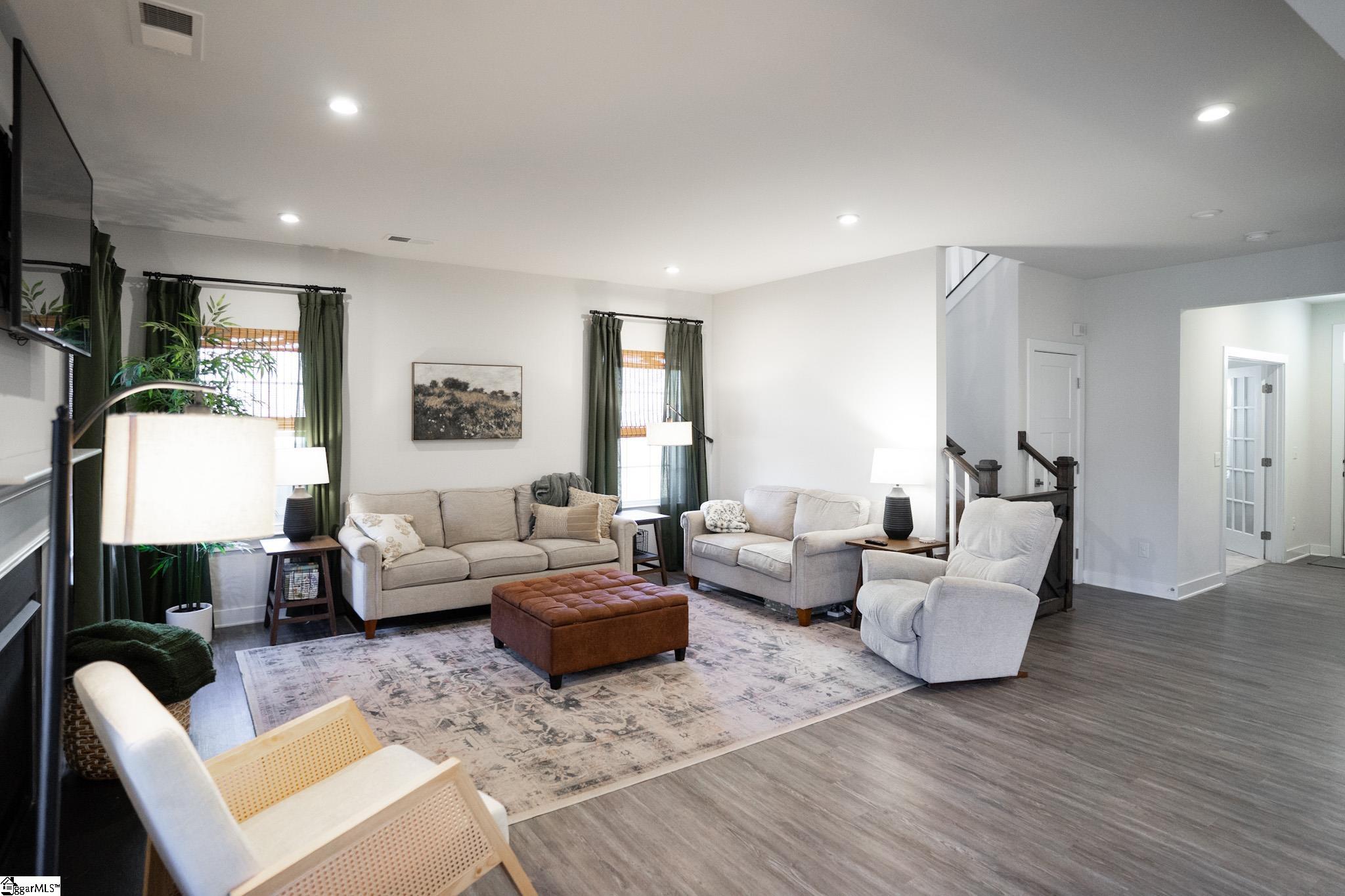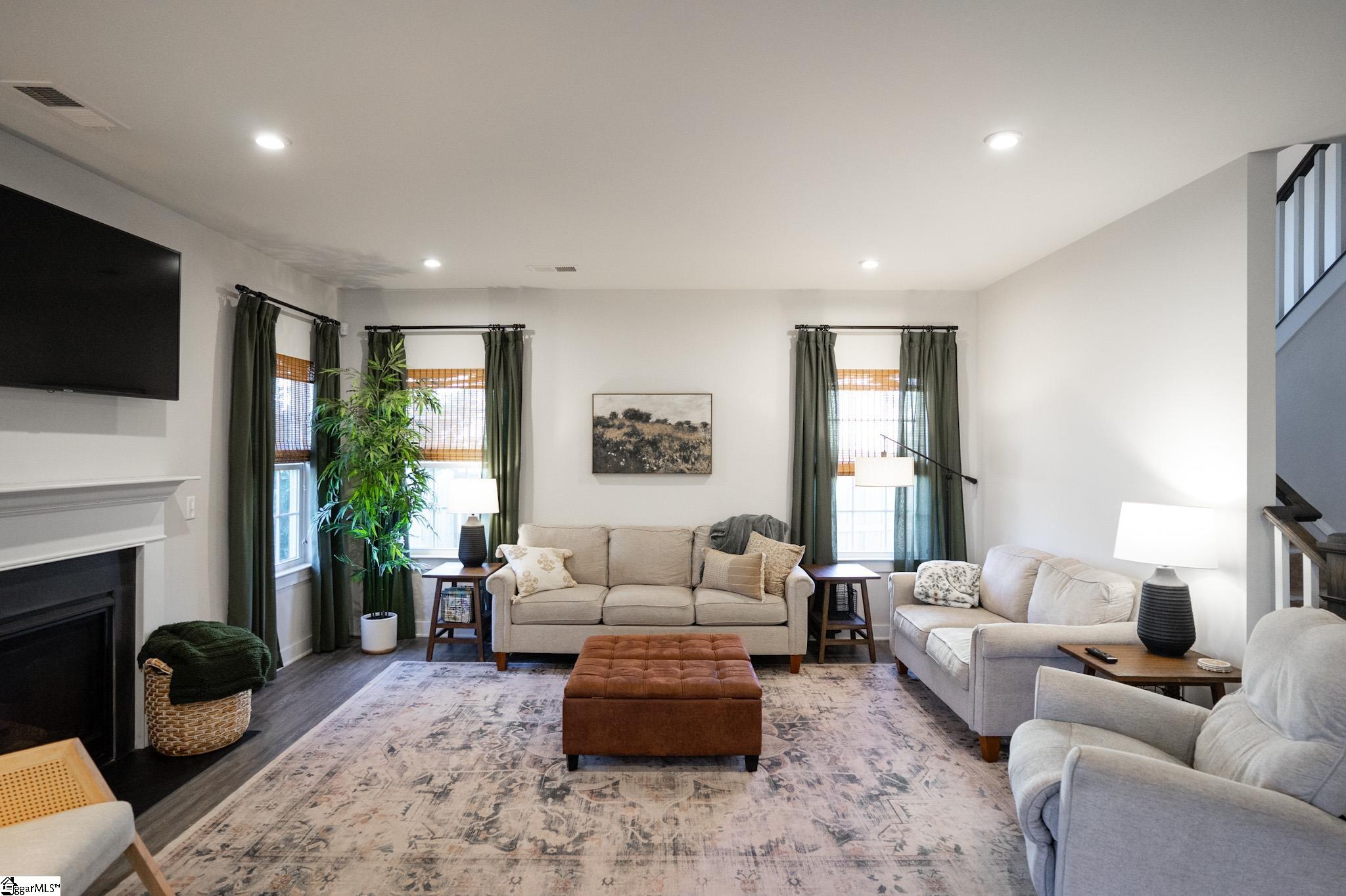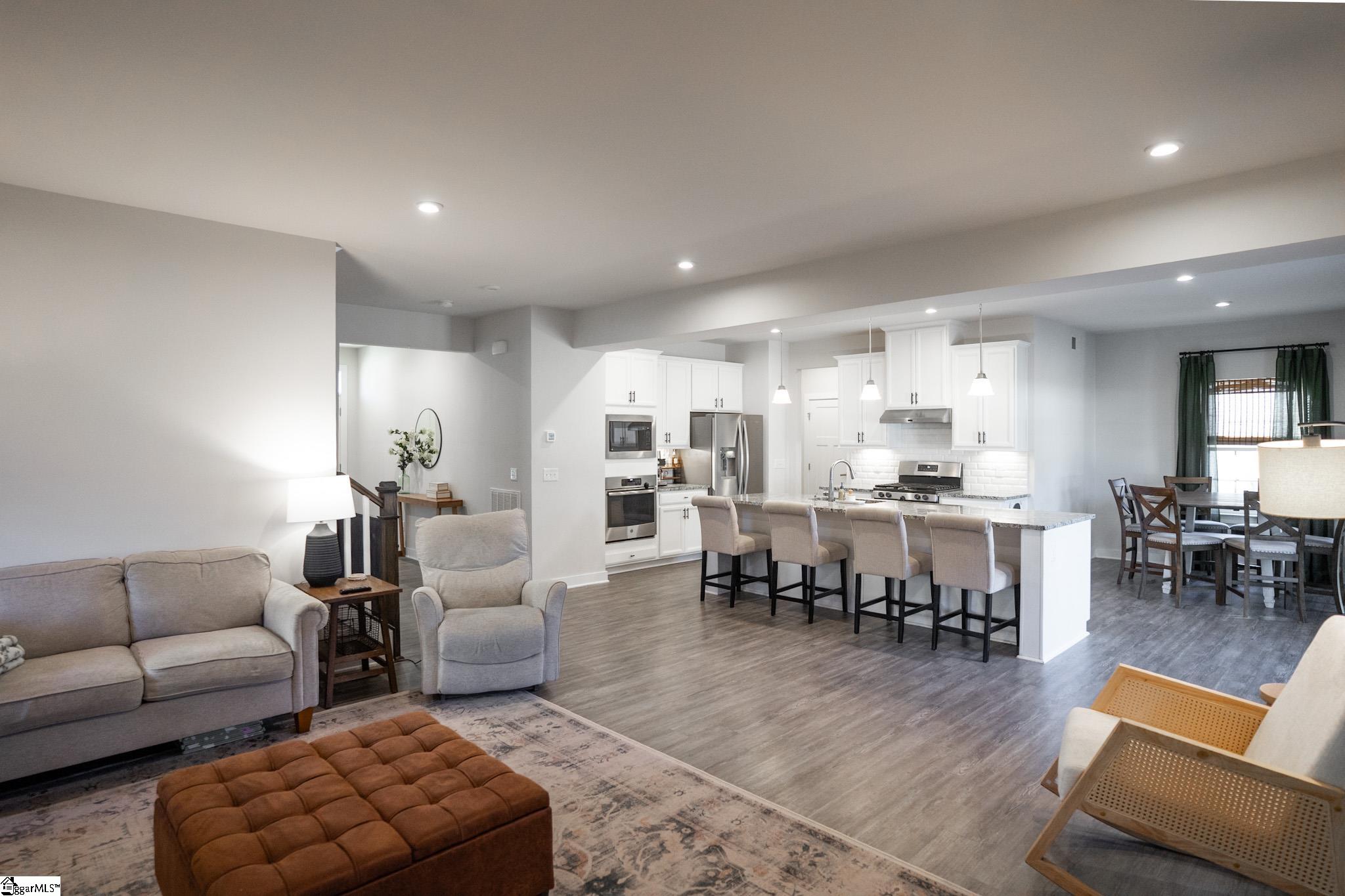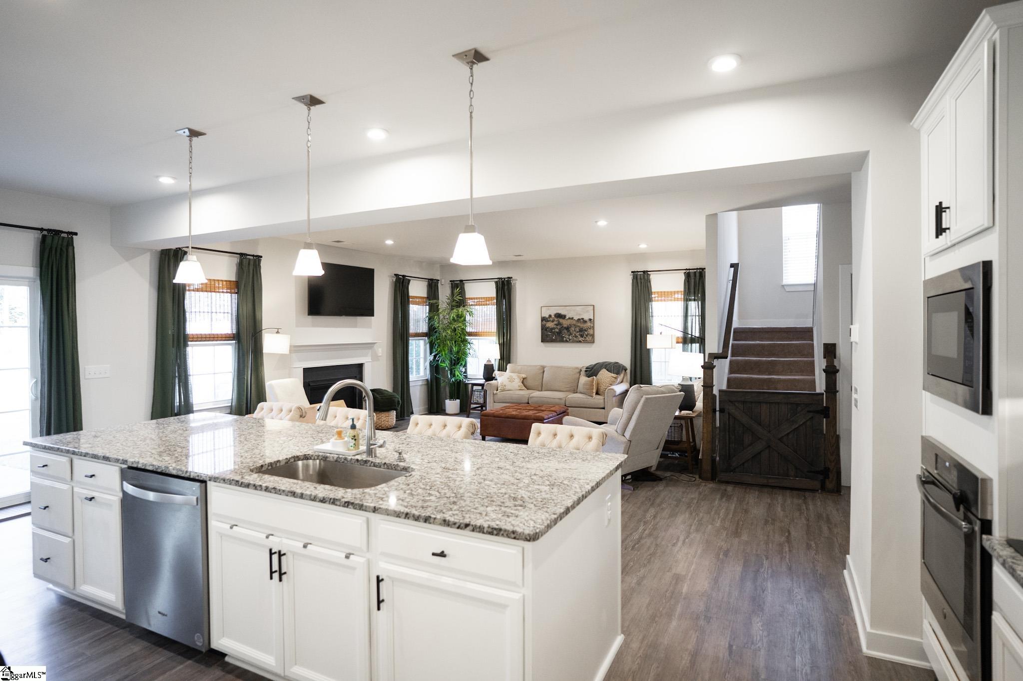 Welcome to your next perfect home! This 4 bedroom, 2. 5 bath property has everything you're looking for! The open-concept living area has beautiful LVP floors and six large windows that flood the space with natural light. The gas fireplace is the perfect addition to anchor the large open space. Dividing the living room from the kitchen is a fantastic kitchen island with ample bar top seating! The kitchen also features stainless steel appliances, granite countertops, a dining area just steps away from the main cooking area, and 2 separate ovens for your cooking pleasure! Also downstairs is an updated half bath, 2 storage closets, a custom-built pantry, room for a drop-zone area, and a french-doored flex room perfect for a private office or bonus room. Finishing off the downstairs is a sliding glass exterior door with a built-in screen, leading out to the large privacy-fenced backyard. Upstairs holds all 4 bedrooms and both full bathrooms. Best of all is the primary suite that includes a huge 14x20 bedroom with enough room for a seating area, an ensuite bathroom with a double vanity and a private water closet, and a massive walk-in closet with custom built-in organization. The laundry room sits right outside the primary suite for ease of access. It also provides an incredible amount of storage opportunity. The 3 additional bedrooms upstairs are off the main corridor, and share a full bathroom. Seated on a quarter-acre lot, this home is conveniently located in a friendly neighborhood near schools, shopping, and parks, and only 15 minutes from downtown Greenville! Don’t miss the opportunity to make this well maintained house your forever home!