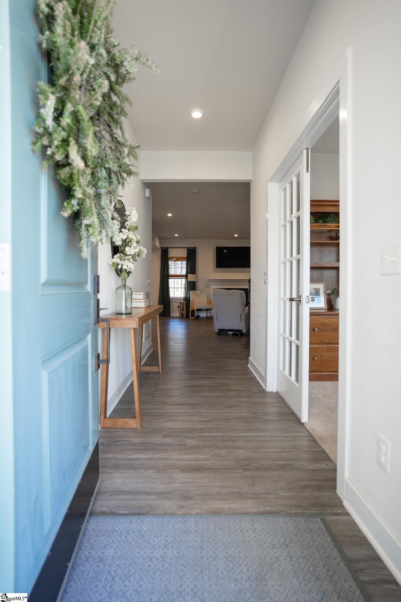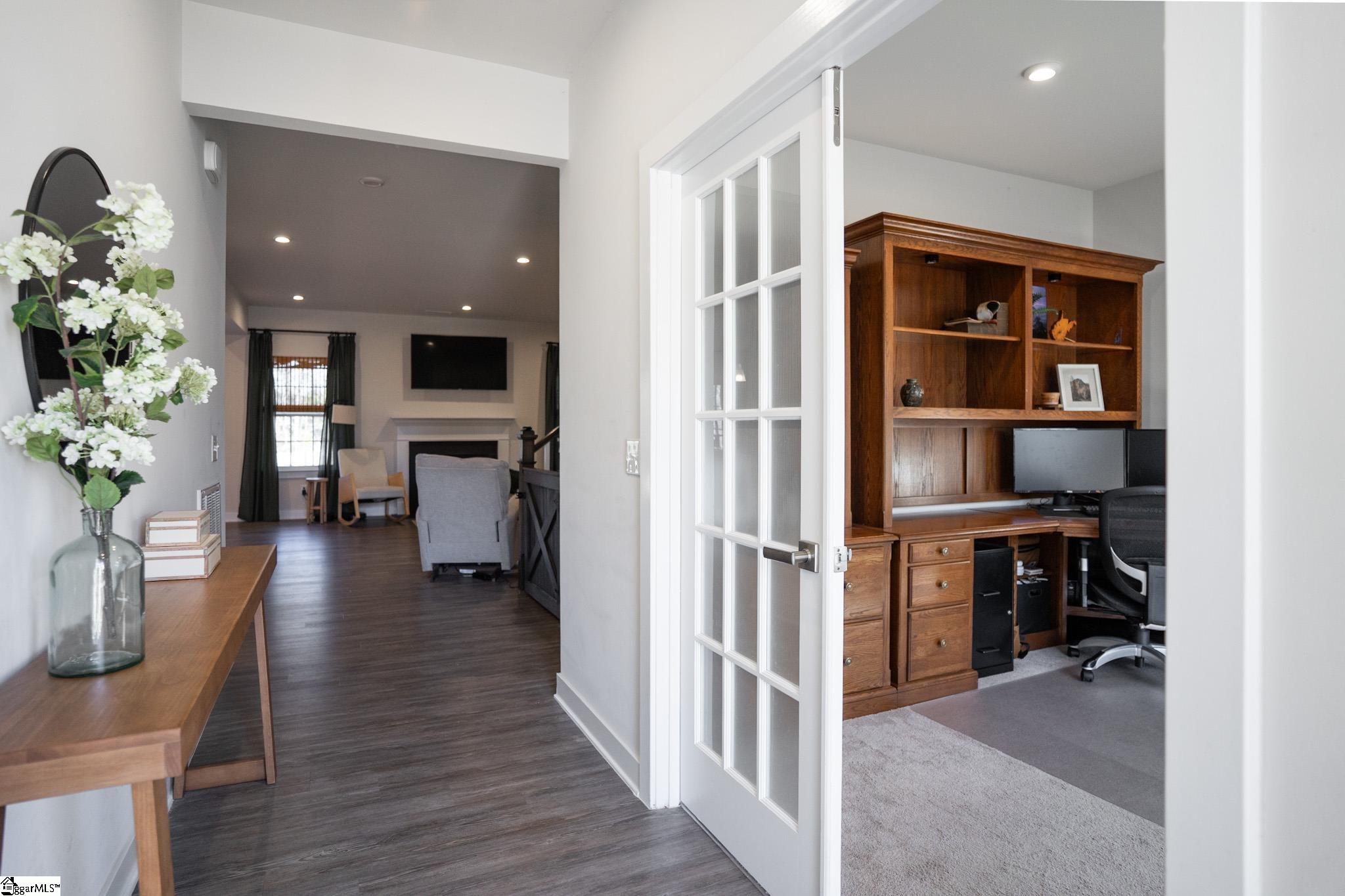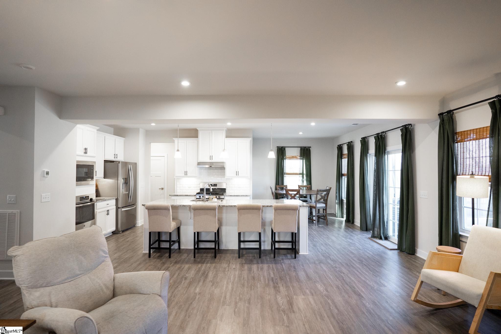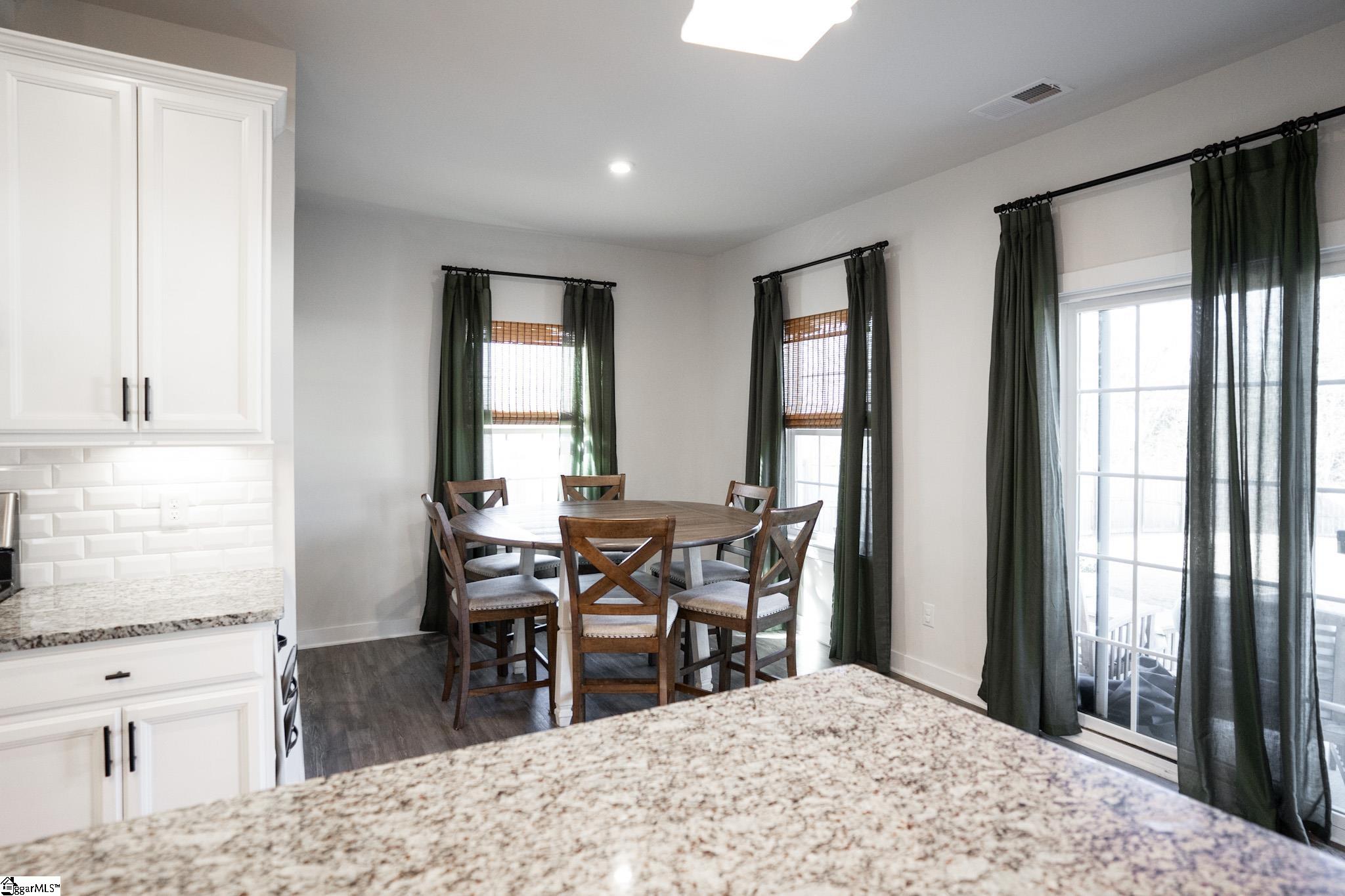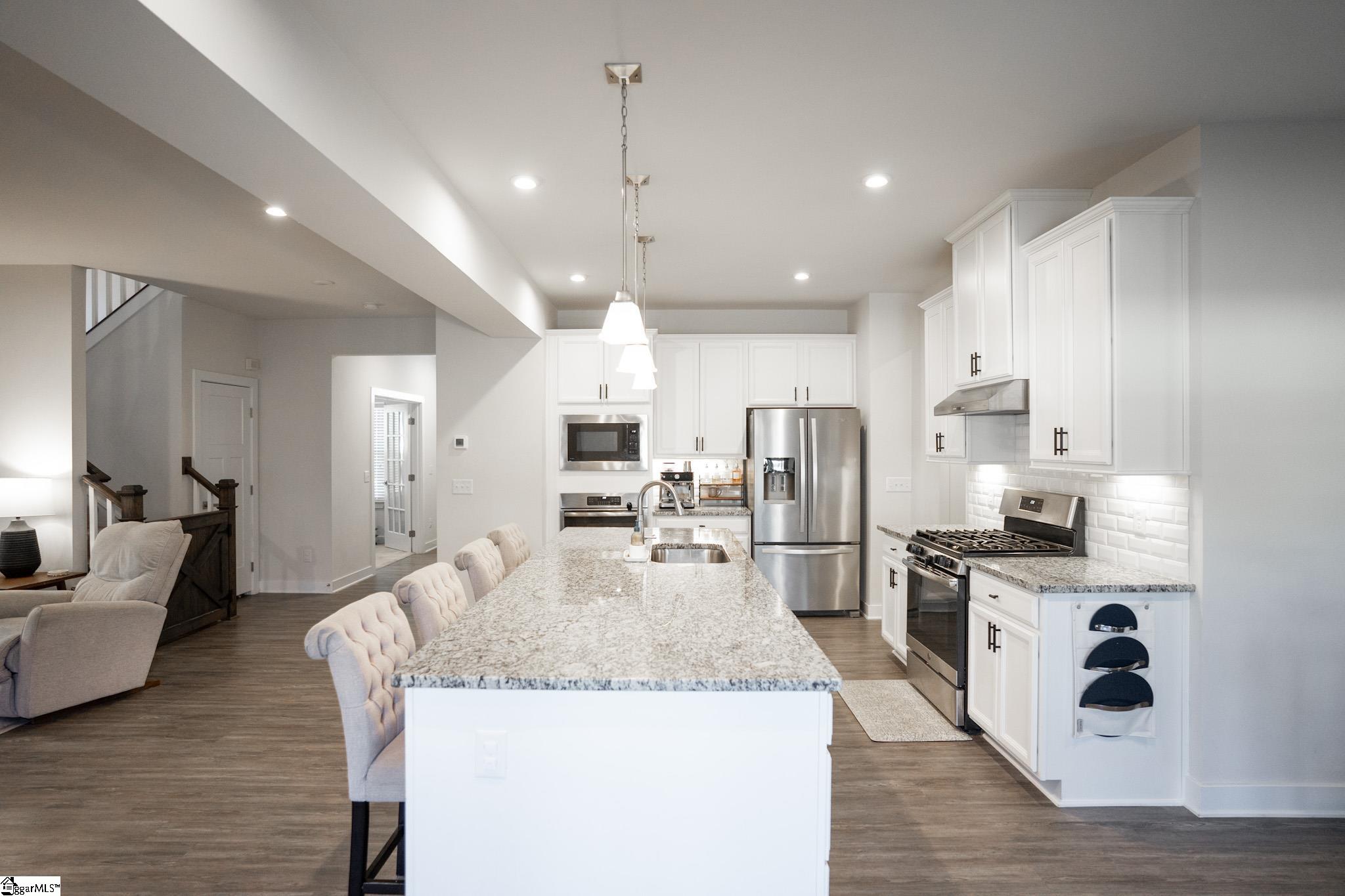 Welcome to your next perfect home! This 4 bedroom, 2. 5 bath property has everything you're looking for! The open-concept living area has beautiful LVP floors and six large windows that flood the space with natural light. The gas fireplace is the perfect addition to anchor the large open space. Dividing the living room from the kitchen is a fantastic kitchen island with ample bar top seating! The kitchen also features stainless steel appliances, granite countertops, a dining area just steps away from the main cooking area, and 2 separate ovens for your cooking pleasure! Also downstairs is an updated half bath, 2 storage closets, a custom-built pantry, room for a drop-zone area, and a french-doored flex room perfect for a private office or bonus room. Finishing off the downstairs is a sliding glass exterior door with a built-in screen, leading out to the large privacy-fenced backyard. Upstairs holds all 4 bedrooms and both full bathrooms. Best of all is the primary suite that includes a huge 14x20 bedroom with enough room for a seating area, an ensuite bathroom with a double vanity and a private water closet, and a massive walk-in closet with custom built-in organization. The laundry room sits right outside the primary suite for ease of access. It also provides an incredible amount of storage opportunity. The 3 additional bedrooms upstairs are off the main corridor, and share a full bathroom. Seated on a quarter-acre lot, this home is conveniently located in a friendly neighborhood near schools, shopping, and parks, and only 15 minutes from downtown Greenville! Don’t miss the opportunity to make this well maintained house your forever home!