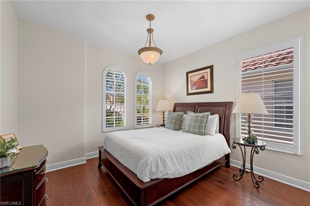 Experience refined Southwest Florida living at 9127 Astonia Way, a beautifully maintained Toll Brothers San Rio model, offering one of the most impressive lake views in The Reserve at Estero. Positioned on a premium homesite with southern rear exposure, the home captures expansive water views and exceptional natural light throughout the day. Notable upgrades include: impact-resistant windows, a new roof (2021), new A/C (2022), new pool pump (2019), new gas pool heater (2026), and new water heater (2019), offering comfort and peace of mind. Furnishings are negotiable for a potential turnkey purchase. The open-concept floor plan features high ceilings, vaulted living spaces, and seamless indoor-outdoor flow. Warm wood flooring runs throughout, creating a beautiful contrast to the light cabinetry and neutral paint palette. A flex room with French doors offers versatility as a home office or bedroom, while formal dining and additional living areas provide comfortable spaces for everyday living and entertaining. The island kitchen is well-appointed with upgraded cabinetry, granite countertops, tile backsplash, stainless steel appliances, pendant lighting, and a breakfast nook overlooking the lake. The primary suite offers direct lanai access and a well-designed bath with dual walk-in closets, dual vanities, a private water closet, and a fully tiled walk-in shower. The expanded covered lanai—one of the largest outdoor living spaces in The Reserve at Estero—is ideal for entertaining, dining outdoors, or enjoying the peaceful lakefront setting. The home also features natural gas, supporting efficient appliances and pool heating. Ideally located west of I-75 in Flood Zone X, The Reserve at Estero offers guard-gated security, a clubhouse, fitness center, resort-style pool and spa, tennis, pickleball, basketball courts, and an active social calendar—just minutes from Coconut Point, RSW Airport, and Gulf beaches. **Some photos in this listing have been virtually staged to illustrate the potential use and layout of the space. Furnishings and décor shown are for illustrative purposes only and are not included in the sale. **