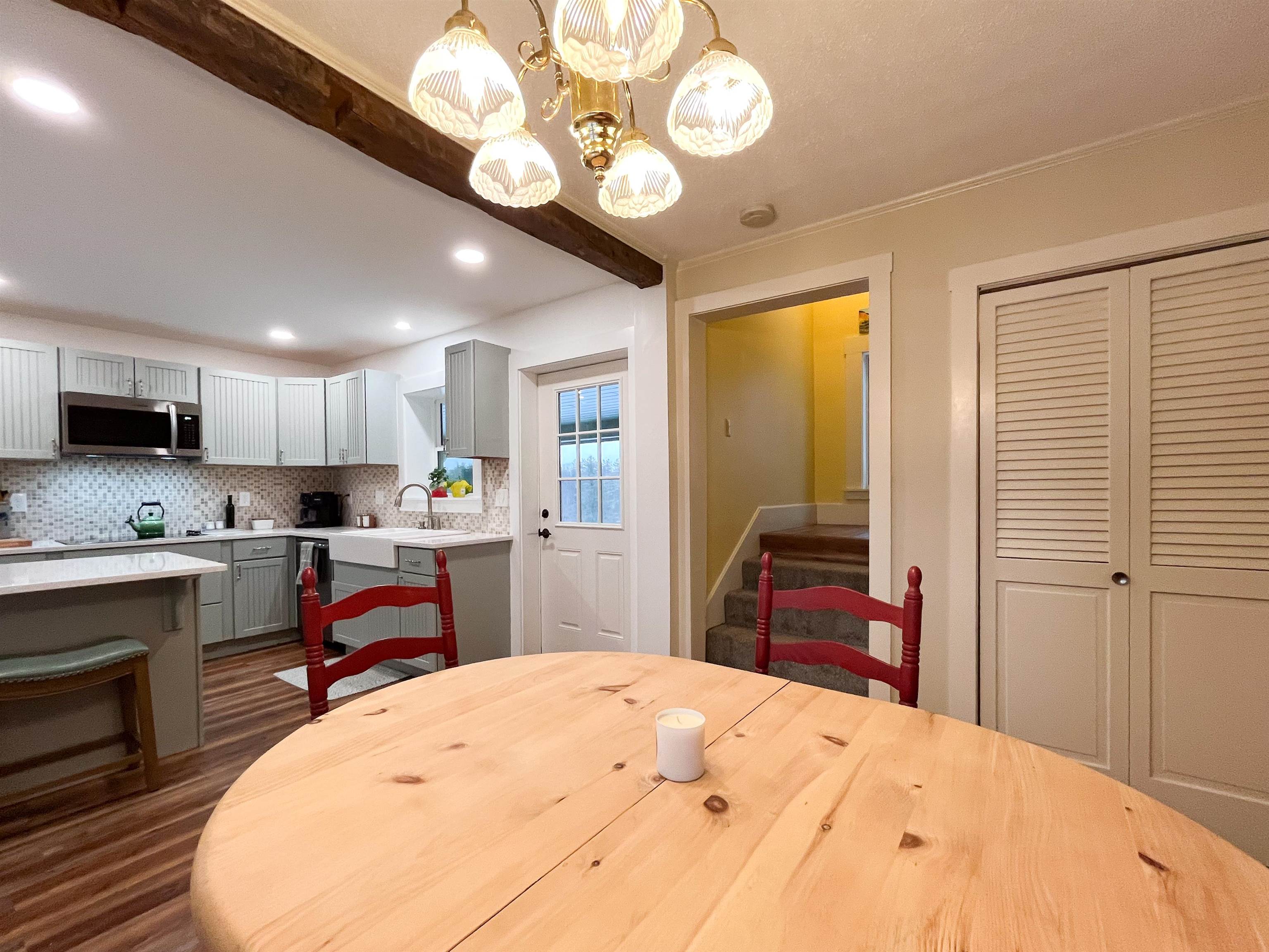 Experience quintessential country living at its finest in this beautifully updated 3-bedroom, 2-bath New Englander in scenic Landaff, NH, blending timeless character with thoughtful modern upgrades throughout! The newly renovated kitchen is the heart of the home, featuring custom cabinetry, quartz countertops, and an attractive center island with countertop seating, perfect for everyday living and entertaining alike. The home is tastefully accented by warm exposed timbers, a convenient first-floor laundry, and a comfortable layout that flows effortlessly from room to room. The spacious primary bedroom offers classic pine flooring, creating a comfortable and restful retreat at day’s end, and a screened-in porch offers breathtaking sunrises, inviting you to enjoy the surrounding countryside through the seasons! Additional highlights include an attached garage with a finished 2nd floor, ideal for a home office, studio, or guest space, and the basement has been updated with a new 200-amp electric panel and hybrid hot water heater, offering peace of mind and improved efficiency. Located just 15 minutes from major retail and only 25 minutes to world-class skiing at Cannon Mtn, this home offers the perfect balance of tranquility and everyday convenience. Bordered by the White Mtn National Forest, Landaff also offers school choice for high school students! Here is a great opportunity to own a character-filled New England home in one of the North Country’s most scenic communities.
