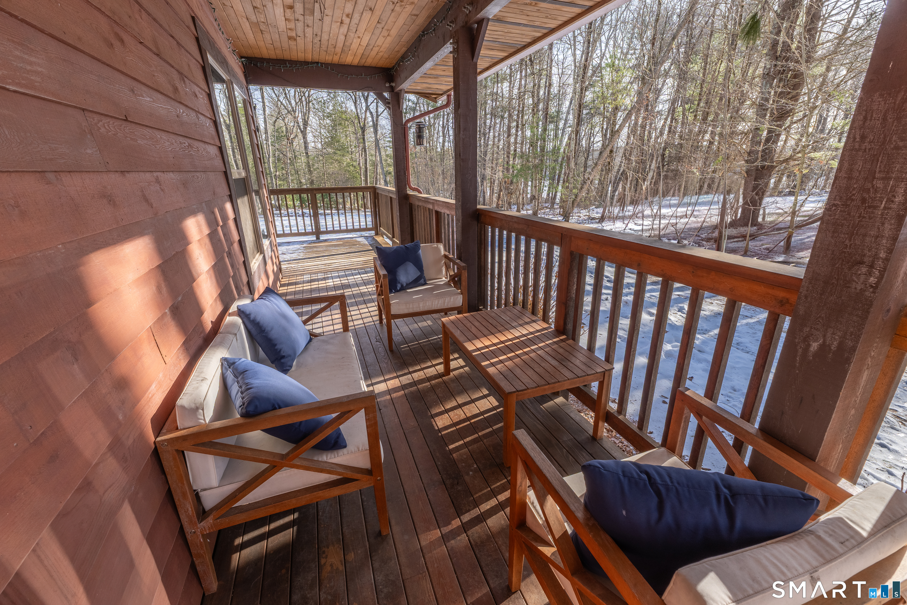 **Offer Deadline - Seller asking for all highest and best offers by Tue. Jan. 6th by Noon. Enjoy lake views and coveted lake community rights from this beautifully updated home set on just under an acre of land. The open-concept main level features a sun-filled living room and kitchen with soaring cathedral ceilings, granite countertops, stainless steel appliances. The spacious primary suite offers a walk-in closet and a private full bath with double sinks. No matter the season enjoy central air and a cozy pellet stove-perfect for year-round comfort. Hardwood floors flow throughout the home, complemented by large windows that invite in natural light and showcase scenic surroundings. An additional main-floor room with washer and dryer hookups, currently used as a third bedroom, provides flexible living options. The finished lower level features radiant floor heating, adding valuable living space and warmth. Step outside to a stunning wrap-around cedar porch looking out towards the lake, ideal for relaxing or entertaining. Set yourself up to reap all the benefits of this versatile home that's just a short walk from the beach on Bungee Lake! The lake community enjoys a private beach area and boat ramp. A great place to appreciate doing all the things you love, whether it's boating, swimming, walking, or fishing on this fully recreational lake. A rare opportunity to enjoy lake living with modern updates in a desirable Connecticut lake community. Lake Bungee does not have a HOA but does have a private lake tax district ;(total $1033/year) in addition to typical property taxes. Lake Tax Allows access to lake, private beach and community area. The community beach and boat ramp driveway is located across from the Oak Dr entrance next to 28 Laurel Hill Dr. with another private beach right off of Beaver Dam Rd. Lake Tax also covers road maintenance and plowing. Lake Association does require that the septics are pumped every 3 years. Last septic pump and inspection was July 2025. Additional info can be found at lakebunggee. org. Contingent on the seller closing same day on the purchase of a house already under agreement and past home inspection.