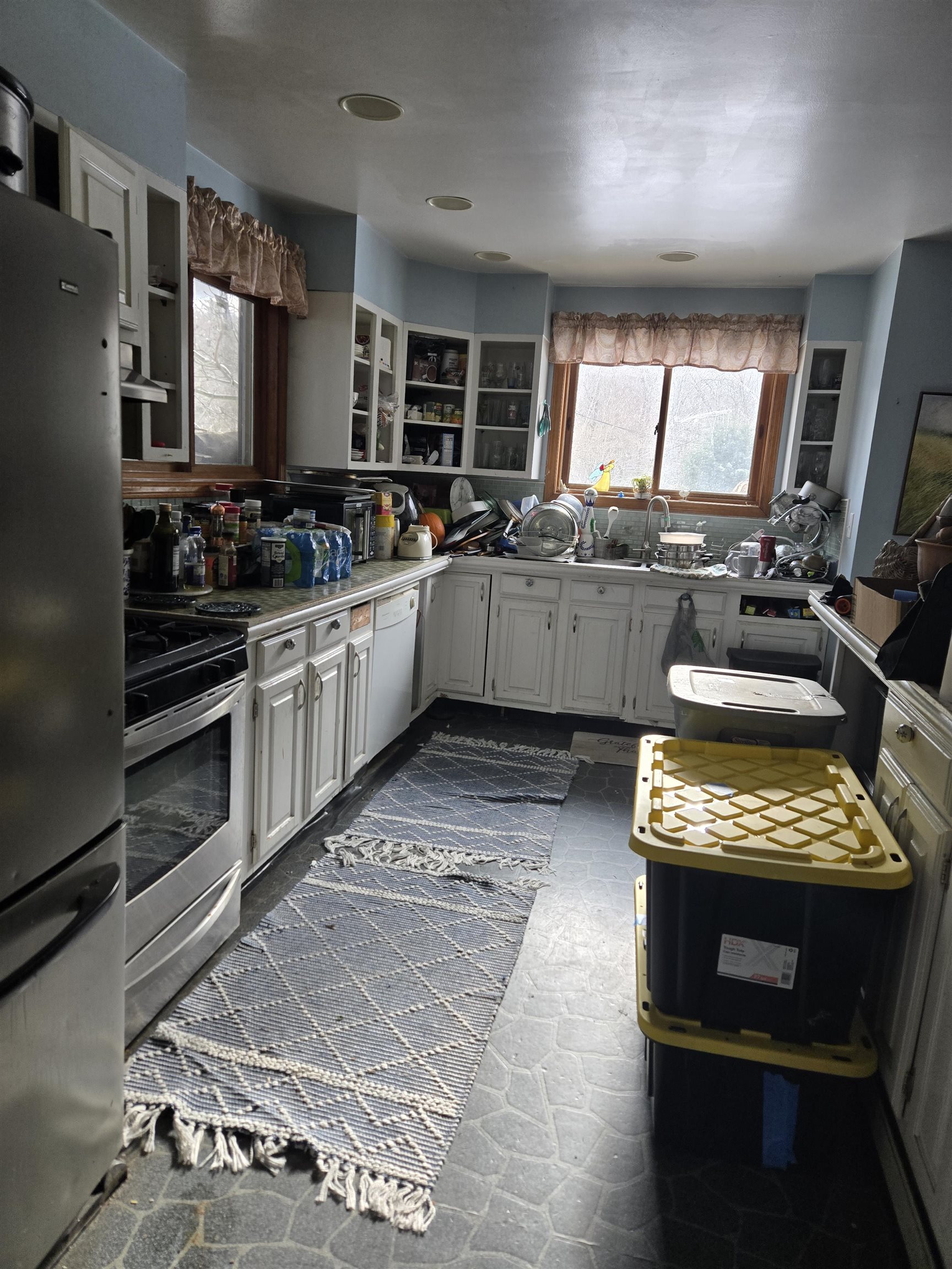 Looking for a great investment project? This is a stylish home with great bones. There's a spacious mudroom/breezeway that connects the oversized 3 car garage, with huge loft. Very large eat-in kitchen abuts a pass thru dining room featuring a sliding glass door to the back yard and wood stove. The great room/living room is the full width of the house with elegant built-ins. The garage loft has a number of possibilities with access from inside the garage and an from exterior stairs, plenty of windows and over 700 sq ft of space. And the yard! There's a gazebo beside the brook on the lower level, a pond that could be brought back to life. Did I mention the fairy garden!! This home has only a wood stove for heat, so financing may be difficult. There is a FHW system in place but the boiler needs replacement. It is priced to reflect the deferred maintenance and perfect for a flip or a DIYer looking for a big sweat equity gain.
