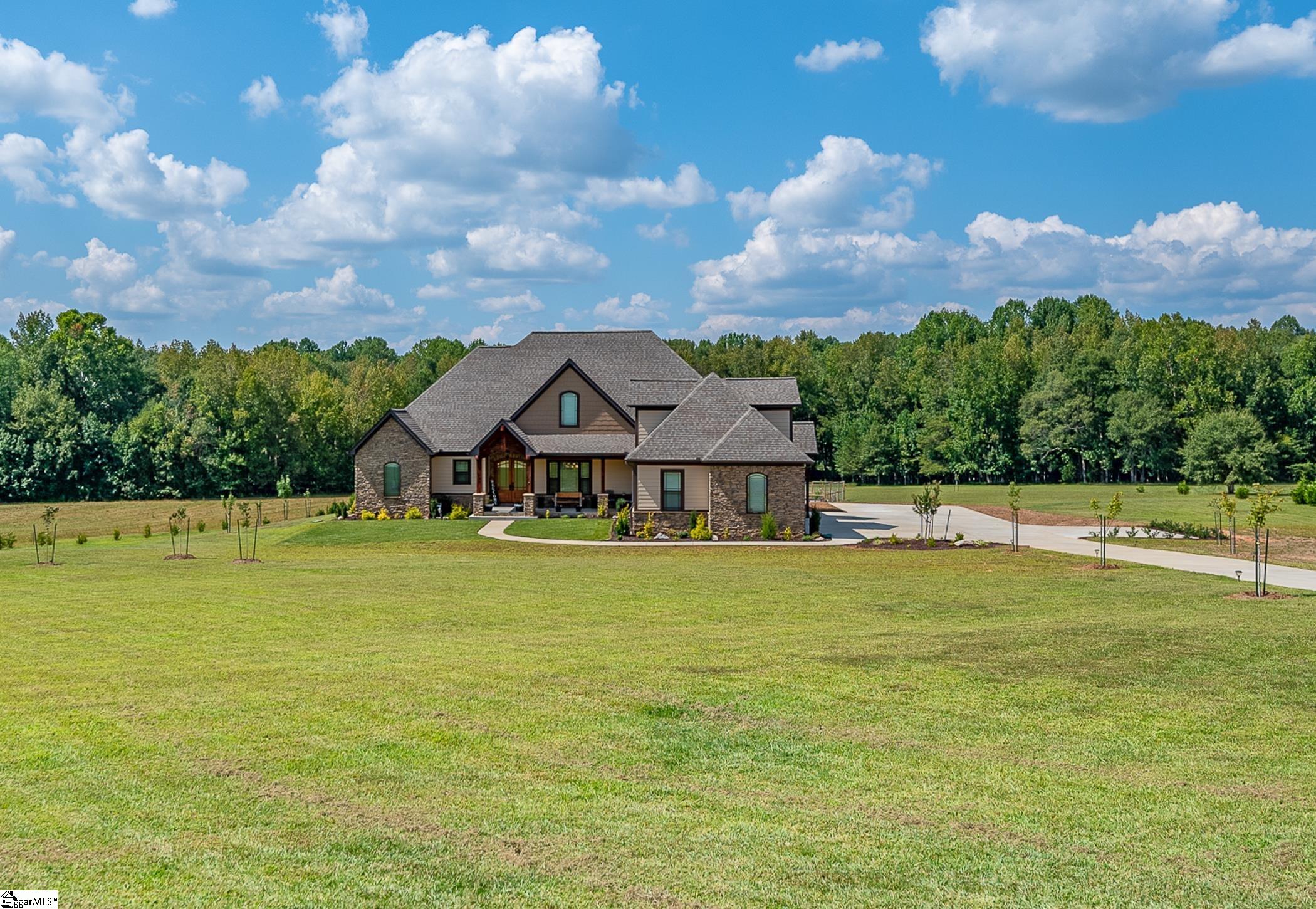 Welcome to your own private sanctuary! This custom 5-bedroom 3. 5 bath is located on a quiet one street cul-de-sac. The 15-acre property is approximately half pasture and half woods with large hardwood trees and a peaceful creek along the back of the property. Horses are welcome! The property is suited for agricultural use, outdoor recreation, or simply enjoying the natural setting. A tree lined driveway leads to the large welcoming front porch. Step through the arched double door entry revealing an open and inviting layout. The large living area has a coffered ceiling and a raised hearth stone fireplace. The kitchen boasts an oversized island, double ovens, large walk-in pantry, under cabinet lighting, coffee bar, crown molding, and a cook top accented with a beautiful stonework. The Primary bedroom has separate his/her walk-in closets. The Primary bath has a walk-in shower and a heated jacuzzi tub. Upstairs is the 5th bedroom or Flex Room with kitchenette, full bath, and walk-in closet. You feel safe during storms in the lower level Bunker/Storage. Watch the deer from the oversized covered patio with a wood burning fireplace and TV. Whether you are looking for a farm, horse property, or simply a private retreat with room to roam, this home has it all. Also included are 2-50 Amp outlets. The 1st is in the garage, which can be used for E/V hookup or a Welder. The 2nd is on the outside of the home and is great for connecting your RV. Experience the perfect combination of privacy and versatility-just minutes away from town, yet a world away from the everyday.