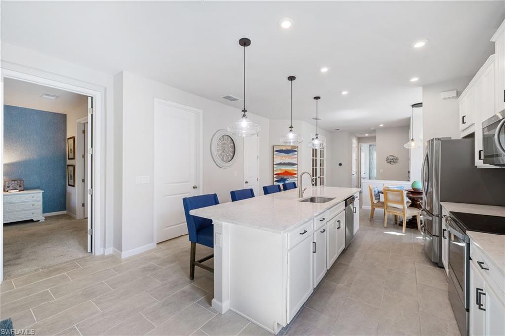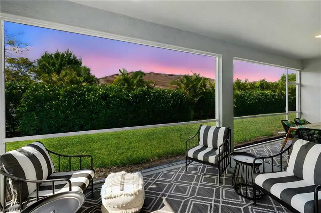 Welcome to your oasis at this bright end unit in Naples, FL! This charming home features 2 bedrooms and a versatile den/flex space, 2 full baths, along with the largest lanai floor plan in the community. With a two-car garage and a private patio, comfort is at your fingertips. Enjoy modern lighting and stationary draperies in the living area, complemented by a large island in the kitchen. Ideally located, you're less than a mile from the National Pickle Ball center, near the Botanical Gardens, and just less than 10 minutes from 5th Avenue and pristine white sandy beaches. Community amenities include a resort style pool and hot tub, gym, and dog park. This ground-floor gem nor the community has never been flooded. Embrace the comfort and convenience of this exceptional home!