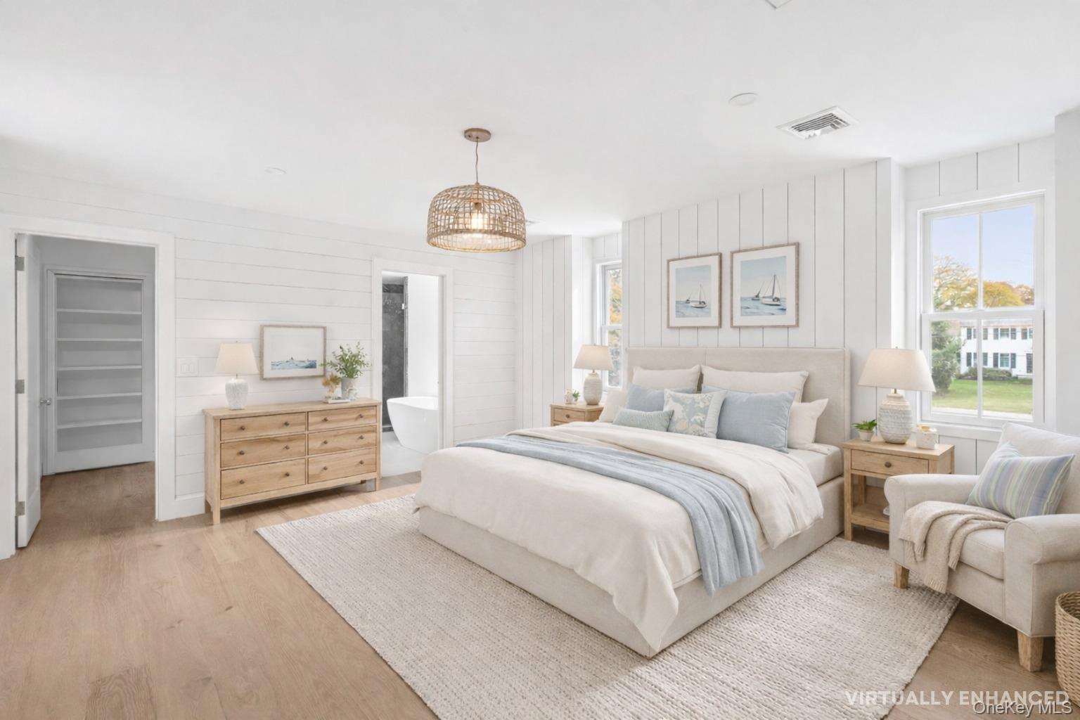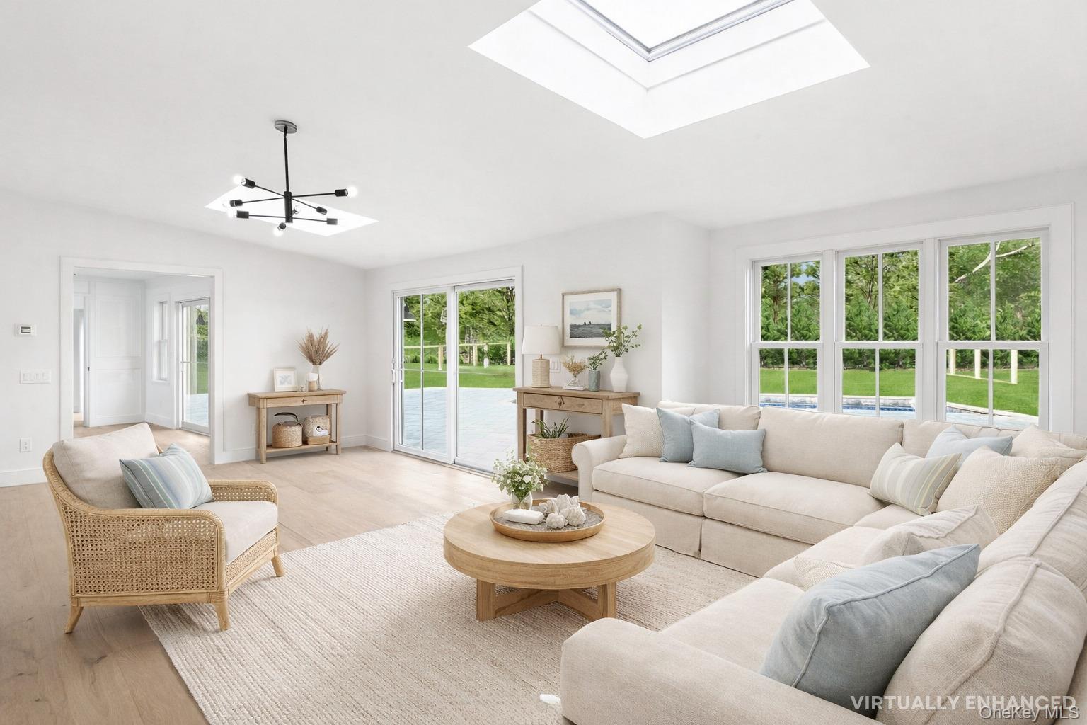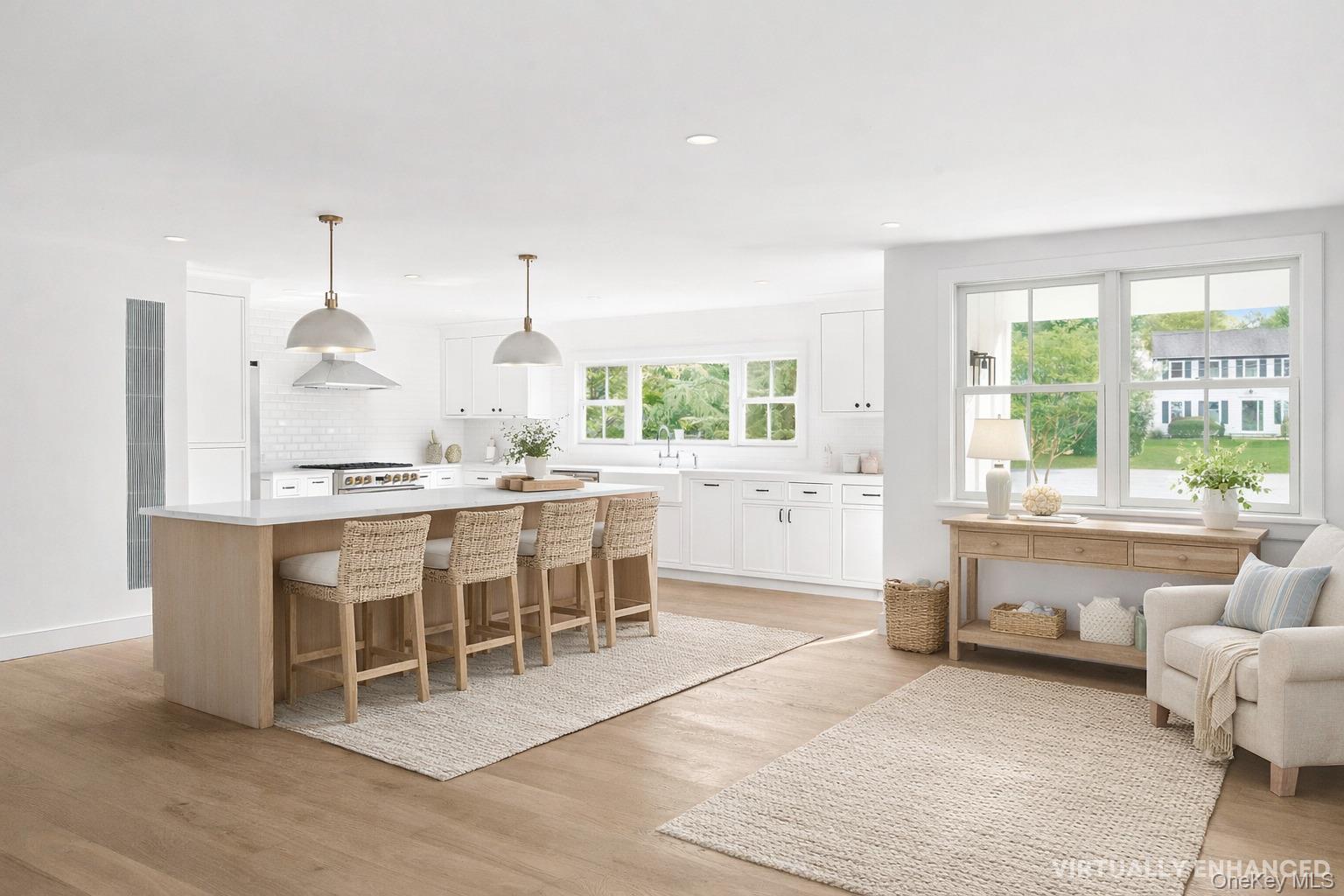 A Modern Coastal Farmhouse Reimagined for Refined Living Tucked away on a quiet cul-de-sac lane, JUST COMPLETED, this six-bedroom, four-and-a-half-bath modern farmhouse has been beautifully reimagined and completely renovated, blending classic coastal charm with contemporary sophistication. Set on just shy of an acre, the home offers approximately 4, 300 square feet of light-filled living space designed for effortless entertaining and relaxed luxury. Inside, 7. 5-inch engineered oak flooring flows throughout open, sunlit spaces. The heart of the home is a stunning chef's kitchen featuring a custom rift oak island, custom cabinetry, Quartz countertops, and a butler's pantry, all complemented by premium GE Monogram appliances, including a gas range, dual dishwashers, refrigerator, and a Frigidaire microwave. Additional amenities include, a butler's pantry, laundry room and a beautifully crafted den with custom built-ins and barn door. Each of the six bedrooms is spacious and inviting, offering privacy and timeless finishes. Outdoors, bluestone patios create multiple areas for dining, lounging, and entertaining. A heated saltwater pool serves as the centerpiece of the landscaped backyard, a private oasis perfect for summer gatherings. Blending warmth, craftsmanship, and modern design, this exceptional property captures the essence of Hamptons-inspired living, a peaceful retreat designed for today's lifestyle.