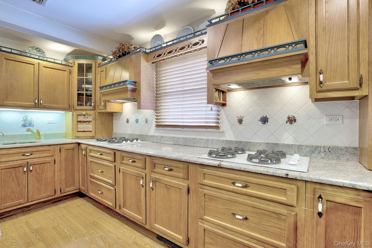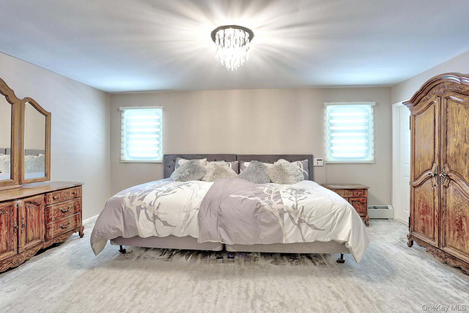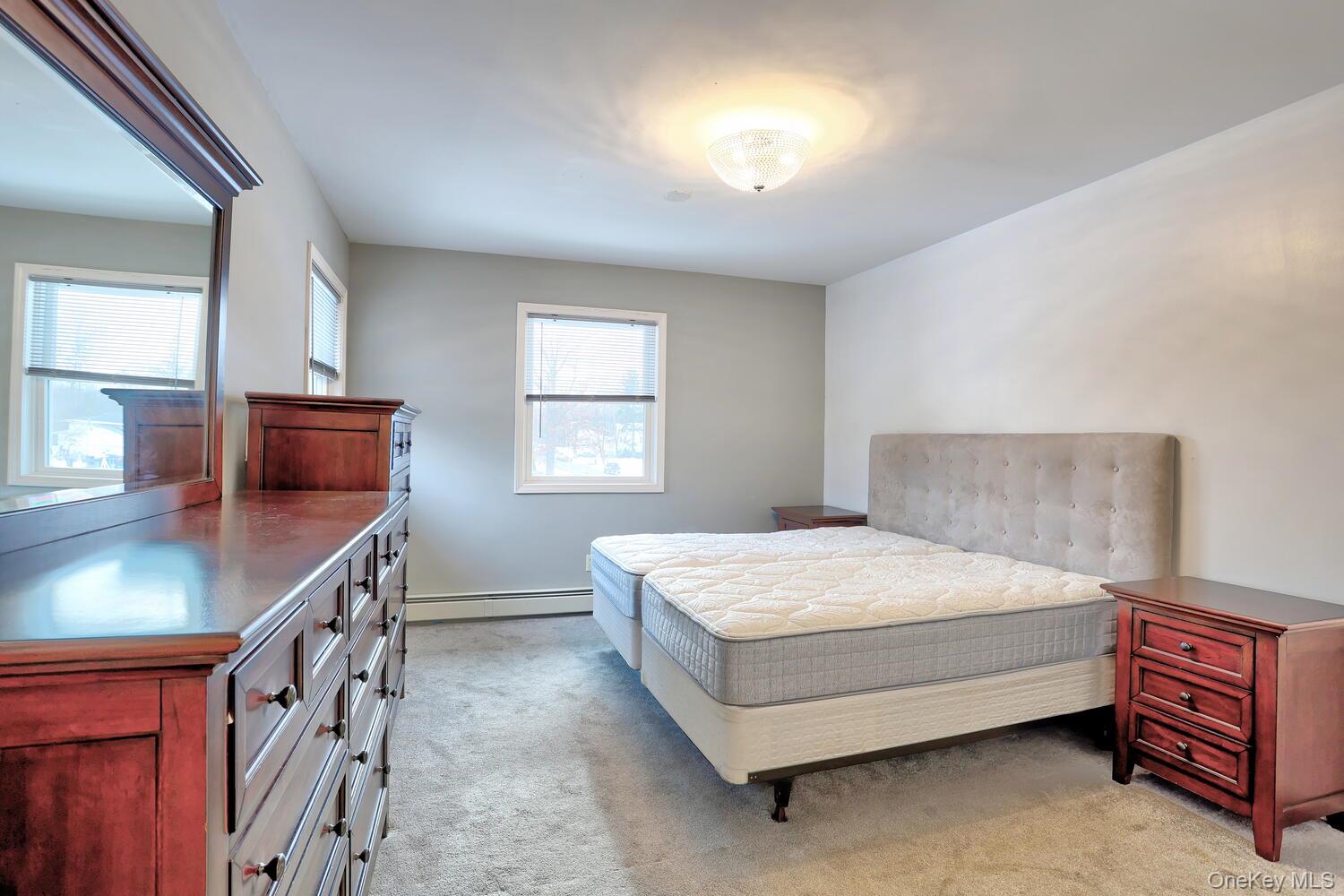Large extended splanch/colonial home with 8 bedrooms and 4. 5 baths, set against the Ramapo Mountains. Main residence features dramatic entry with cathedral ceilings, hardwood oak flooring, skylight, closets, tall pillars and French doors. There is a music room and large dining room with washing sink. The oak country kitchen comes with two sinks, two dishwashers, two ovens, and two refrigerators. Spacious breakfast room with gas burning fireplace overlooks patio and beautifully landscaped, private backyard with zip line. Holiday kitchen. Side entrance with closets and cubbies leads to a two-bedroom guest suite. Oversized two-car garage with automatic openers. An upstairs extended family apartment offers two bedrooms, bathroom, kitchen, living area, abundant storage, private access, and interior electric chairlift. Additional amenities include 3 split A/C units, 3 A/C compressors, Crown boilers, alarm system, outdoor sprinkler system, garden arbor, specimen plantings, and tranquil outdoor seating areas. This house has everything you need to relax or entertain in comfort.