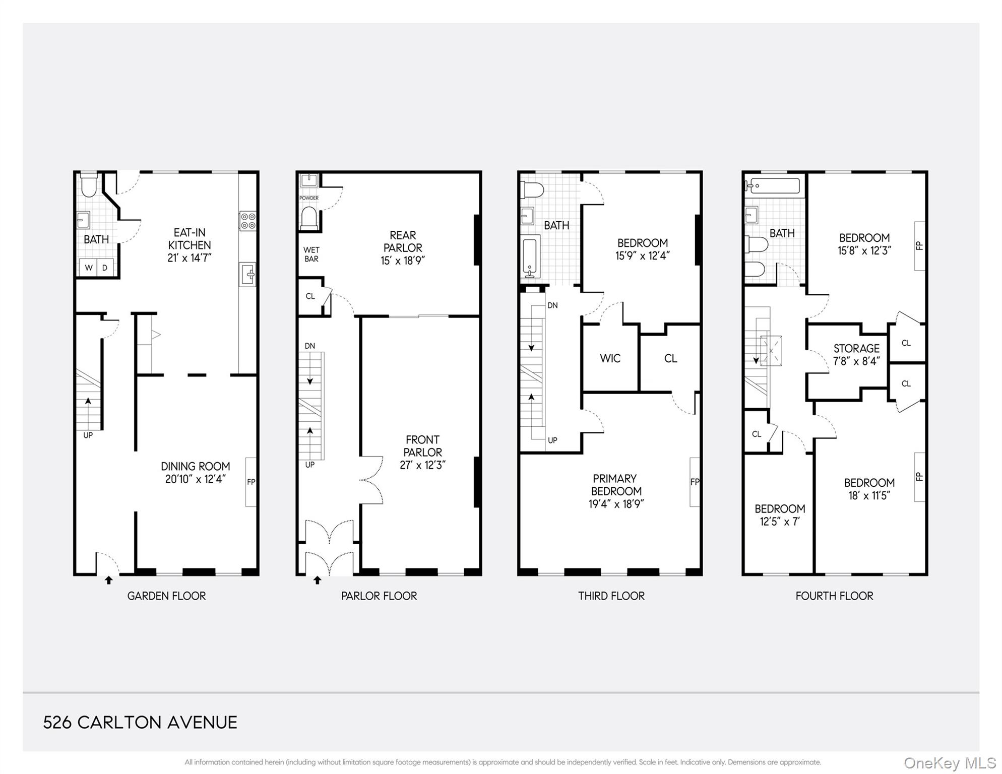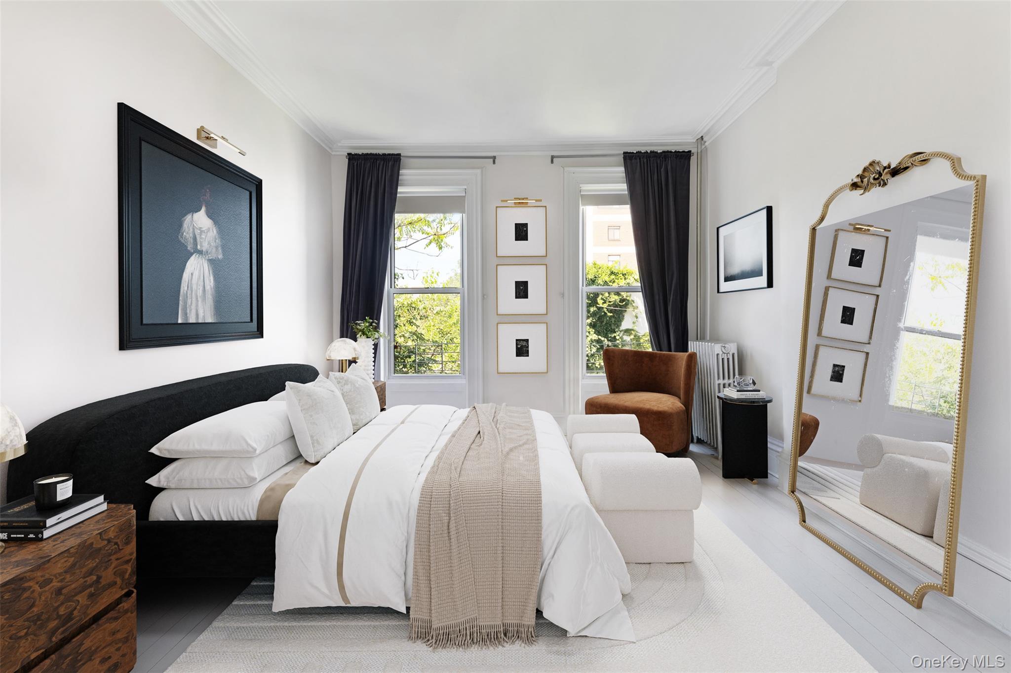 526 CARLTON AVE is a beautifully preserved 5 bedroom, 2 full, 2 half bath, 3600 sf limestone townhouse build in 1877, Landmarks Preservation, said best preserved house on the block. Original 19th century details-including high ceilings with plaster medallions, , wainscoted window casings with original shutters, marble mantels, pocket doors, carved banisters-blend with modern upgrades such as a 2 zone central AC system, nest thermostats, heat from original steam radiators, updated mechanicalsl, LED lights throughout, new boiler and flue, one wood burning fireplace with 3 more that can be opened. The garden level offers a chefs kitchen, leading to the garden for al fresco dining with Thermador appliances, marble countertops and space for a large kitchen island with seating and a second dishwasher. This level also includes a spacious dining room, a half bath and laundry. The Parlor Floor, original details features 2 sets of grand double parlor doors, a wood burning fireplace, wainscoted window wells, original plaster medallions, original shutters, a half bath and area plumbed for a wet bar The 3/4 floors boast 4 oversized bedrooms, all of which can accommodate king sized beds There are 3 walk-in California Closets, and two full baths- one featuring a deep soaking tub and bidet. Every floor spans 900sf. There is 400sf of additional FAR to be used as desired.