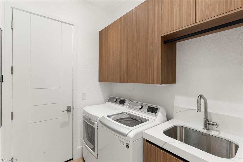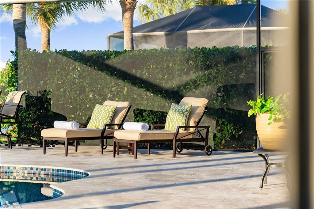 A one-of-a-kind retreat within Mustang Island, a private gated enclave in Lely Resort where refined design meets effortless Florida living. This completely reimagined and renovated smart home offers an ideal blend of sophistication and comfort for those seeking a resort-style lifestyle. Set on a private lakefront homesite surrounded by mature trees and palms, the three-bedroom-plus-den, two-bath residence features a spacious open-concept layout that transitions seamlessly from indoor living to extraordinary outdoor entertaining. The newly renovated kitchen showcases high-end appliances, including a Sub-Zero refrigerator, Wolf wall oven with a second stacked microwave/convection oven, 36-inch induction cooktop, premium quartz surfaces and sleek custom cabinetry. The primary suite offers panoramic lake and golf course views, a custom oversized walk-in closet, and a beautifully appointed spacious bath. Outdoors, the extended screened lanai overlooks wide water and golf course vistas and includes a heated saltwater pool and spa, refinished with tiled stone decking and tongue-and-groove hardwood ceilings over expansive covered lanai. Ideal for entertaining or quiet relaxation, this private retreat captures Naples signature sunset views. Recent upgrades provide peace of mind, including a new roof and gutters, impact-resistant windows and doors, electric rolldown storm shutters securing the covered lanai, new lanai cage and screening, refinished pool and spa, upgraded HVAC, water heater and pool equipment, 8-foot solid core interior doors, insulated interior walls and new laundry appliances. Immediate membership to The Player’s Club and Spa is included, offering access to three resort-style pools, tennis and bocce courts, a wellness center, dining venues and a full-service spa. Membership opportunities are also available at The Classics Golf Club, home to three championship courses. Minutes from downtown Naples and Marco Island, this home delivers the ultimate blend of luxury, privacy and resort living in one of Southwest Florida’s desirable communities.