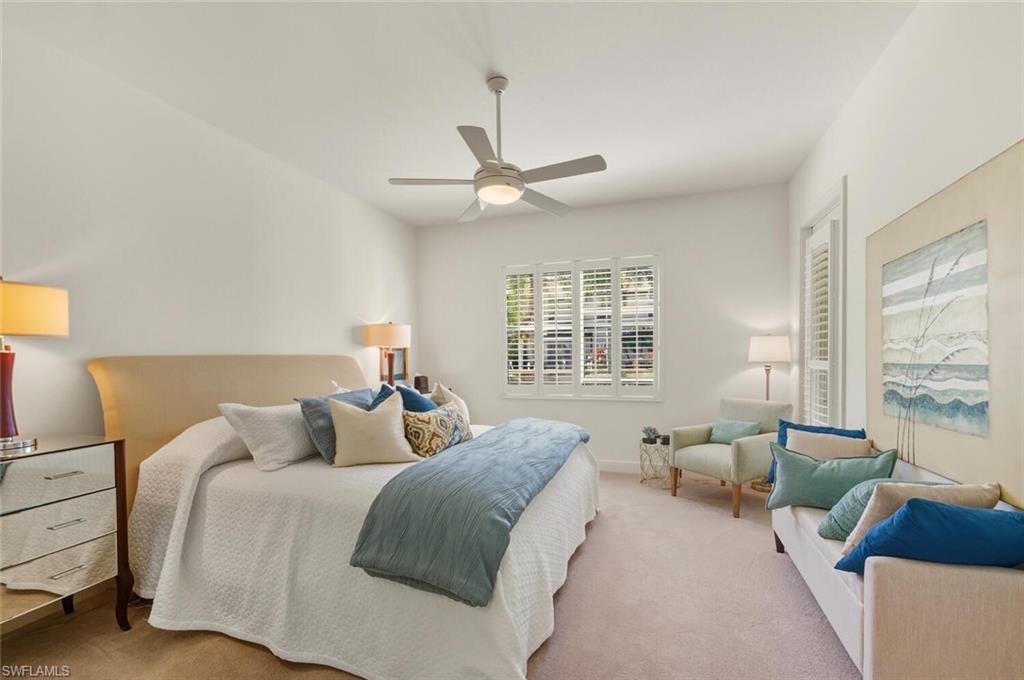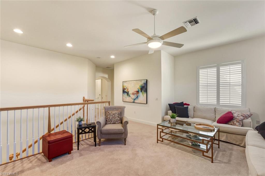 Welcome to Montelena at The Vineyards — luxury living in the heart of Naples. This beautifully appointed, tastefully designed enclave features only 33 private residences. This HOME is pristine 3, 000 sq. ft. , two floor attached VILLA with four bedrooms -including TWO PRIMARY EN-SUITES - one upstairs and one on the ground floor, both with spacious walk-in closets- a spacious LOFT, 3. 5 baths, and an attached two-car garage. The home has HIGH IMPACT WINDOWS and Manual Shutters for the Lanai Sliders.