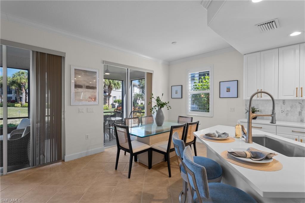 LIVE A VACATION LIFESTYLE IN THE QUARRY! This BETTER THAN NEW first floor end unit coach home features 2 Bedrooms plus Den, 2 Baths, and attached 2 car garage and is situated overlooking the 18th fairway & lake and is just steps away from both clubhouses. Recently renovated from top to bottom, this spacious condo offers a great room style floorplan with two sets of sliding glass doors to the lanai where one can watch the boats go by and enjoy the warm Naples weather. A long list of special features include: BRAND NEW quartz countertops in the kitchen, baths, and laundry room including new sinks; BRAND NEW kitchen tile backsplash; BRAND NEW plantation shutters on all windows; BRAND NEW ceilings fans & bath lighting throughout; FRESHLY PAINTED interior/garage walls and cabinets including NEW cabinet hardware; NEW AC (2022); NEW Stainless Steel Appliances (2023); two walk in showers with frameless shower enclosure in the Master Bath; diagonal tile & engineered hardwood floors throughout (no carpet); and more! Furniture & decor package available! The Quarry is a unique lakefront community offering something for everyone: Boating, Golf, Tennis, Pickleball, Bocce, Tiki Bar, Restaurant, Pool-Side Food/Drink Service, Fitness/health center, Social Activities, and more! The Quarry offers a lifestyle like no other at the BRAND NEW "Lake Lodge & Beach Club", over 500 acres of navigable lakes (boat slips available for lease), and a private 18 hole Golf Club (social/golf memberships 100% optional).