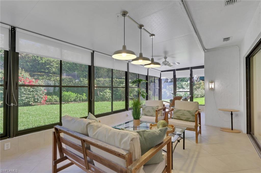 2 Car Garage. Outstanding Floor Open Plan Designed for easy Florida Living, courtyard entry, generously sized rooms, abundance of oversized windows, sliding glass doors, vaulted ceilings in all main living area allows the home to be filled with Florida Sunshine. Oversized lanai which is enclosed with acrylic sliders and screens makes this a very versatile living area. The home has one of the largest backyard areas within the community. Beachwalk is a short stroll to Vanderbilt Beach, Ritz Carlton Beach Resort & Mercato. Located West of 41,