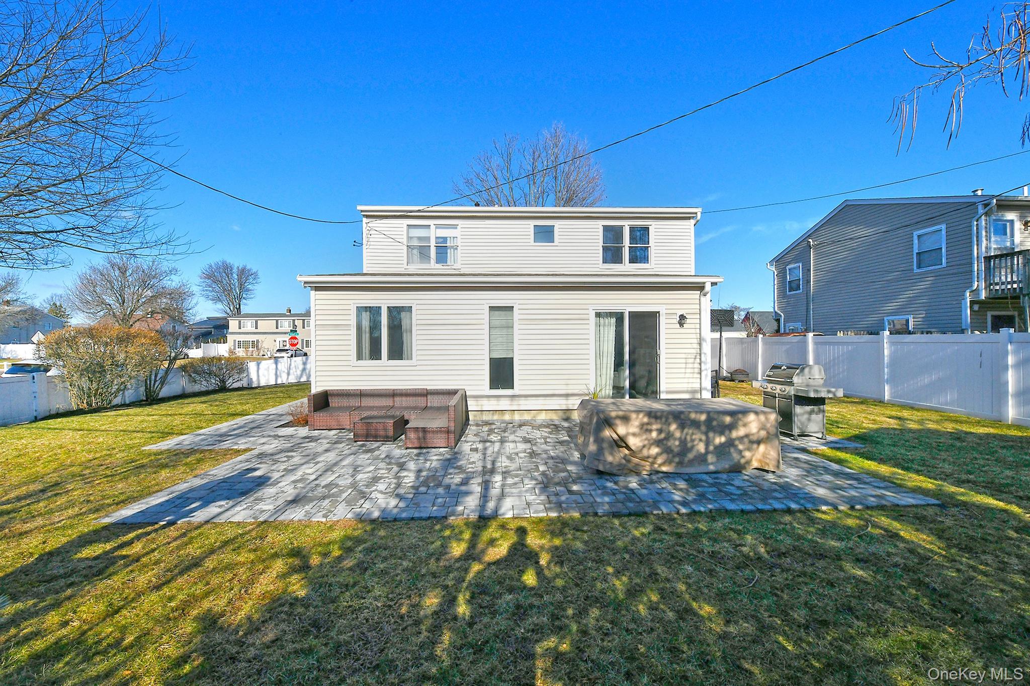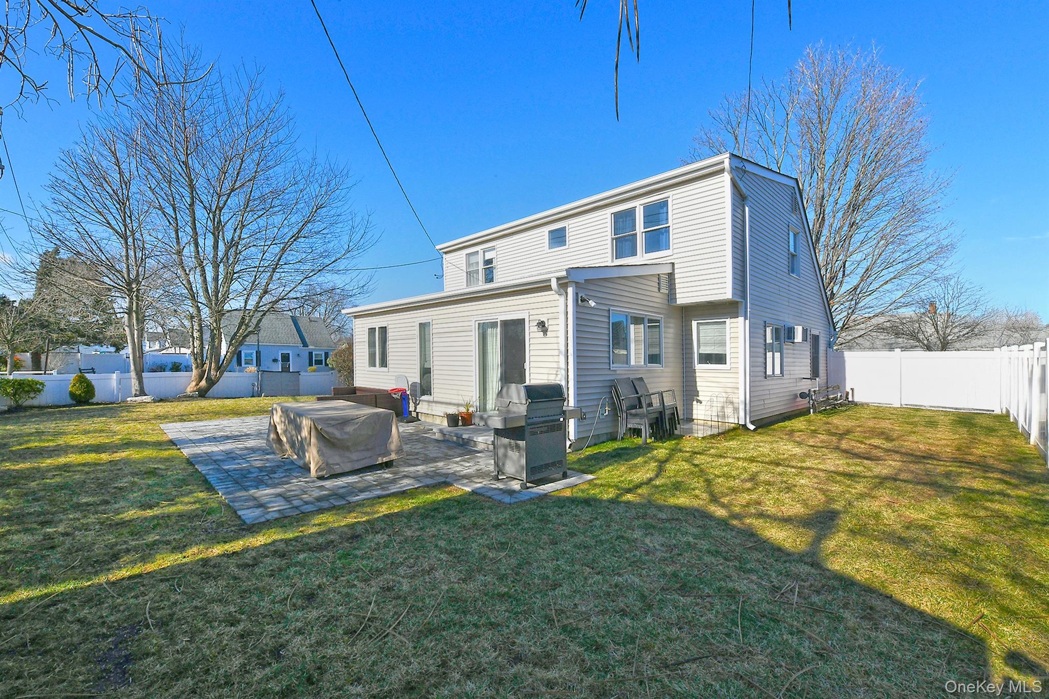 This is the one you have been waiting for—fully updated 4 bedroom, 2 bathroom expanded Cape in Levittown featuring natural gas heating and cooking and a partial basement, offering a rare and very unique 1, 763 square feet open floor plan for the area. The first floor includes a kitchen renovated in 2019 with stainless steel appliances, dishwasher, and gas cooking, a formal dining room with a large window, a living room with wall A/C, a newly built extended den/family room with a large window and sliders to the backyard, a bedroom or home office with a closet and wall A/C, and a full bathroom renovated in 2022 with herringbone tile flooring. The second floor features a rear-dormered large bedroom with two closets, two additional bedrooms each with closets, and a full bathroom renovated in 2020. The home also offers a newly dug-out partial basement with two fully insulated rooms and an egress window. Additional highlights include a gas heating boiler approximately six years old, engineered hardwood and laminate vinyl flooring, crown molding, a roof approximately seven years old, siding, windows, and doors updated about five years ago, a security system, and a private PVC-fenced backyard with a piped-in gas BBQ hookup, a two-year-old patio, and a shed. Low taxes with a tax grievance already submitted!