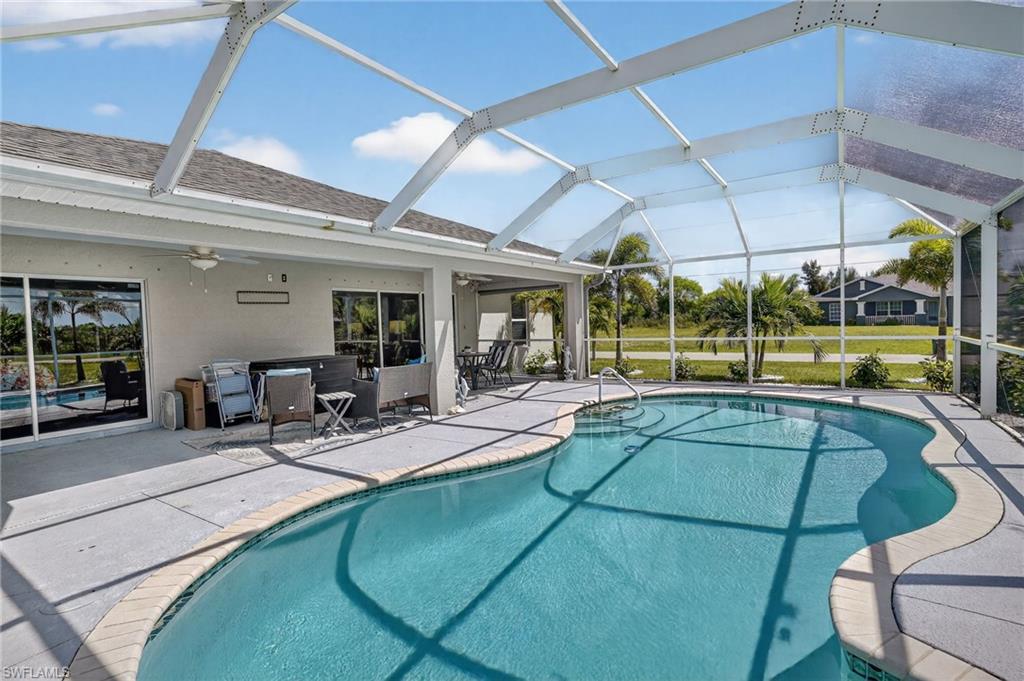 NOT IN A FLOOD ZONE, 2022 ROOF, 2022 AC UNIT, AND A CORNER/OVERSIZED LOT! WHAT MORE CAN YOU ASK FOR? Private Pool Home boasting an open floor plan, 3 bedrooms, 2 full bathrooms, & a 2 car garage in NW Cape Coral. High cathedral ceilings, open sliding glass doors overlooking the pool & landscaping, a truly spacious & airy atmosphere. Step outside and enjoy the extended lanai with newer screens, privacy shades, and a beautiful pool. Nestled in a private area of the NW near Crystal Lake Park and Burnt Store Marina, many fresh water canals around for fishing, kayaking, and outdoor activities and water sports. BOATERS several Saltwater and Freshwater boat launches - live the water lifestyle & keep you boat stored or at home. Don't let this one slip away. . . schedule your private showing today!