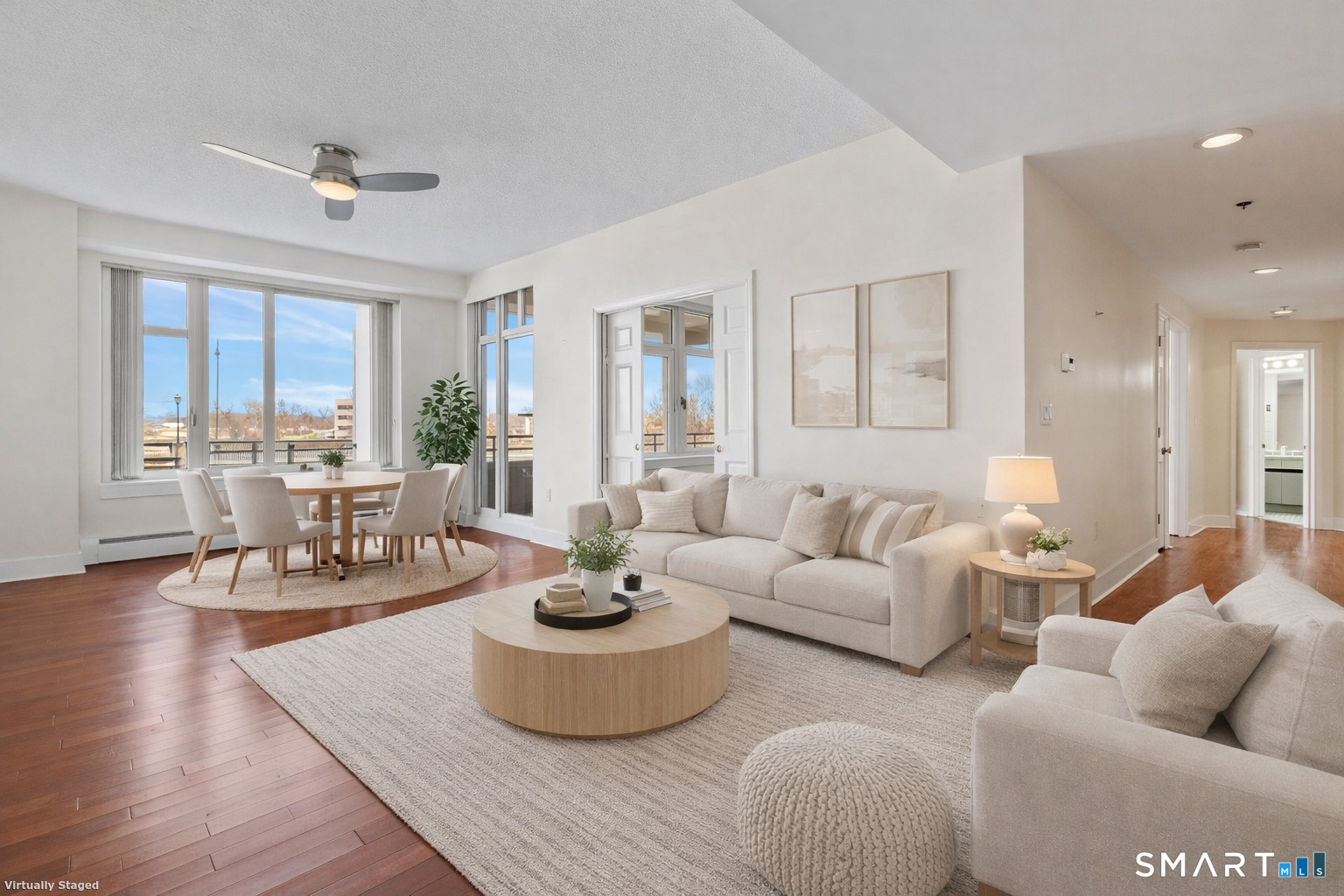 Experience refined riverfront living at Riverpoint, one of Greater Hartford's premier luxury condominium communities. This expansive 3-bedroom, 2-bath residence offers 1, 507 square feet, making it one of the largest units in the building-a rare opportunity for space, comfort, and versatility. Sun-filled and thoughtfully designed, the open-concept layout seamlessly connects the generous living and dining areas, ideal for both everyday living and entertaining. Large windows enhance the airy feel and bring in abundant natural light. The well-appointed kitchen offers ample cabinetry and workspace, perfectly positioned for gatherings or relaxed daily living. The primary suite features an en-suite bath and excellent closet space, while two additional bedrooms provide flexibility for guests, a home office, or den. A second full bathroom adds convenience and privacy, making this layout well-suited for a variety of lifestyles. RiverPoint's exceptional amenities include 24-hour security and concierge service, indoor pool and hot tub, fitness center with sauna and locker rooms, tennis and pickleball courts, conference and ballroom spaces, and an outdoor terrace with grills-all designed to elevate your living experience. Ideally located with quick access to Downtown Hartford, I-84, I-91, Route 2, and Bradley International Airport, this home offers luxury, convenience, and low-maintenance living in a coveted riverfront setting!