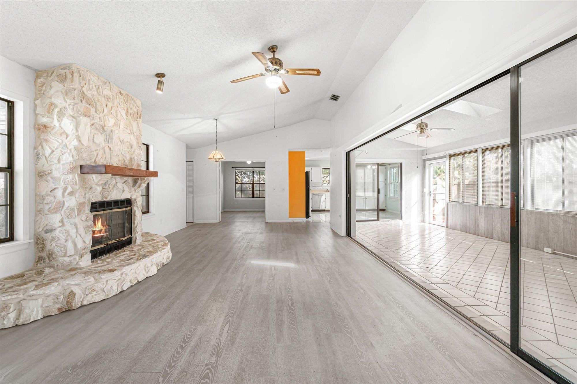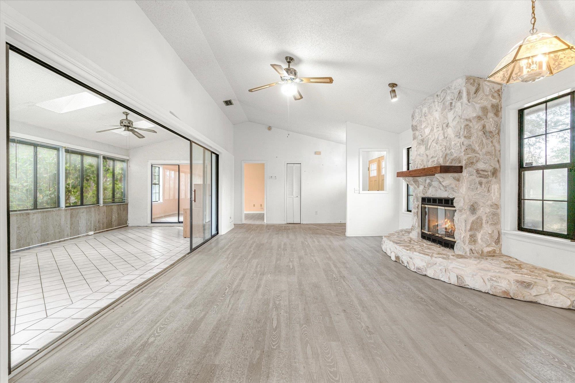 Set beneath a canopy of trees at the entrance of St. Augustine Shores, this three bedroom, two bath, single-story home presents a prime renovation opportunity in a well-established community. With a new 2025 roof, full re-plumb and a history of consistent maintenance, the foundation is in place for a thoughtful transformation. Vaulted ceilings, a stone wood-burning fireplace, oversized bedrooms, multiple skylights, a large kitchen, enclosed patio, and fenced backyard offer a flexible footprint ready for reimagining. The two-car garage and attic storage provide functional utility. St. Augustine Shores is known for its preserved natural setting, Intracoastal Waterway access, parks, walking and biking paths, golf, and resort-style amenities (membership required), along with highly regarded St. Johns County schools located within & near the community. This is an ideal project for buyers seeking to add value while enjoying a strong neighborhood and lifestyle-driven location.