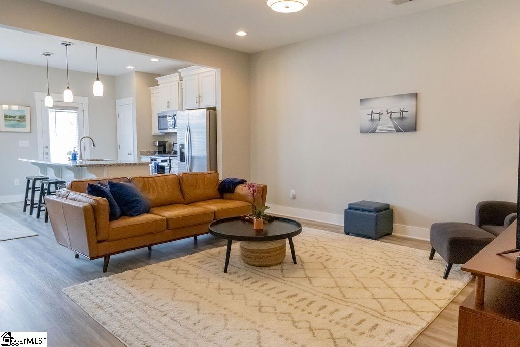 Welcome to 112 Addington Lane in Simpsonville’s sought-after Lakeview Chase Townes! This beautifully maintained END-UNIT townhome is the lowest-priced end unit in the neighborhood, offering exceptional value with 3 bedrooms, 2. 5 baths, an attached one-car garage, and a two-car parking pad AND THE REFRIGERTAOR AND NEW WASHER AND DRYER ARE INCLUDED IN THE SALE! The open-concept main level features luxury vinyl plank flooring, a spacious living area, and a modern kitchen complete with stainless steel appliances, a gas range, island, and pantry. The entire home has been freshly painted and updated with new plush carpet in the bedrooms, hallway, and stairway. A new white vinyl privacy fence enhances the backyard, creating a perfect outdoor retreat. Brand-new washer and dryer convey with the home, and the owner is willing to sell all interior furnishings, making this a truly move-in-ready opportunity. Upstairs, enjoy a generous primary suite with a walk-in closet and double vanity, along with two additional bedrooms and a conveniently located laundry room. As an end unit, the home offers added privacy with a grassy common area beside it and low-maintenance living, as the HOA covers exterior maintenance and lawn care. Ideally located just minutes from I-385, downtown Simpsonville, shopping, and dining, this spotless, move-in-ready home perfectly blends comfort, convenience, and value. Don’t wait—schedule your showing today