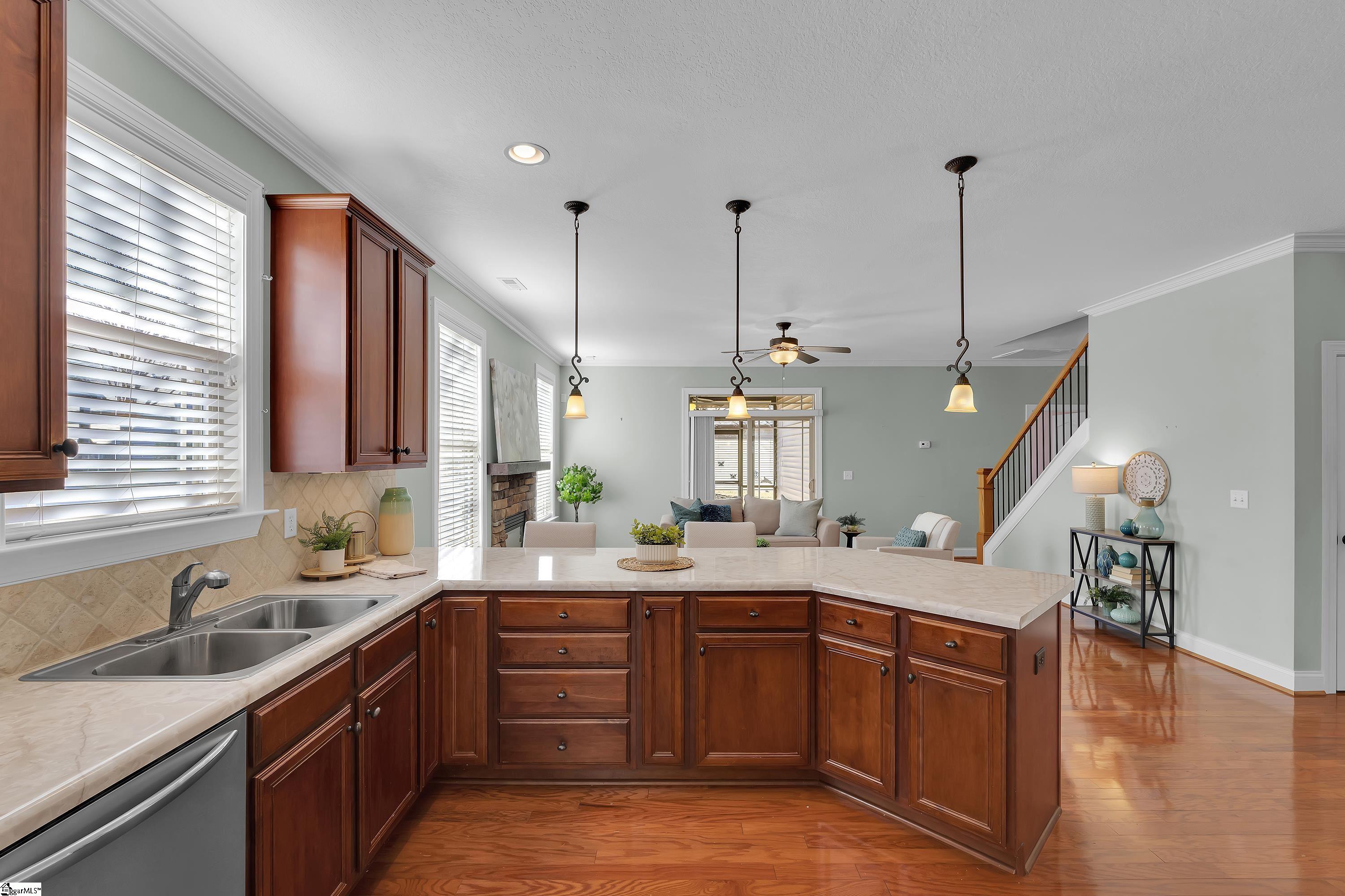 Welcome to 23 Litten Way, an immaculate, move-in-ready retreat tucked into the heart of Greenville’s Eastside and moments from everything the city has to offer. Perfectly positioned off Roper Mountain Road near Pelham and I-385, this beautifully maintained 3-bedroom, 2-bath home lives easy, feels luxurious, and even includes a full walk-up attic that could be finished into a fourth bedroom and additional bathroom—an incredible opportunity for guests, teens, or multigenerational living. Inside, rich hardwood floors carry throughout the main living areas and bedrooms, while sunlight pours into the open-concept dining, kitchen, and great room, highlighted by an extra window in the dining area. The kitchen features generous cabinetry and new Frigidaire Gallery appliances, and the great room’s cozy gas log fireplace anchors the space with an inviting warmth. A charming screened porch with roll-down blinds offers true year-round enjoyment. The main-level owners suite is a serene retreat with a walk-in closet, double vanities, a garden tub, and a separate shower. Two additional main-level bedrooms provide flexibility for a home office or creative space, and the walk-through laundry room off the garage adds everyday convenience. Thoughtful updates include a new roof, a 2022 water heater, iron stair railings, under-stair storage, front door shutters for added privacy, crown molding throughout most of the home, a whole-house alarm system, and a transferable termite warranty with Hired Killers. Immaculate condition, elevated finishes, and flexible living spaces make 23 Litten Way a home that instantly feels “just right. ” Located in the sought-after Woodstone Cottages community, you’ll enjoy proximity to top-rated Greenville County schools including Pelham Elementary, Beck Academy and J. L. Mann High Academy, plus premier shopping, dining, and recreation. Haywood Mall, the Swamp Rabbit Trail, downtown Greenville, and GSP Airport are all just minutes away. With low-maintenance living and an HOA of only $160/month covering all lawn care and irrigation, this home offers the perfect blend of convenience, comfort, and Eastside charm.