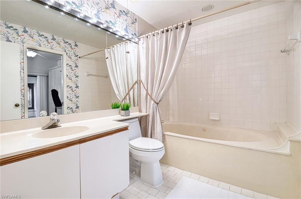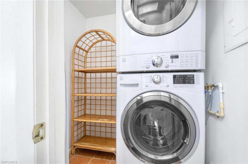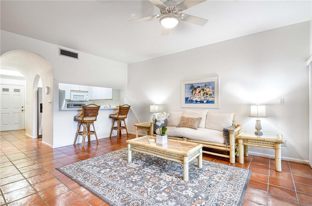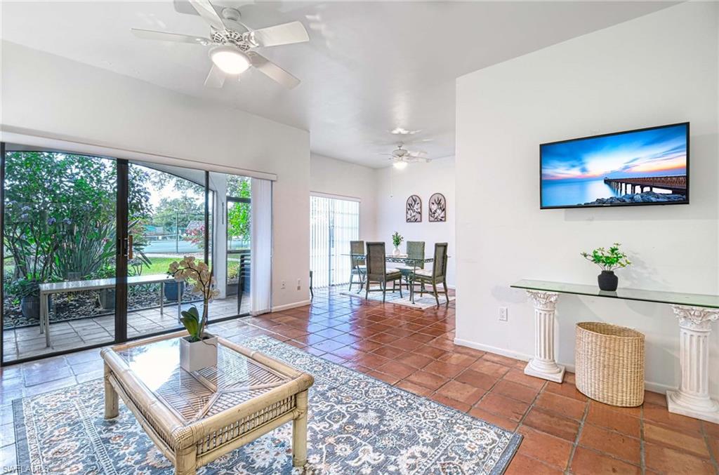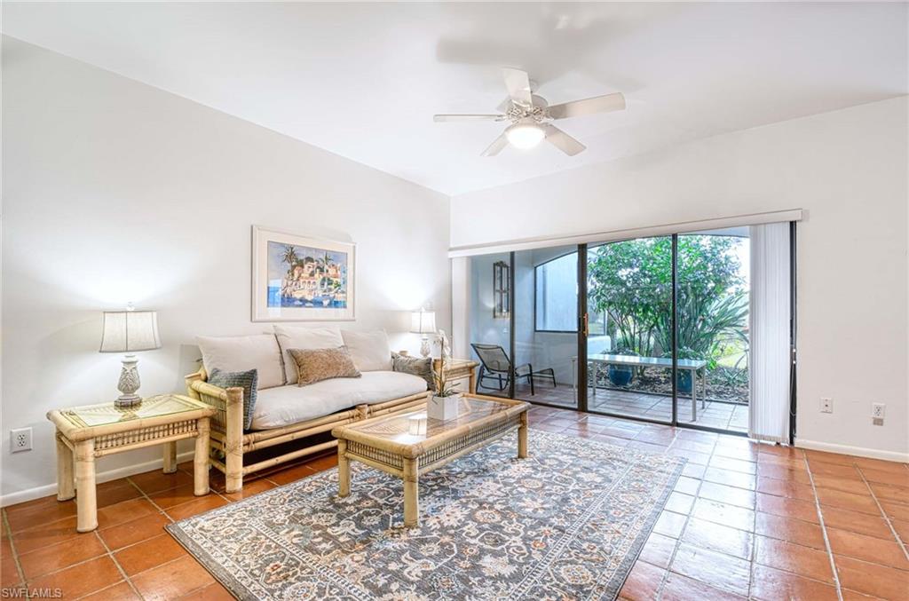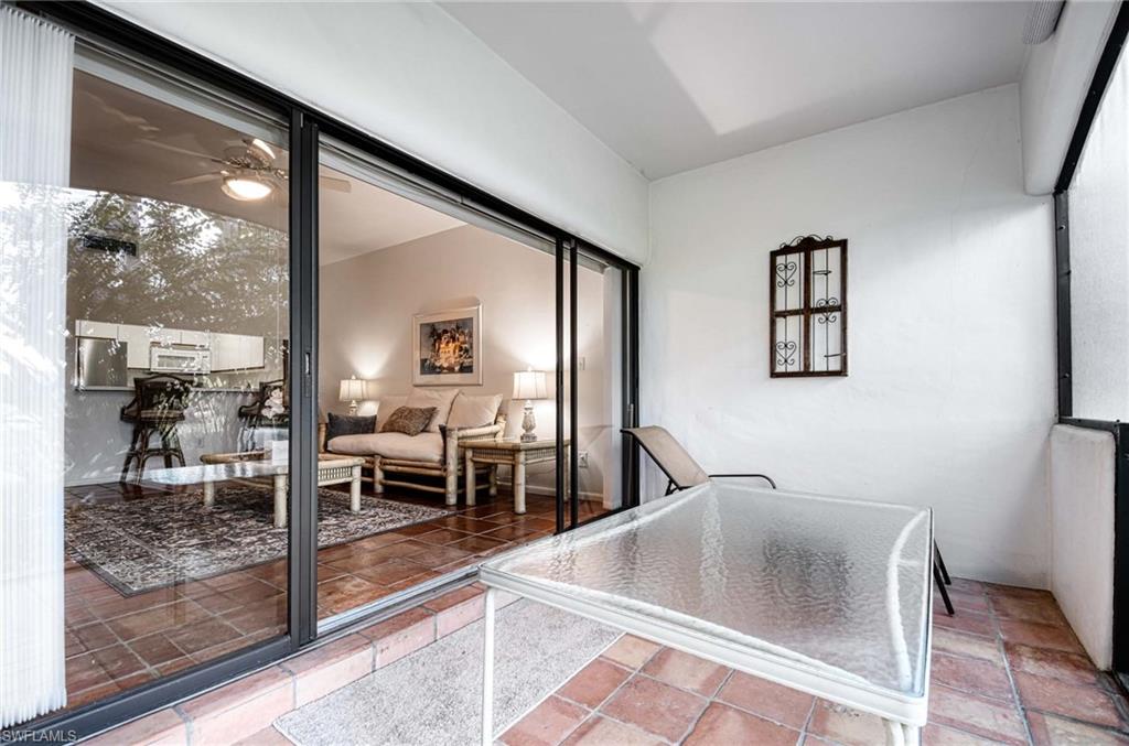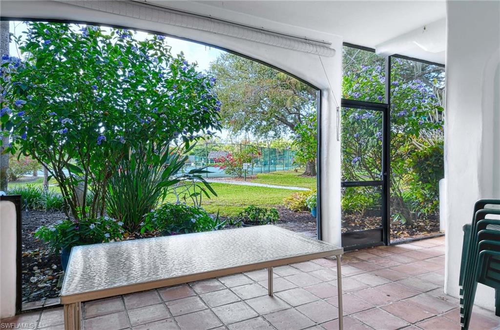 RARELY AVAILABLE! This extra large, 2 bedroom unit is one of only a few in the community and is conveniently located next to the walking path to all of the wonderful amenities. This ground-floor, end unit has a spacious enclosed front lanai providing a private sunroom entry, which is unique to these larger Courtside units. Enjoy the lush landscaped view from the expansive rear lanai and an assigned parking space just steps to the front door. The charming Mexican tile is throughout the main living space, and the guest bedroom has a wonderful Murphy bed and desk system for a perfect combination of office and guest room. A full-size laundry room with storage closet sets this unit apart from others in the community, and a tankless water heater has been installed to provide instant hot water and extra storage. World Tennis Club is a gated community centrally located in North Naples and features 2 community pools, poolside cafe'/bar, 14 tennis courts and 4 pickleball courts with fully staffed pro shop, bocce, basketball play area, saunas and a wonderful social calendar of events. The fees include all of the amenities, including unlimited tennis and pickleball as well as your landscaping, cable, wi-fi, water and sewage. NO INITIATION FEES and NO EXTRA MEMBERSHIP FEES. All-inclusive and in the heart of town, just minutes to Clam Pass Beach Park, Waterside Shops, Mercato, and Old Naples. Walk or bike to the local grocery stores and restaurants and enjoy a home with easy access to I-75, but in a peaceful, quiet and quaint gated community. Can be packaged together with #22, which is located directly above. MLS#226000331