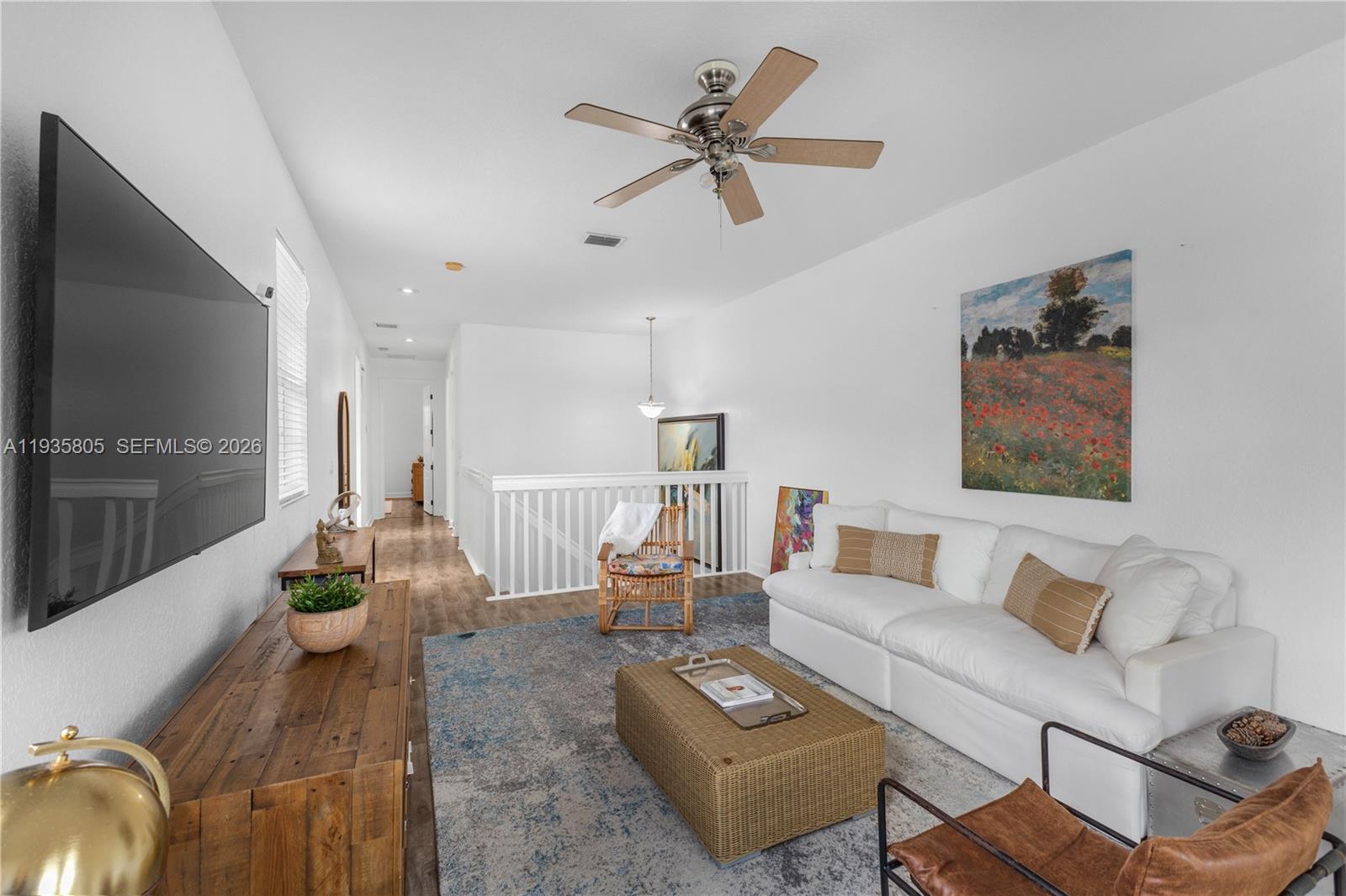 Fully renovated and tastefully furnished 3BR/3BA townhome in Cimmaron, Davie. Features an open kitchen with quartz countertops, two living/family rooms, hurricane impact windows, tile and laminate flooring, and abundant storage. The ground floor offers a living/dining area and one bedroom; upstairs includes a family room, guest bedroom, laundry, and a spacious primary suite with walk-in closet and spa-style bath. Enjoy a private fenced backyard with lush landscaping, two balconies, and no rear neighbors. One-car garage plus driveway. Well-maintained community with pool, tot lot, and ample guest parking. Prime location near major highways, shopping, great schools, and approximately 20 minutes to FLL Airport.