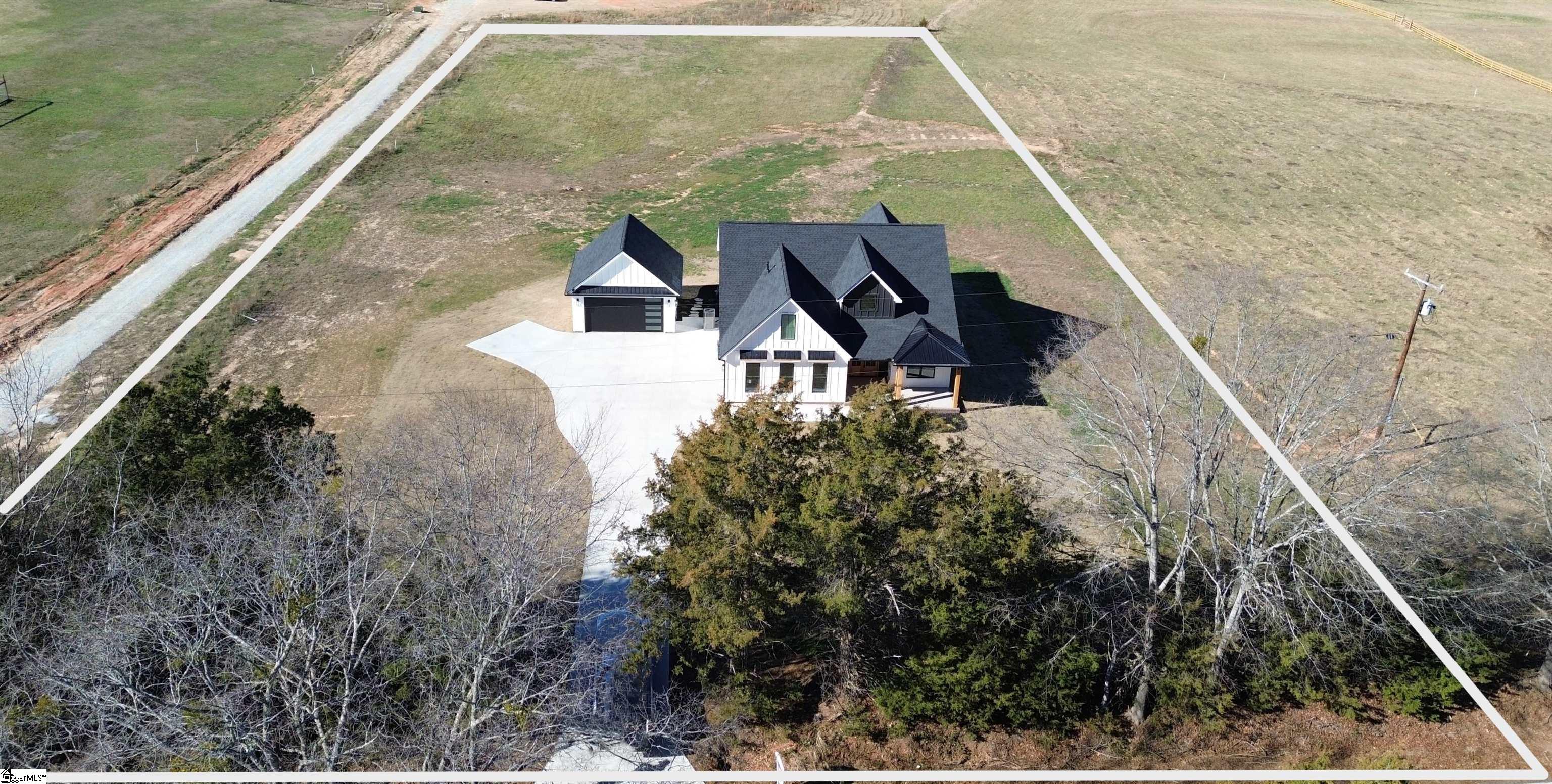 Nestled on a sprawling 2. 16-acre lot, this contemporary farmhouse radiates timeless appeal with a seamless fusion of rustic allure and modern sophistication. The exterior captivates with a classic board-and-batten facade, complemented by a cozy front porch supported by sturdy Cyprus beams, inviting you to unwind in shaded comfort. A sleek, 8-foot front door opens into a grand foyer, where a 2-story foyer lined with tongue-and-groove planking creates a sense of airy elegance that flows into the open-concept living and dining areas. Rich, wide-plank LVP flooring stretches across the main living spaces, offering warmth and durability with a refined, natural aesthetic. The heart of the home is the expansive, window-filled great room, where a dramatic shiplap-clad fireplace stretches from floor to ceiling, joined with timber floating shelves and custom built-ins, serving as a cozy yet commanding focal point. Adjacent, the gourmet kitchen is designed for both function and flair, featuring honed quartz countertops, a generous farmhouse sink, and a spacious island. Custom cabinetry, accented by gold hardware, pairs beautifully with a herringbone-patterned tile backsplash, while top-of-the-line stainless steel appliances, including a built-in oven, cater to culinary enthusiasts. A hidden walk-in pantry with built-in shelving and a coffee station adds practicality and charm, perfect for hosting gatherings or quiet mornings. The primary suite, thoughtfully positioned for seclusion at the home’s rear, is a sanctuary of luxury. Its ensuite bath boasts dual vanities with quartz tops, a sleek soaking tub, and a spacious walk-in shower with multiple shower heads and intricate tilework. A private water closet and an oversized closet with custom organizers enhance convenience, while a discreet sliding pocket door connects directly to the laundry room equipped with additional cabinetry for functional storage. The main level also includes a fourth bedroom, a versatile space with ample natural light and wide-plank LVP flooring, perfect as a guest suite or home office, complete with a spacious closet . The home’s upstairs layout offers a loft and two additional bedrooms, each with ample natural light and built-in closet shelving, sharing a stylish bathroom featuring a single vanity, tile flooring, and a tile-surround tub/shower. Outside, a 12x14 Trex rear deck and a 12x12 covered/screened porch provide an ideal setting for outdoor entertaining or serene evenings under the stars. The property includes an attached 22x21 garage and a detached, fully finished 20x20 workshop/garage, ideal for projects or extra parking. This modern farmhouse harmonizes rustic warmth with contemporary finesse, offering a tranquil retreat. ** Home has preapproved by DES ( DHEC) for a pool ** This home is located in an USDA Eligible area ** Builder offers closing costs for using preferred lender and closing attorney