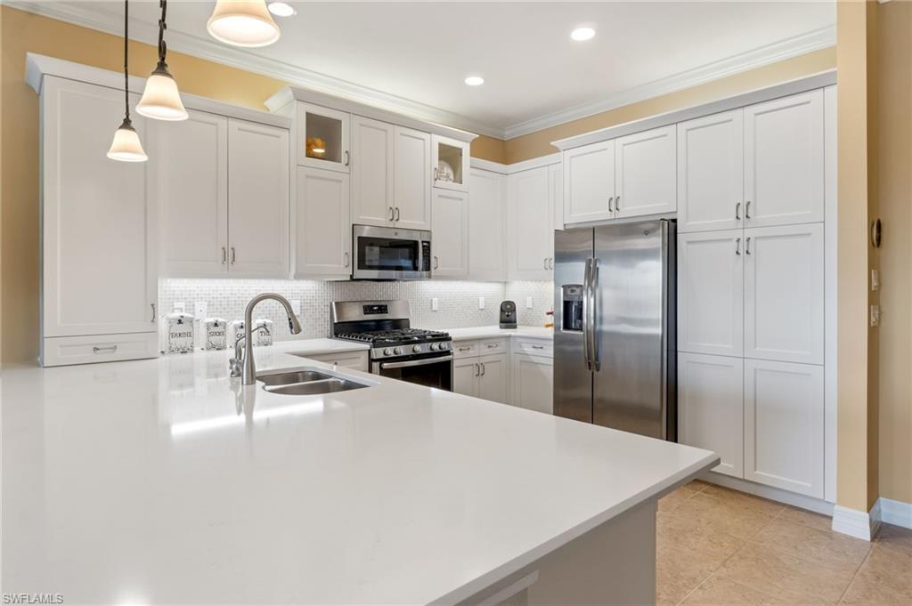 Rare private, OVERSIZE LOT with fenced yard. Welcome to an immaculate 3 Bedroom + den, 2. 5 bath residence situated on a premium over-sized, fenced lakefront lot, perfect for pets or kids to enjoy! Take in long lake views from your private, fully fenced backyard, enhanced by an extended patio area perfect for gatherings, grilling, or simply taking in the peaceful waterfront scenery. Inside, the home features a spacious layout with a dedicated den, ideal for a home office, study, or flex space. The open-concept living areas are filled with natural light and flow seamlessly into the kitchen and dining spaces, creating a warm, inviting environment. Upgrades include a full-house natural gas generator, electric storm screens on lanai, full-house water treatment system, pre-plumbing for outdoor kitchen, accordian shutters, epoxy finish in garage, and much more. Stonecreek is one of Naples' most desirable gated communities, offering a resort-style lifestyle with amenities including a clubhouse, fitness center, resort and lap pools, splash park, tennis, pickleball, basketball, social activities, and more. All just minutes from top-rated schools, shopping, dining, and Naples’ renowned beaches.