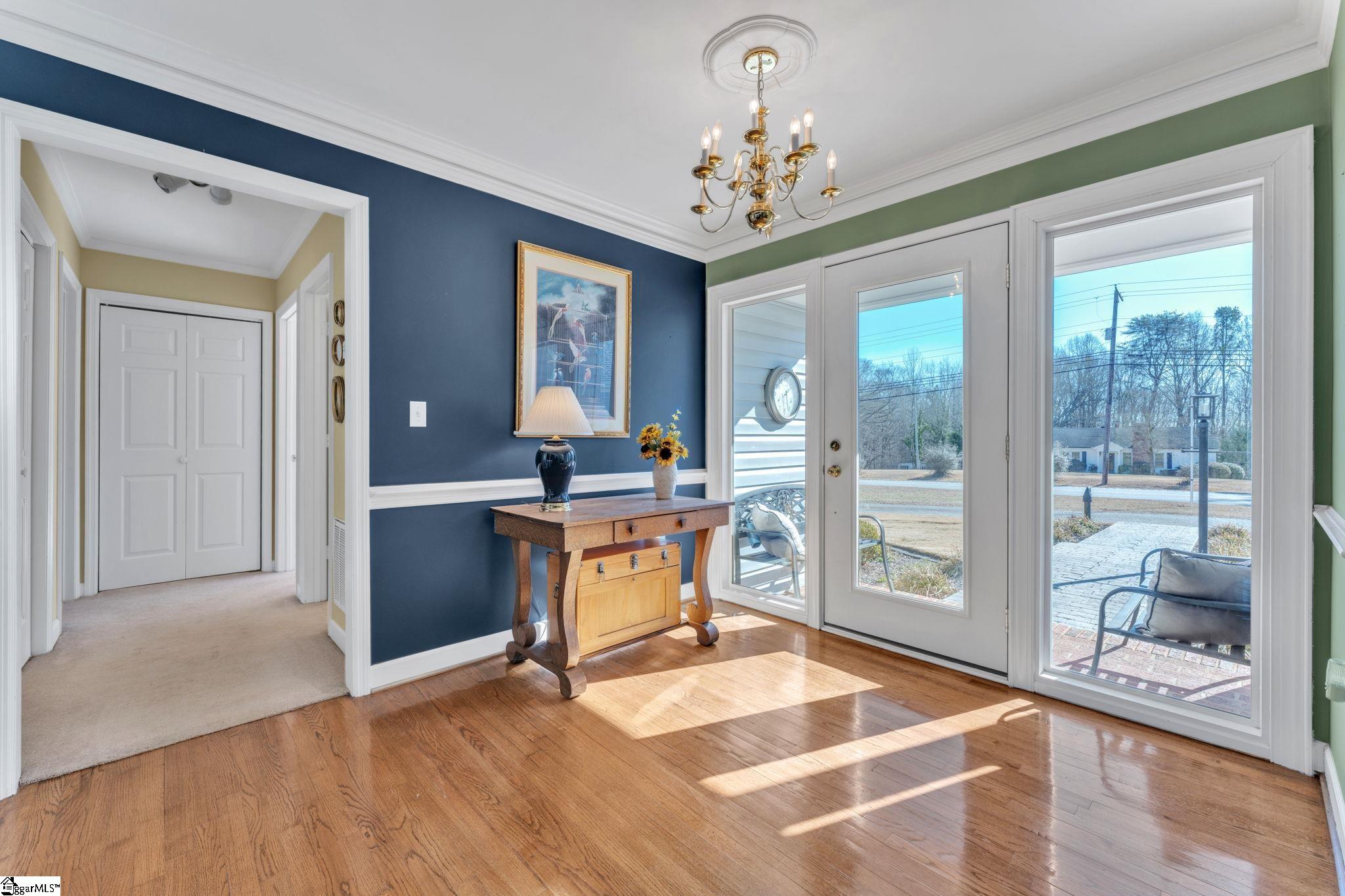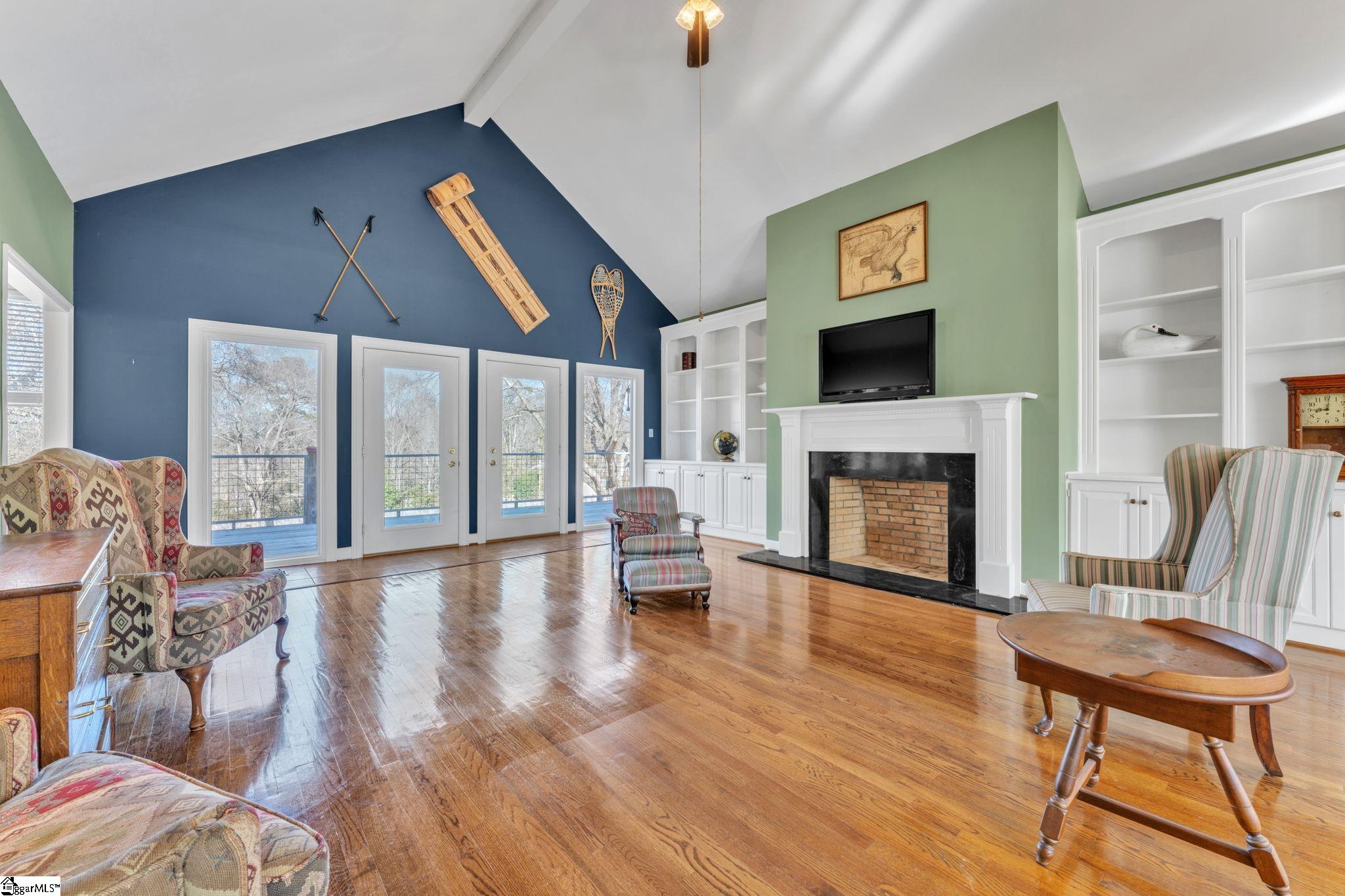 Property Highlights: Approximately 5, 000 sq ft of living space on 2. 5 acres Flexible layout well suited for multi-generational living Main-level living with three bedrooms and multiple full baths Private primary suite wing with walk-in closet, dual vanities, garden tub, and separate shower Sunken great room with vaulted ceilings, fireplace, built-ins, and French doors to deck Dedicated dining area and bright sunroom Well-appointed kitchen with large island, double wall ovens, downdraft cooktop in brick alcove, butler’s pantry, and built-in desk Main-level flex room ideal for office, study, or workout space Finished walkout basement with: Large bonus room/den with fireplace and French doors to patio Fourth bedroom or flexible-use space Half bath and large room with double sinks (future kitchenette potential) PLUS: Outdoor living with oversized deck and patio, mature trees Side-entry two-car garage plus multiple storage areas No HOA Minutes to Easley, with convenient access to shopping, dining, and entertainment