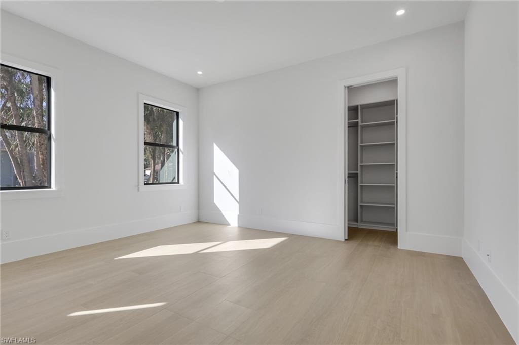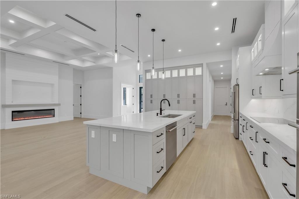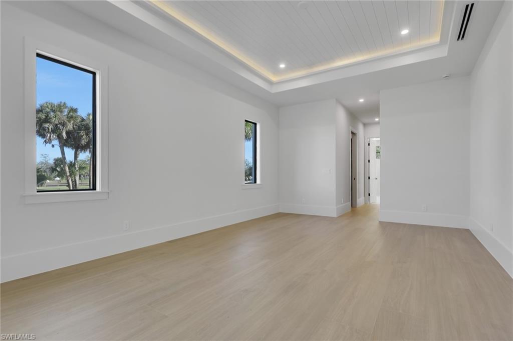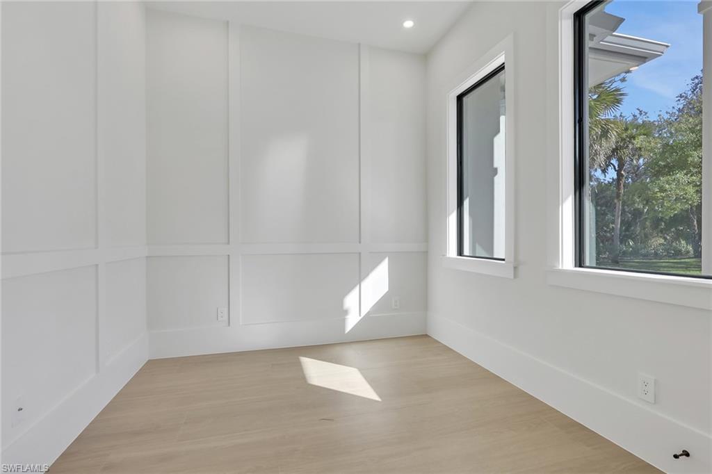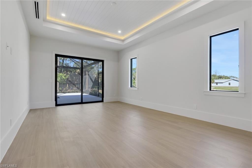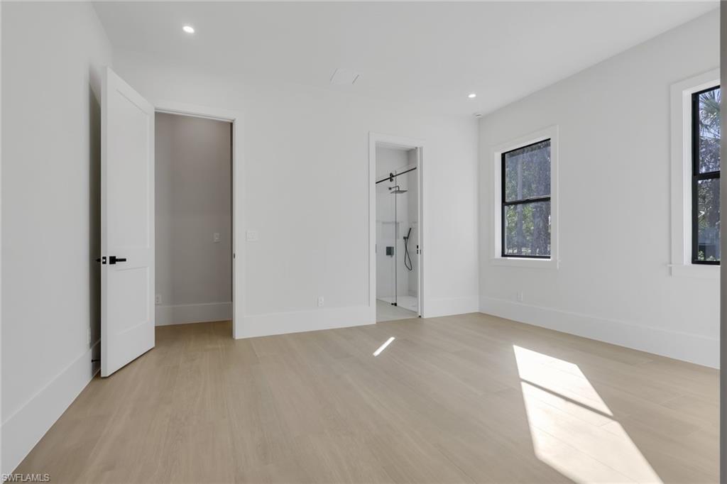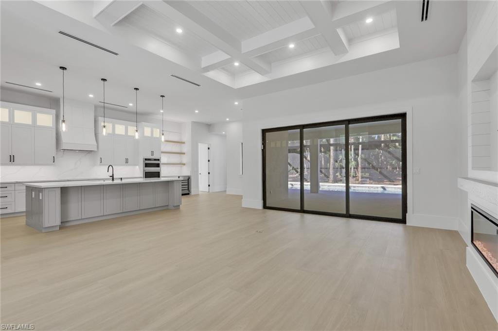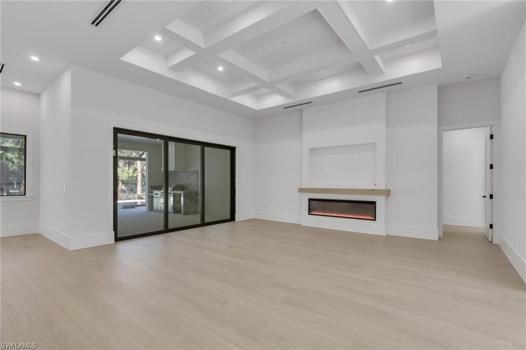 Discover modern luxury and comfort in this home designed to impress from the moment you arrive. Featuring 4+Den, 5 full baths, a metal roof, 3-car garage, extended paver driveway, whole-house reverse osmosis system, and no HOA. Situated on 2. 73 ACRES of 100% UPLAND in a desirable neighborhood, providing quick and easy access straight to Naples’ world-famous beaches, as well as premier shopping, dining, and entertainment. With plenty of land to expand, this property gives you the freedom to create the lifestyle you’ve always dreamed of. Build a workshop, add a guest house, bring your horses, —there’s room for it all. Inside, neutral finishes and tones set the stage for a modern yet timeless design, enhanced by wood-look porcelain tile throughout, hardwood ceiling accents, and a custom living room TV wall with a sleek, aesthetic fireplace. The kitchen is a true showpiece, featuring abundant custom cabinetry, generous storage, quartz countertops, double ovens, stainless steel appliances, and a wet bar with wine fridge. Every bedroom is designed as a private suite, each offering its own walk-in closet and en-suite bathroom—a rare and highly desirable feature that elevates both comfort and functionality. Step outside to a spacious outdoor living area featuring a heated saltwater pool, shell stone paver deck, and a built-in grill summer kitchen, all within a fully screened lanai. Enjoy the tranquility of a home filled with nature while staying close to everything that makes Naples such a sought-after place to live.