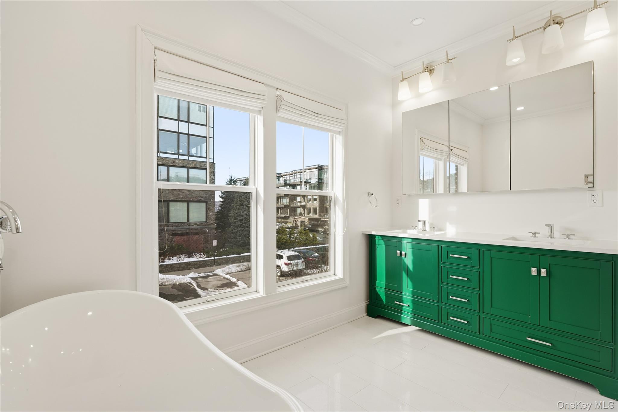This rare Carriage House rental in the much sought after Hudson Harbor Waterfront community offers 3 bedrooms 3 full baths, plus a third-floor loft, showcasing dramatic double-height walls of windows that flood the home with natural light and highlight its exceptional architecture and design. The great room seamlessly connects the kitchen, living area, and entry foyer, all drenched in sunlight. The chef’s kitchen features Wolf and Sub-Zero appliances, a large center island with built-in microwave, and direct access to a large private first-floor patio overlooking the beautifully landscaped Carriage House private park. The spacious living room offers an airy, open feel with dramatic double-height walls of windows that flood the home with natural light light pouring in from every angle. A flexible first-floor bedroom with a full bath provides ideal space for guests, office or gym . Upstairs, a sitting area overlooks the great room, leading to the expansive primary suite, complete with a private balcony, spa-like bath with soaking tub and separate oversize shower, bidet, smart toilet, dual vanities, and two walk-in closets. An additional large bedroom with ensuite bath completes the second level. The third-floor loft offers endless possibilities as a home office, media room, or space, with access to a sunny roof deck. Additional highlights include excellent storage throughout and garage Ideally located, this home is steps from restaurants, Riverwalk, Tarrytown recreation center and park, walk to downtown and Metro-North express trains just 39 minutes to Grand Central. Luxury, convenience, and Hudson River waterfront living at its finest.