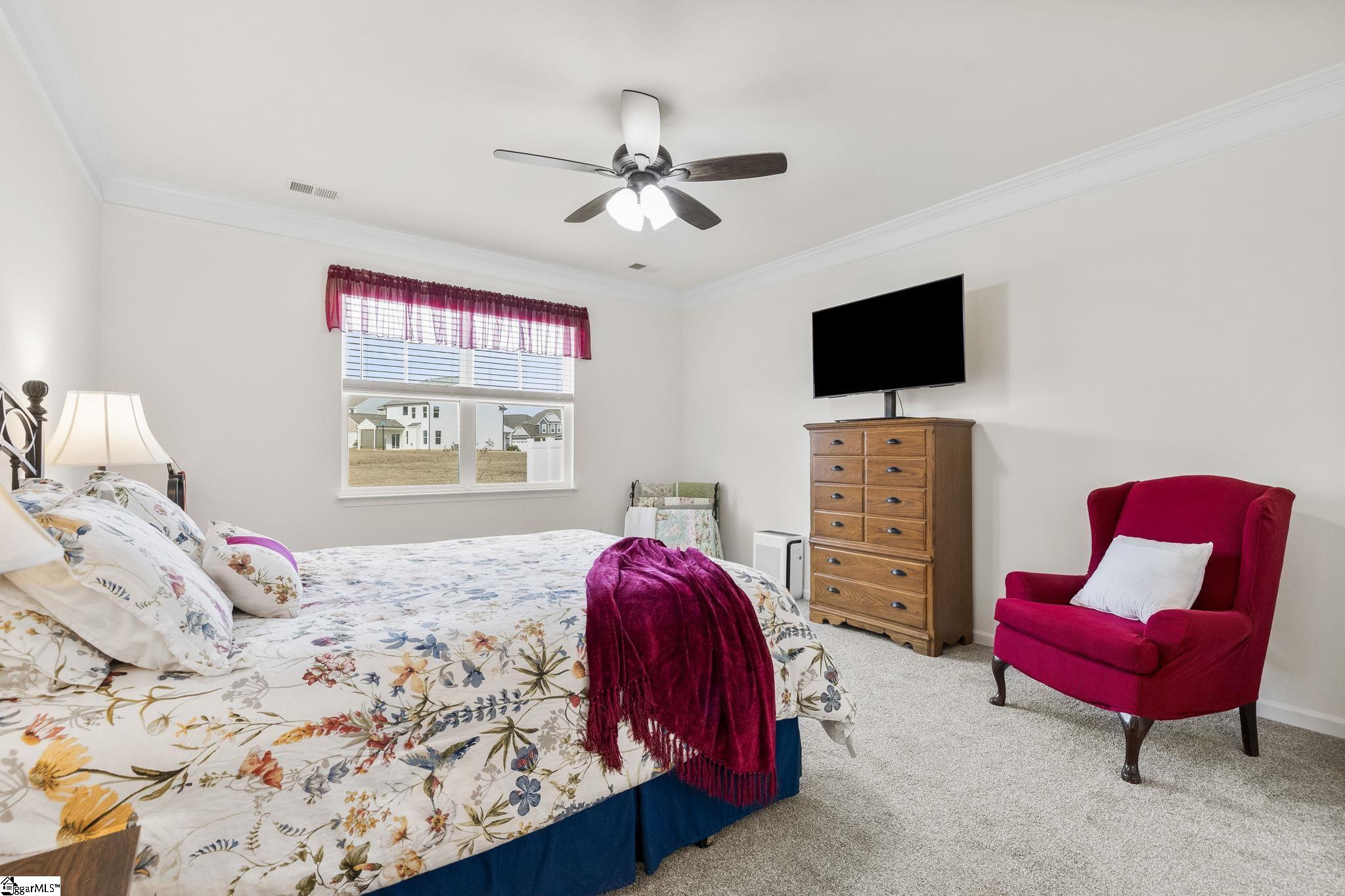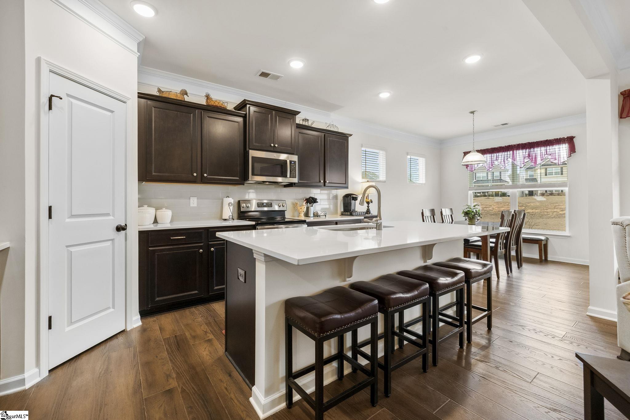 This RARE FIND, CUSTOMIZED home with over $45, 000 in UPGRADES is a MUST SEE. This 3-bedroom, 2-bath ranch home SHOWS LIKE A MODEL. With PRE-WIRED SMART TECHNOLOGY and HIGH-SPEED INTERNET CAPABILITIES, this home can add enhancement to your daily living with convenience and security. As you enter the wide foyer you will feel the sophistication and elegance that flows throughout the home. The upgraded BEVELED LUXURY VINYL PLANK FLOORING, wainscoting and crown molding sets this home apart. The two secondary bedrooms with UPGRADED CARPET AND PAD and UPGRADED FULL BATH WITH QUARTZ COUNTERTOP, TILED TUB SURROUND with NICHE, UPGRADED FAUCET and ADDED WINDOW will be to your left in this SPLIT FLOOR PLAN. The garage entry, large walk-in storage room and amazing LAUNDRY ROOM with UPGRADED SOFT CLOSE UPPER AND LOWER CABINETS, QUARTZ COUNTERTOP, UNDERMOUNT STAINLESS STEEL SINK, STYLISH TILED FLOOR and ADDED WINDOW will be to your right as you move towards the openness of the Great Room with CORNER FIREPLACE, Kitchen, and Dining Area with ADDED WINDOWS. The KITCHEN features QUARTZ COUNTERTOPS, SINGLE BOWL UNDERMOUNT STAINLESS STEEL SINK, UPGRADED SOFT CLOSE CABINETS WITH PULLOUTS AND CROWN MOULDING, GAS AND ELECTRIC RANGE HOOKUP, VENTED MICROWAVE, COUNTER DEPTH REFRIGERATOR AND CORNER PANTRY. The EXTENDED SCREENED PORCH is a favorite spot. The owner’s suite features SOAKING TUB, SEPARATE TILED SHOWER with SHELF and NICHE and BENCH, STYLISH TILED FLOOR, DUAL MODERN RECTANGULAR SINKS, and UPGRADED FAUCETS. The adjacent large walk-in closet has a well-thought-out PASS-THROUGH CUBBY to the laundry room making life and chores so much easier. This home also has a PEST CONTROL PIPING SYSTEM in the walls, a GAS TANKLESS HOT WATER HEATER, FIVE CEILING FANS, and MOTION SENSOR SWITCHES which add energy savings and conveniences. The remainder of the 10-year builder warranty is transferable. Call today for your private showing!