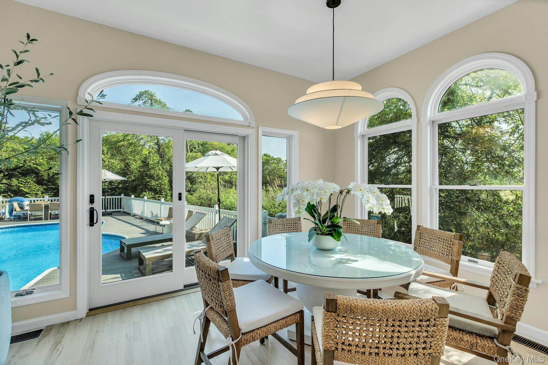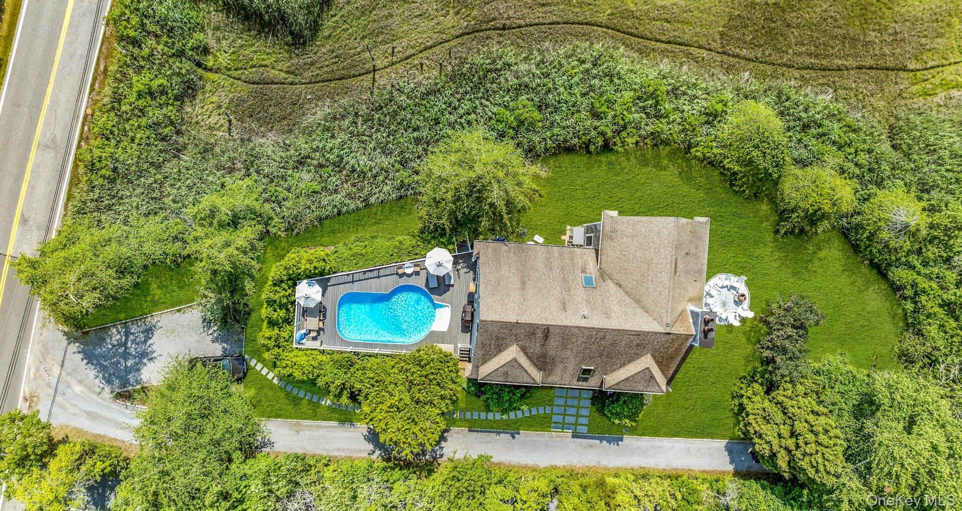 Minutes from Westhampton Beach Village, 56 South Country Road is a fully renovated, designer coastal retreat offering stunning sunset views, seamless indoor-outdoor flow, and rare privacy at the edge of protected wetlands. Spanning over 2, 700 square feet, the home features three spacious bedrooms plus three additional flexible rooms ideal for a gym, office, or guest overflow. The open-concept living area and chef’s kitchen lead directly to a new Trex deck, heated pool, and expansive firepit lounge overlooking the estuary. Every room reflects thoughtful, upscale upgrades, including: • All-new kitchen + designer bathrooms • Fresh interior + exterior paint • Custom landscaping + hardscape • Dedicated home gym • New pool heater and smart home features • Fire Pit This home offers the perfect blend of modern style and natural serenity, whether hosting summer dinners al fresco, birdwatching from your living room, or winding down in the spa-like primary suite. Move-in ready and minutes from ocean beaches, this is a rare opportunity to own a low-maintenance, high-style Hamptons retreat with protected views and unmatched tranquility.