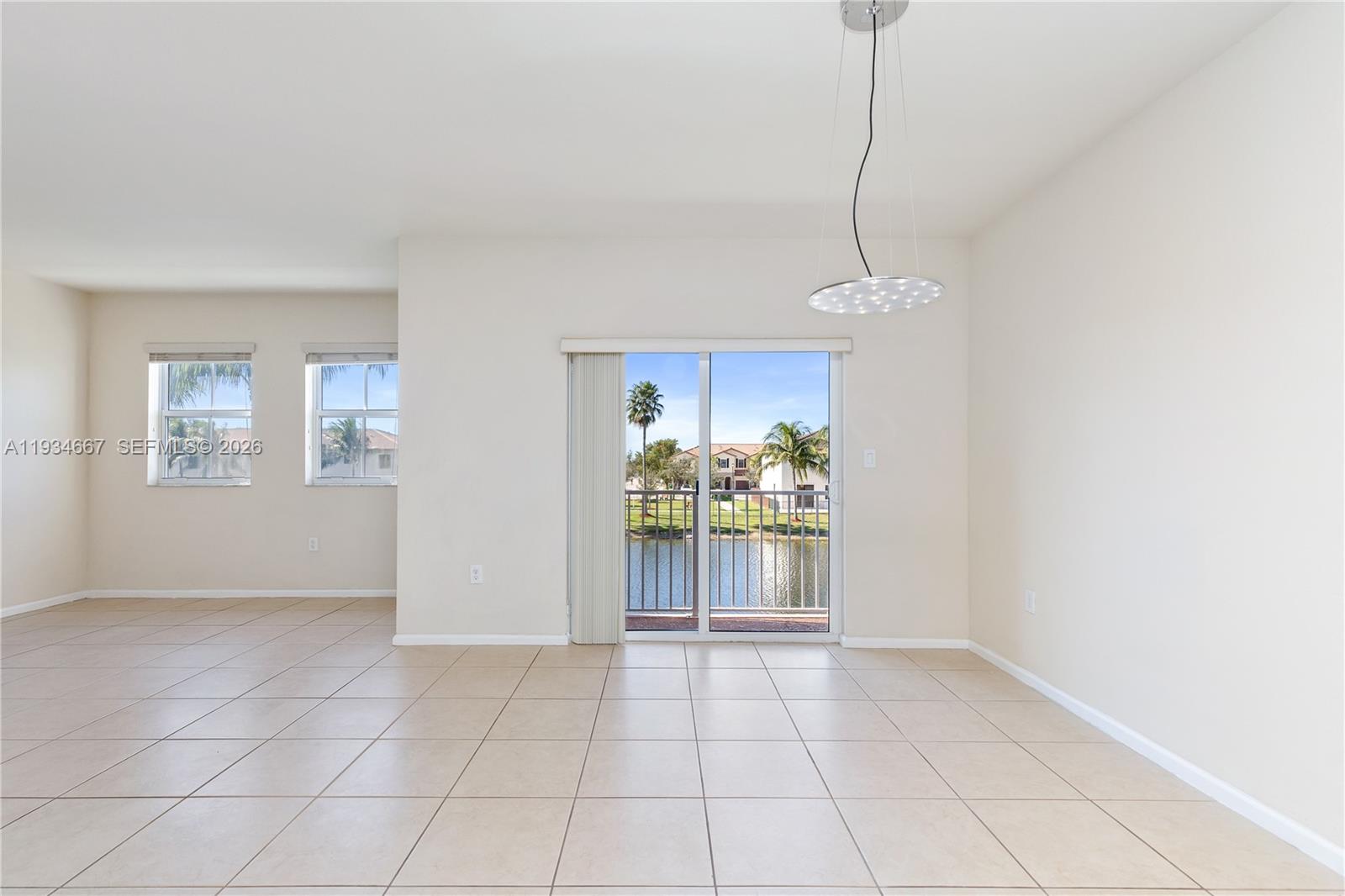 Beautiful 2-story apartment featuring an open-concept kitchen, dining and living area and a guest bathroom on the first floor, lake view and private balcony; 2 bedrooms both en-suite bathrooms upstairs; laminate floors in rooms and stairs; stainless steel appliances, granite counter top, wood cabinetry and full-size washer and dryer in unit. Located in a gated community with 24/7 security, resort-style amenities, such as pool with water park, game room, tennis, football and basketball courts, gym and sauna. Conveniently situated near international airports, Turnpike and Palmeto highways.
