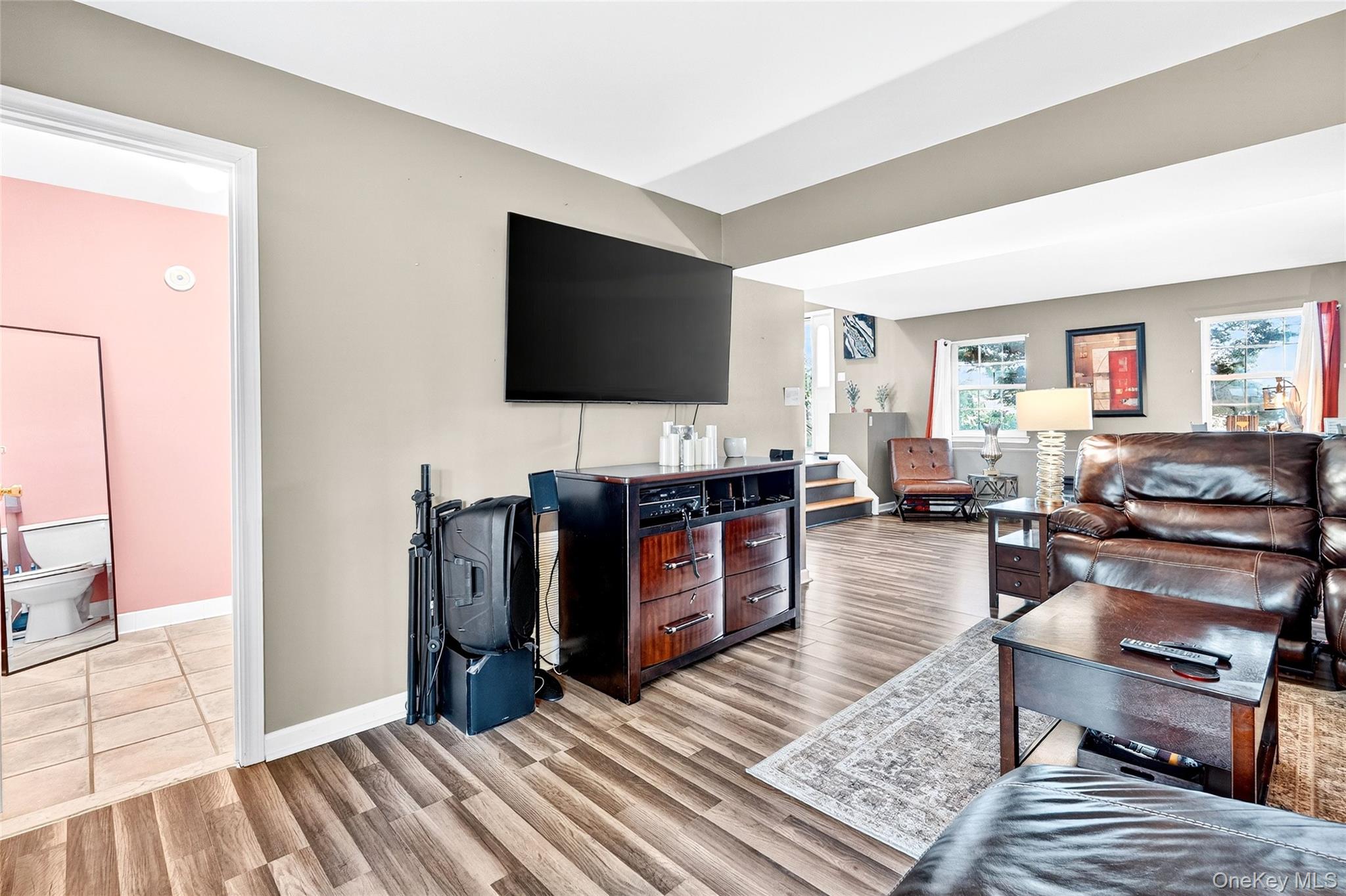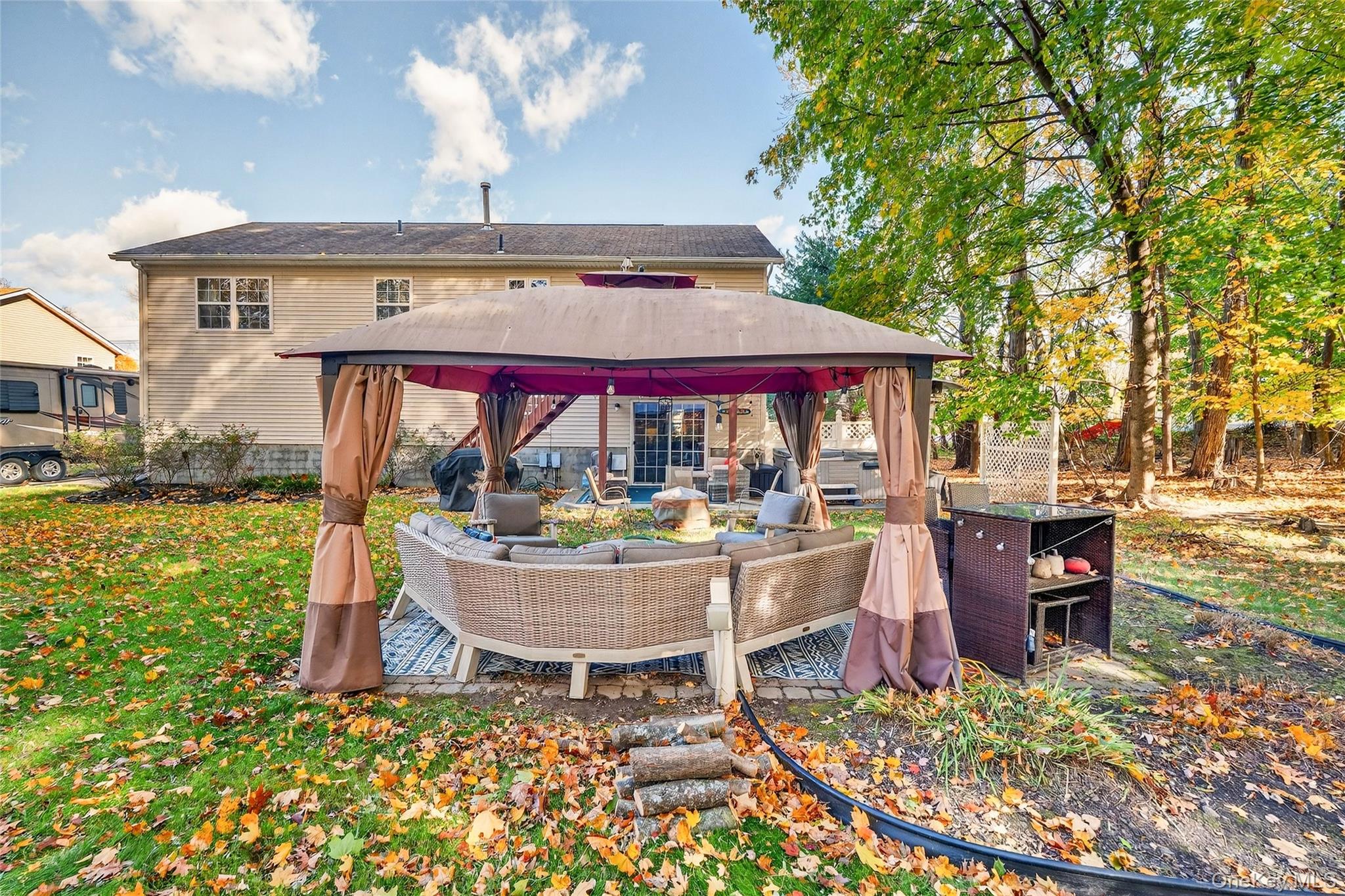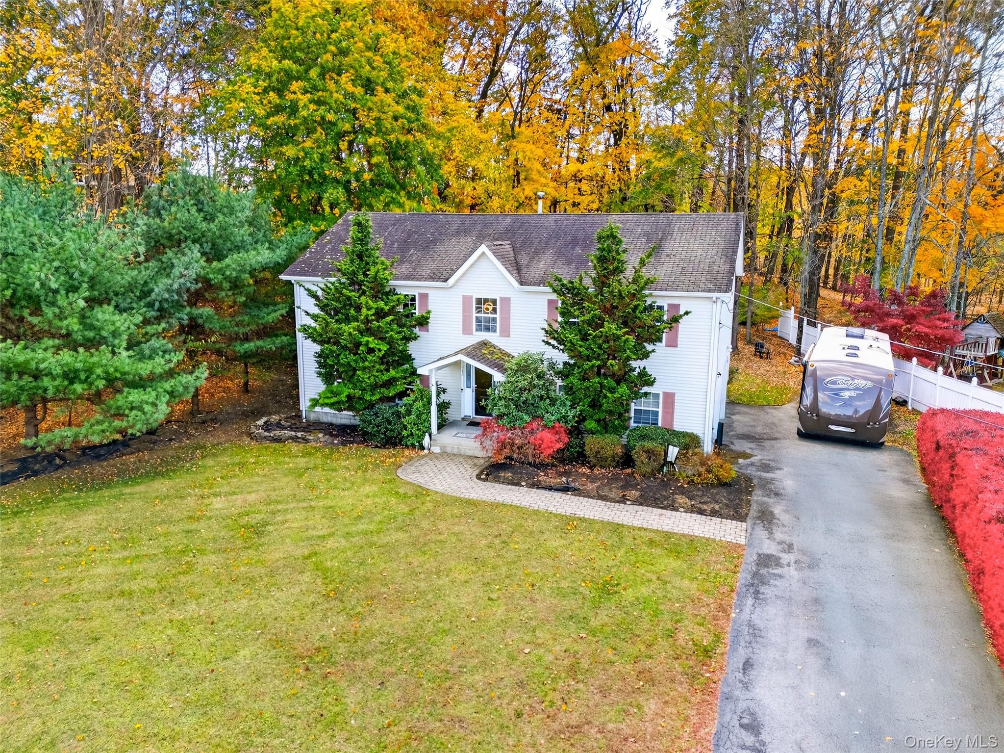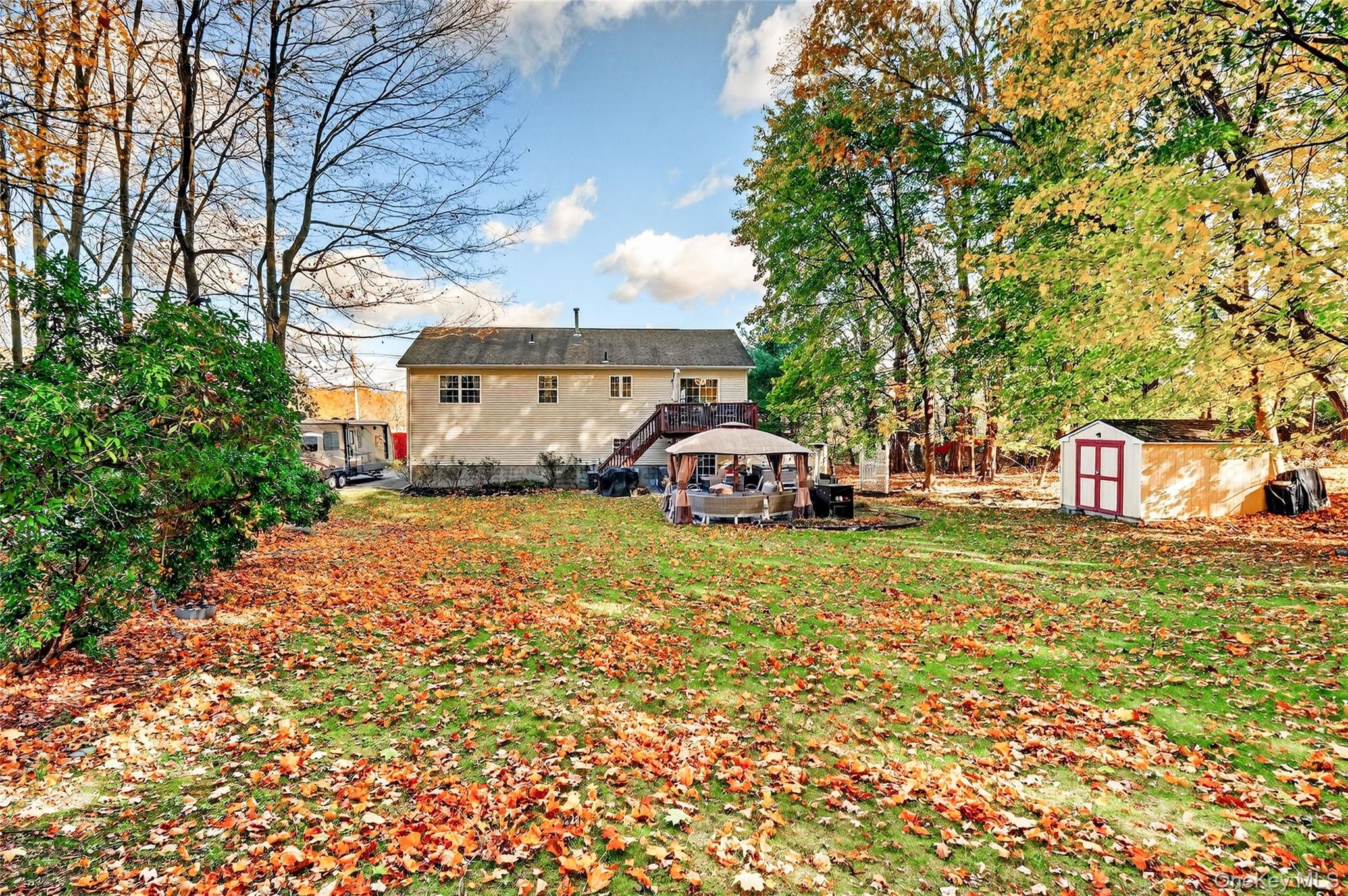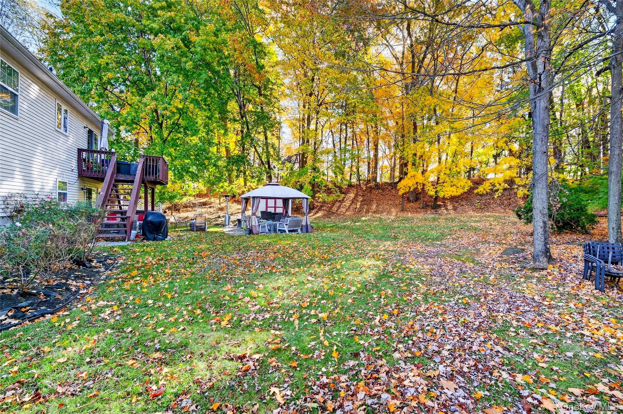 This beautifully maintained contemporary bi-level is a true turn-key opportunity, seller is willing to include ALL furniture, appliances, workout equipment, televisions, and décor with the sale if buyer desires. This property sits on over an acre of land in one of the area’s most desirable neighborhoods, with a serene, wooded backyard offering privacy, comfort, and convenience just minutes from shopping, two Metro-North stations, and major commuter routes. The home features cathedral ceilings, hardwood floors, upgraded finishes, a modern kitchen with elegant cabinetry, and a fireplace-anchored living area, while the expansive backyard provides a peaceful retreat with a hot tub and gazebo. The five-bedroom layout allows flexibility for guests or extended living, complemented by an attached garage, a finished lower level with second family room and backyard access, laundry with washer and dryer, a contemporary wine cellar, and a front driveway accommodating parking for six or more vehicles. Offered move-in ready with timeless design, plus an assumable VA loan of approximately $275, 000 at 3% interest available to qualified buyers.
